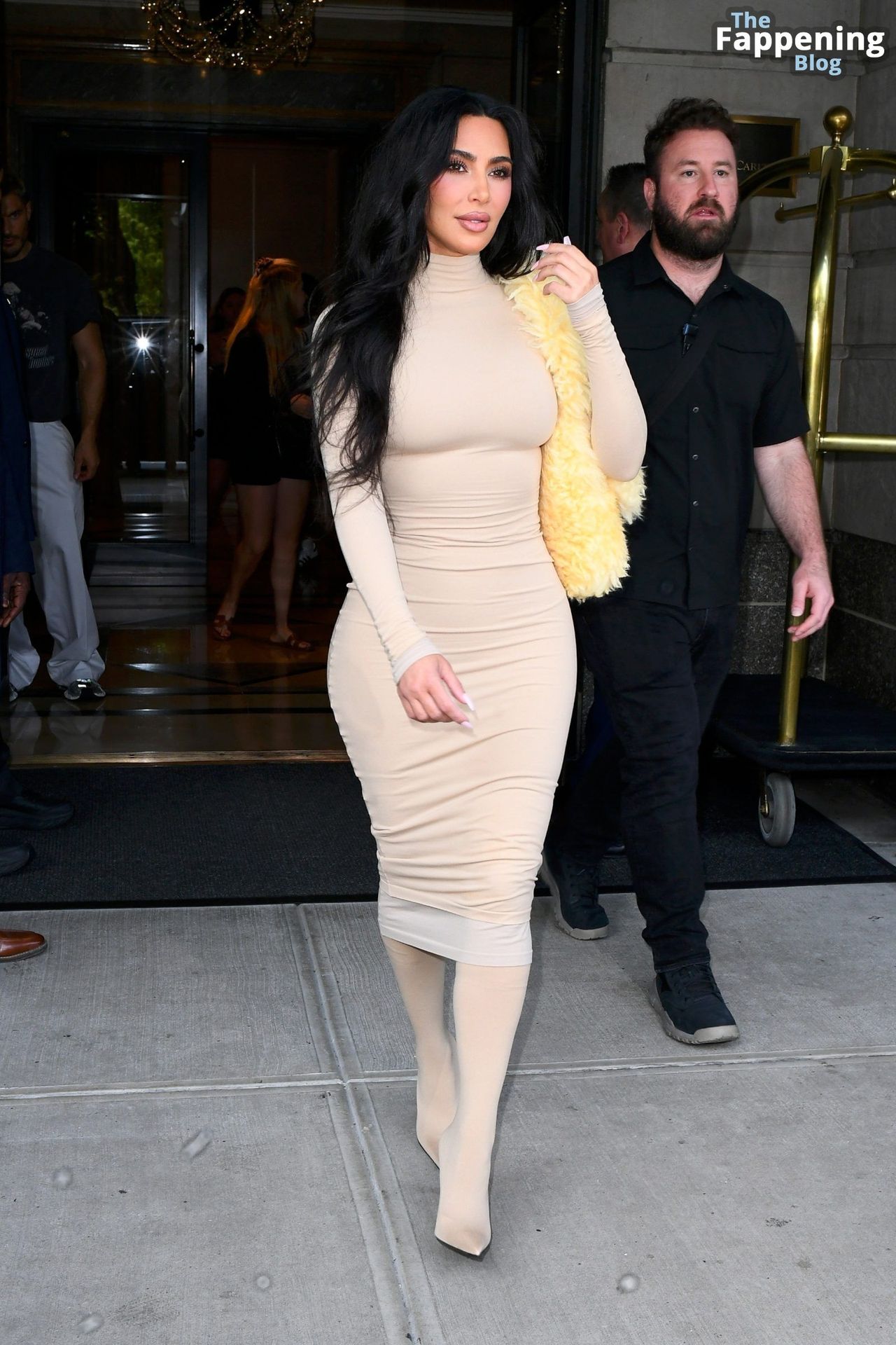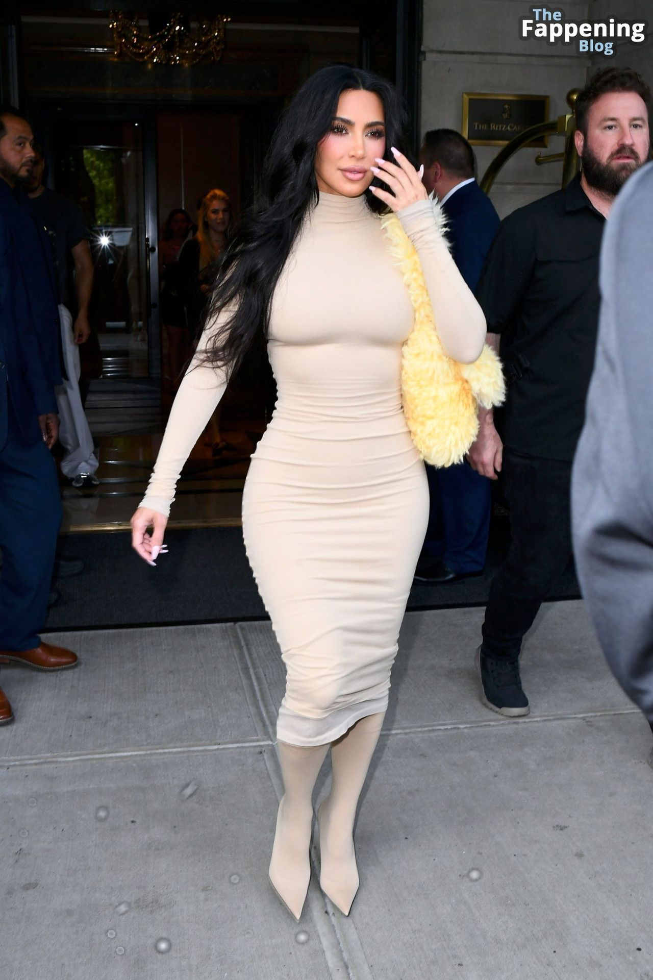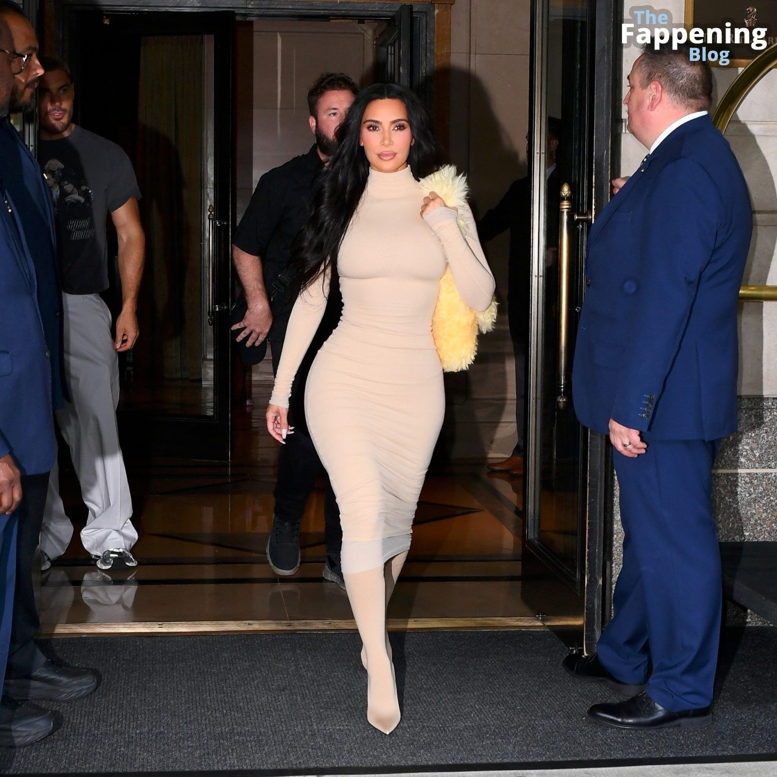 Kim Kardashian es vista en Nueva York, luciendo su cuerpo curvilíneo y sexy con un atrevido y ajustado vestido color nude mientras sale de su hotel.