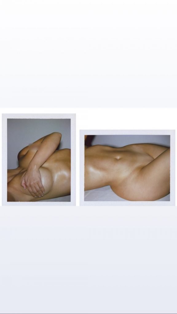 Estrella de reality TV, modelo y actriz Kim Kardashian, 37, añadió algunas fotos desnuda por Vanessa Beecroft para KKW BODY 4.30 – Instagram, 24/04/2018. Ella cubrió sus mejores partes (pechos, vagina afeitada).