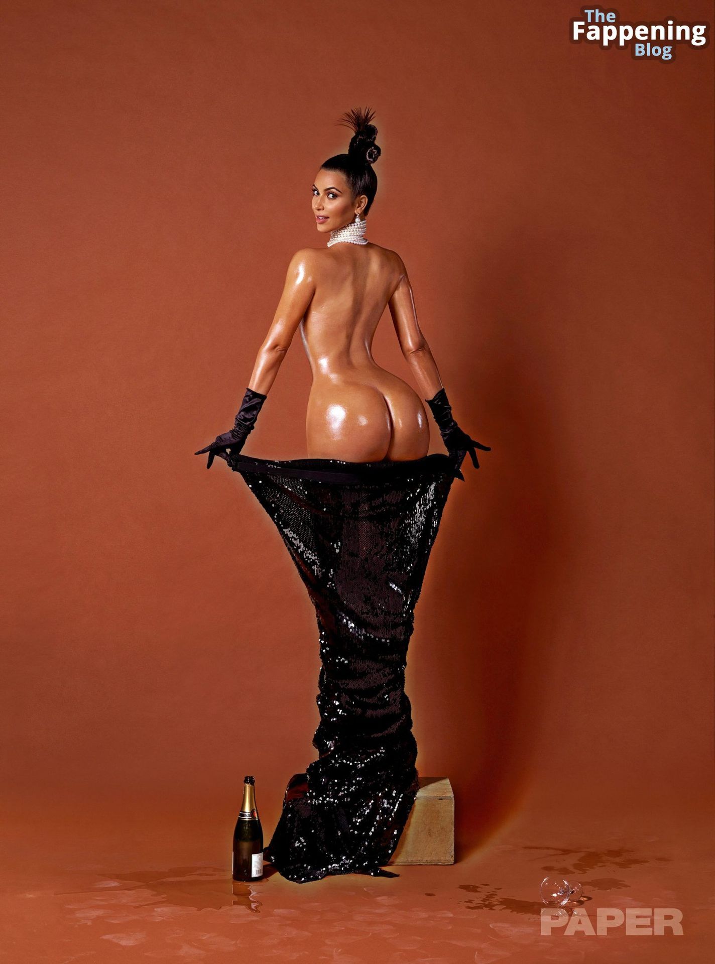 Kim Kardashian muestra con confianza sus impresionantes curvas en una legendaria sesión de fotos desnuda para Paper Magazine, revelando sus hermosos senos y su voluptuoso trasero. Incluso posó sin miedo en una toma frontal completa desnuda, mostrando su zona íntima afeitada.