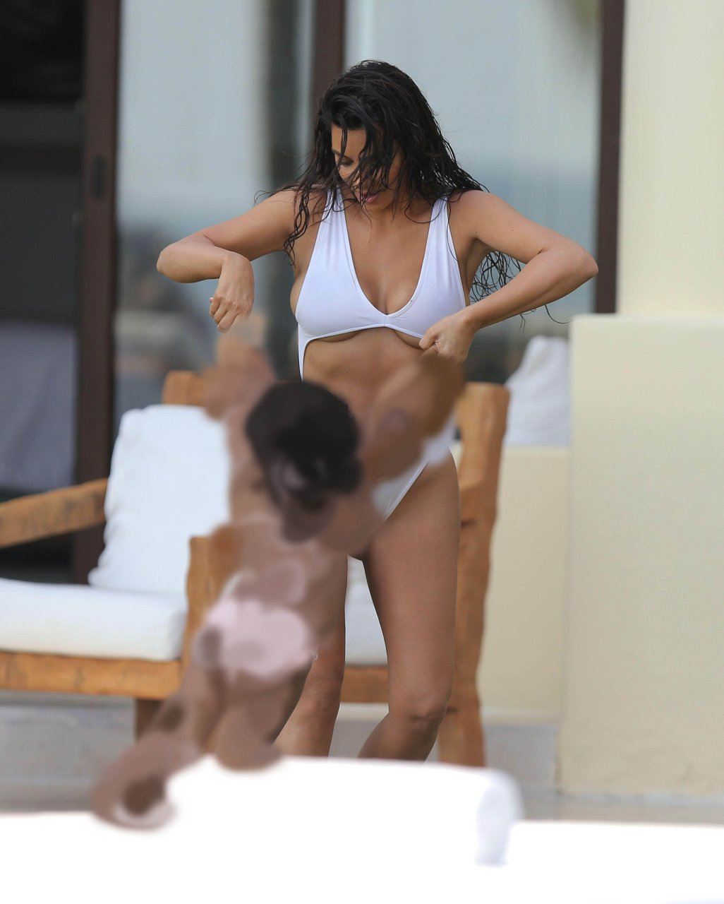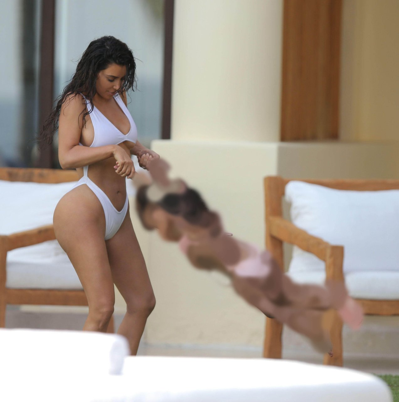 Kim Kardashian muestra su cuerpo caliente con un monokini blanco durante sus vacaciones en Casa Aramara, Punta Mita, México, 19/08/2016. Kim Kardashian es una personalidad estadounidense de televisión y redes sociales, socialité y modelo. Edad: 35 (21 de octubre de 1980).