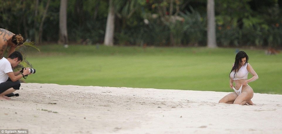 Ella necesita hacer algunos ejercicios para las piernas. Esas piernas delgadas con su trasero y caderas falsas la hacen parecer extraña, como una figura de Gumby. Kim, por favor, detén la cirugía plástica, estás empezando a parecer una socialité Frankenstein.