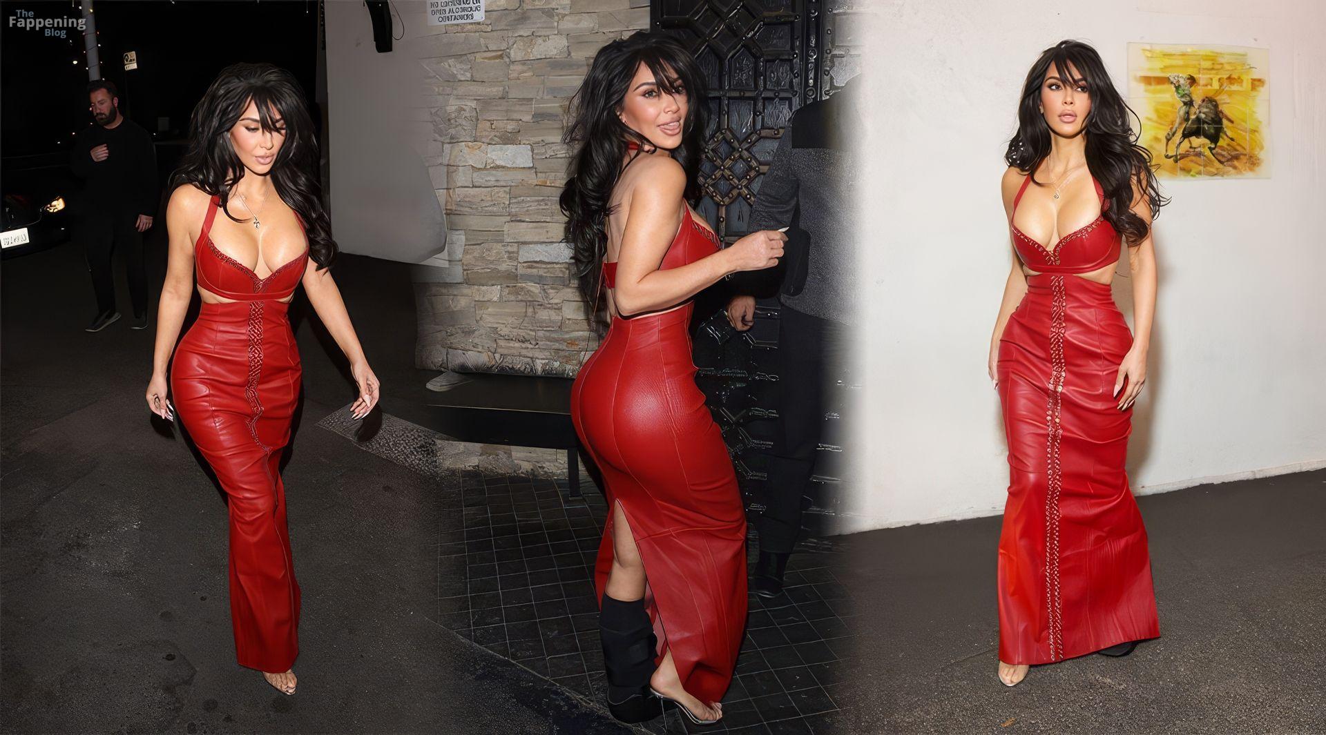 Kim Kardashian deslumbra con un vestido de cuero rojo (40 fotos)