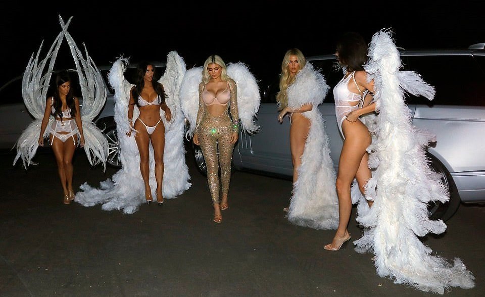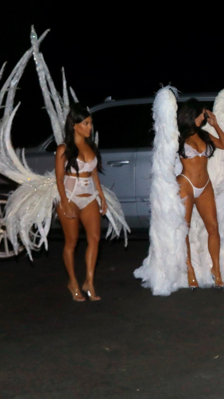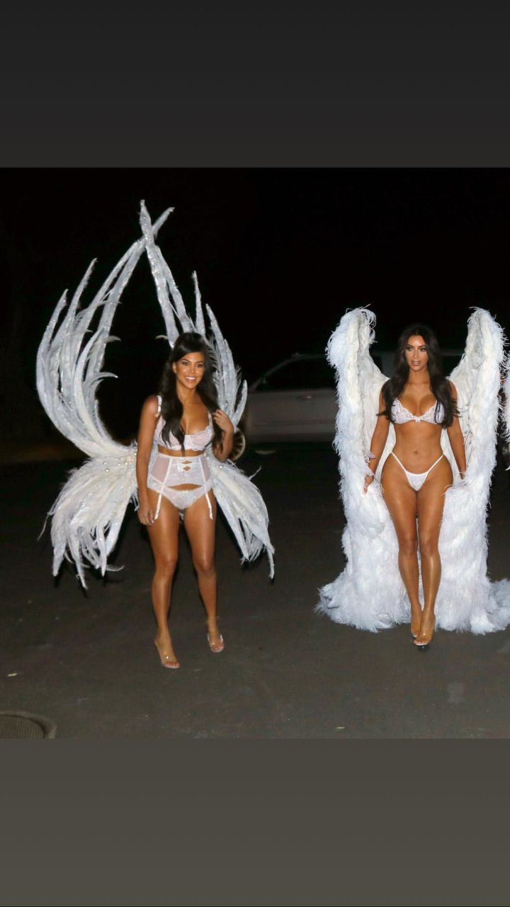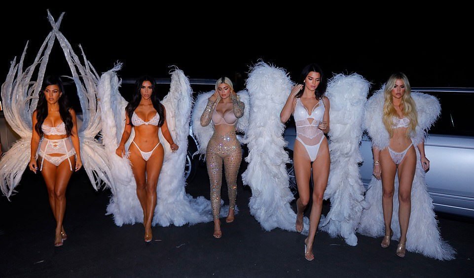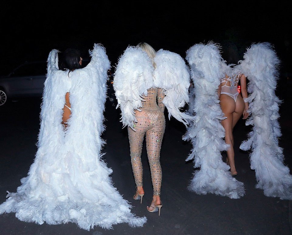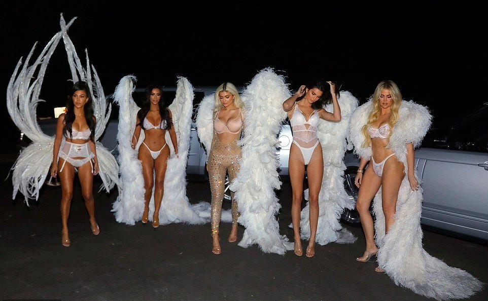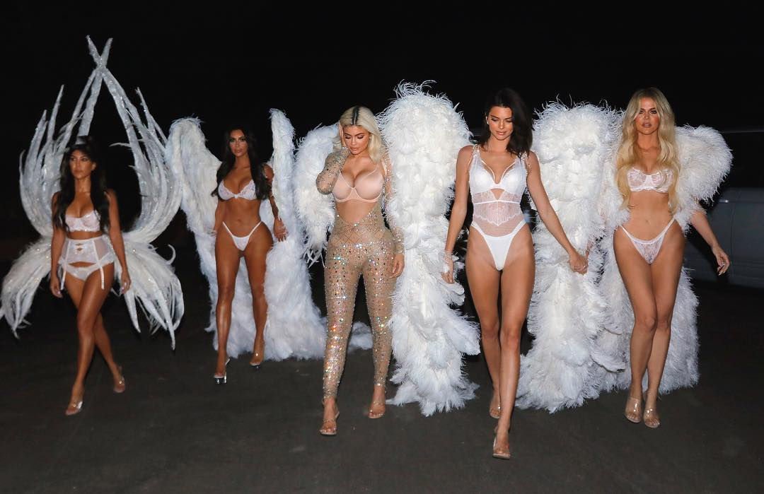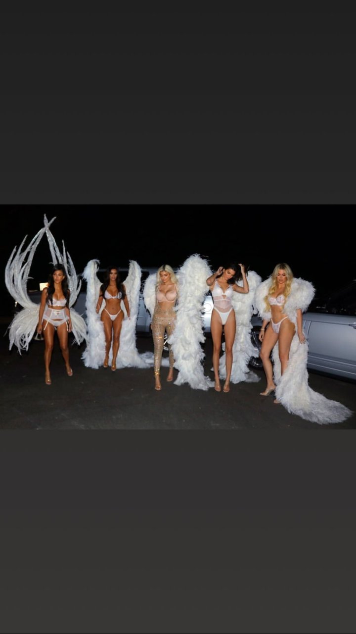 Famosas hermanas Kimberly, Kourtney, Khloe Kardashian, Kendall y Kylie Jenner parecen Ángeles de Victoria’s Secret con sus disfraces para Halloween en Los Ángeles, 31/10/2018.