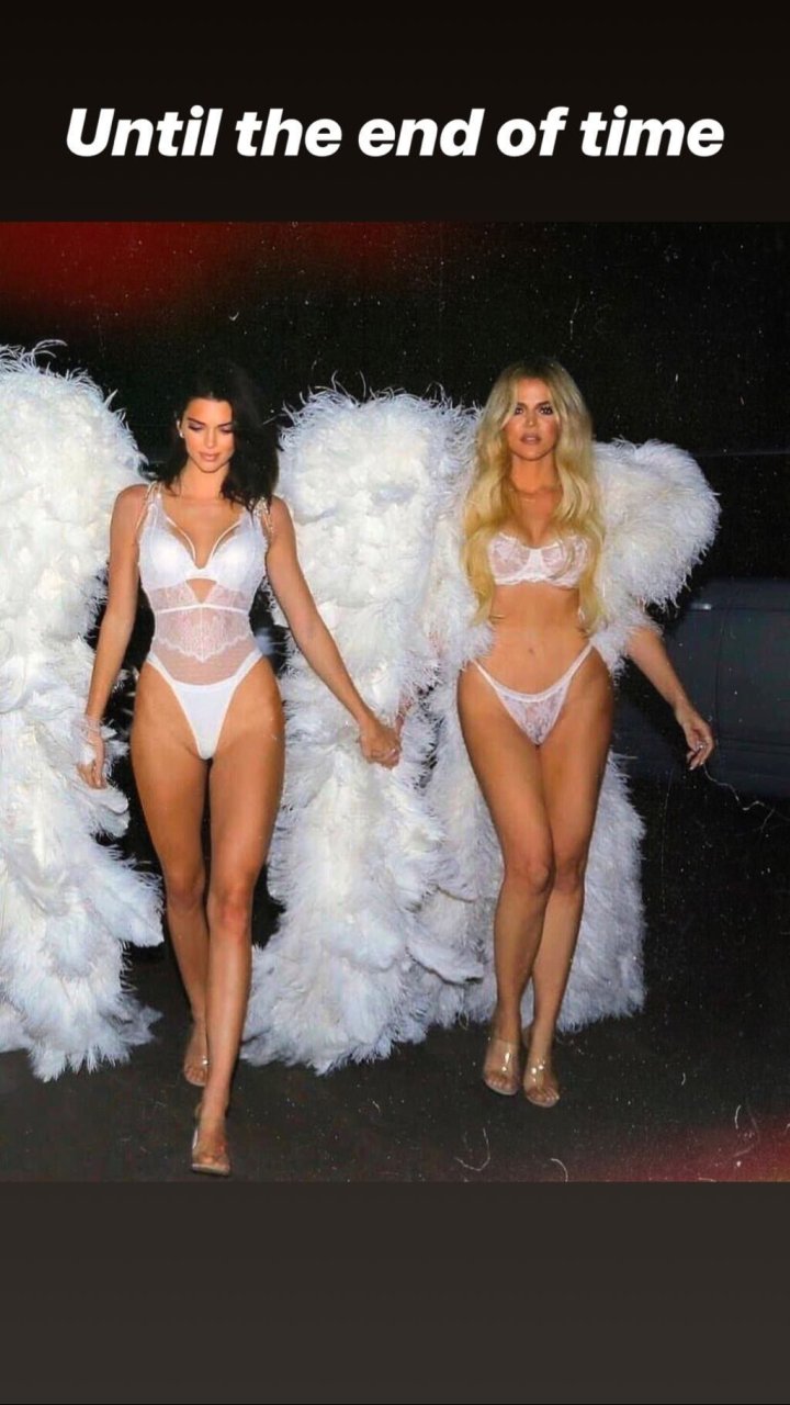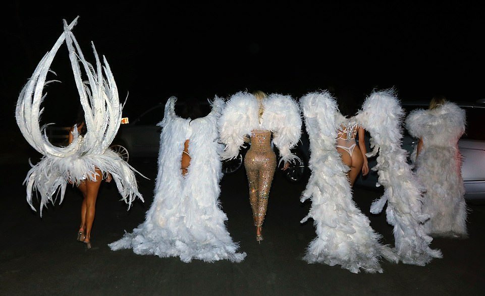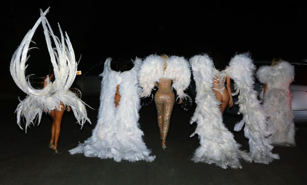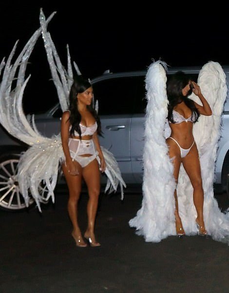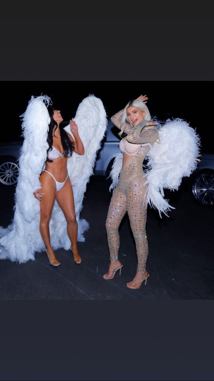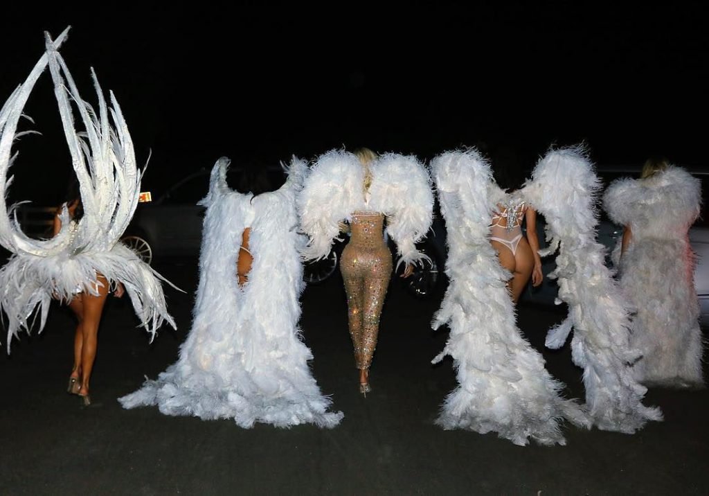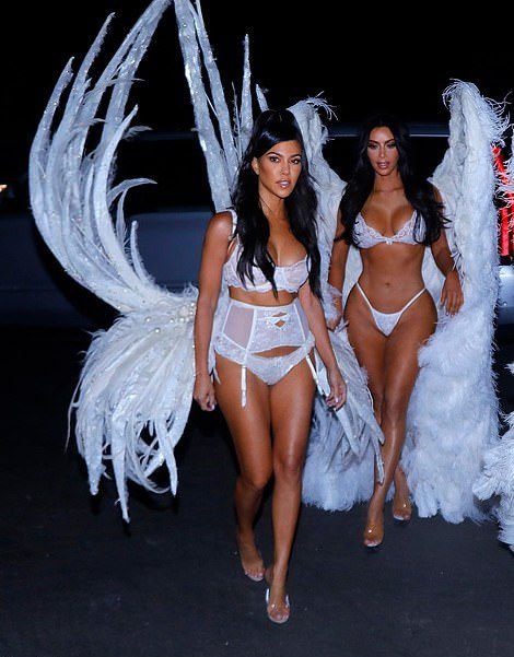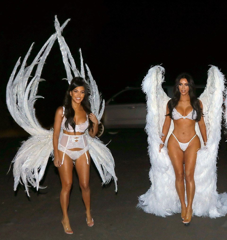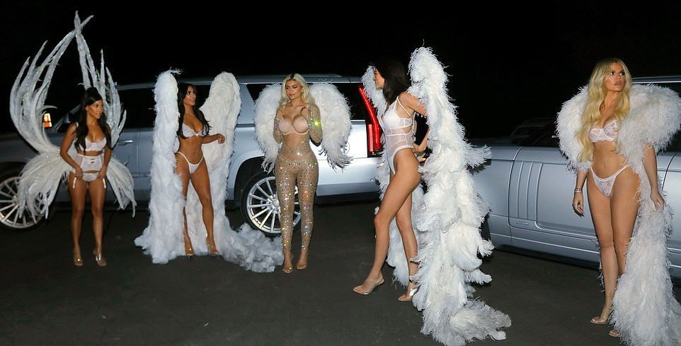 Famosas hermanas Kimberly, Kourtney, Khloe Kardashian, Kendall y Kylie Jenner parecen Ángeles de Victoria’s Secret con sus disfraces para Halloween en Los Ángeles, 31/10/2018.