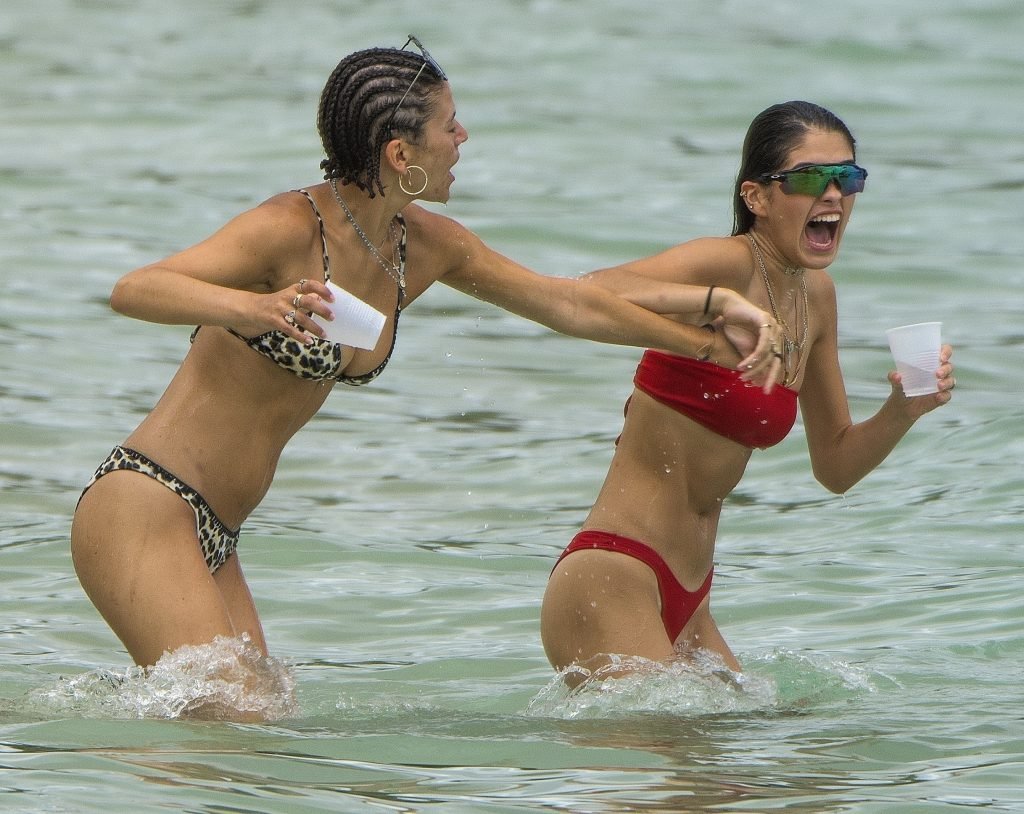 Rocco Ritchie’s ex novia modelo Kim Turnbull (18) fue vista con amigos en la playa en Barbados, 11/08/2018. Rocco es el hijo de Madonna y su ex esposo cineasta Guy Ritchie.