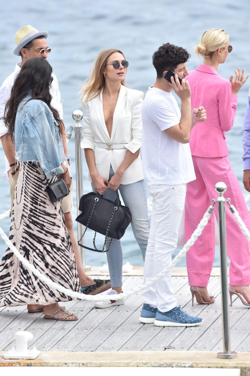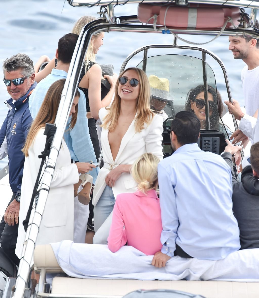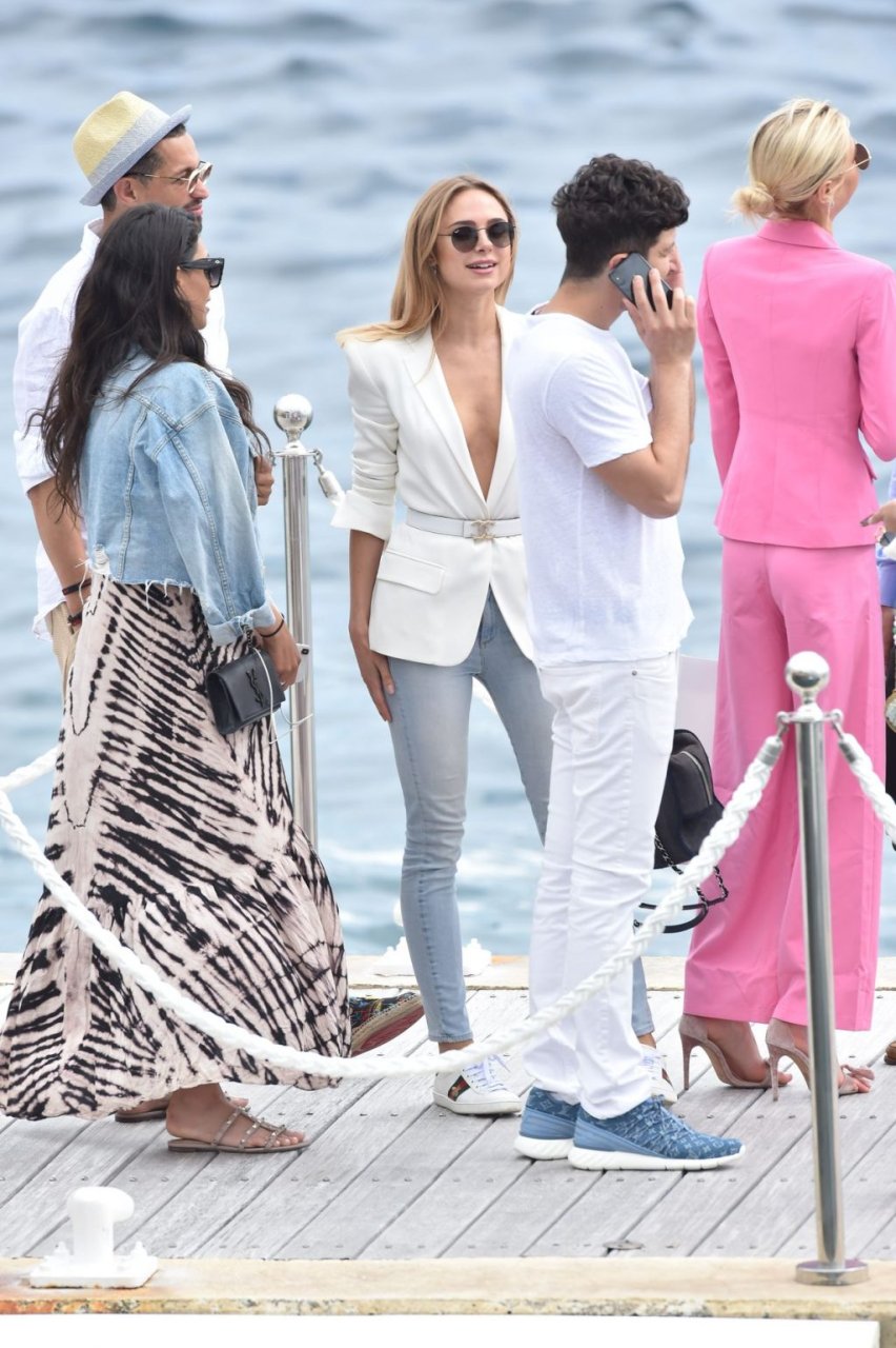 Kimberley Garner aparece sin sujetador con una sexy chaqueta blanca y jeans en el hotel Eden Roc en Antibes, 21/05/2019.