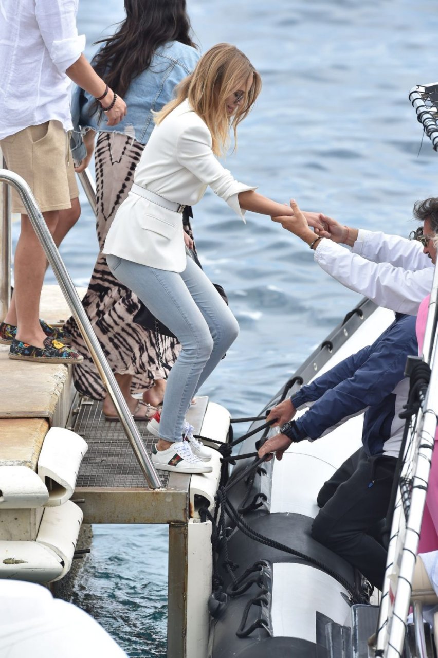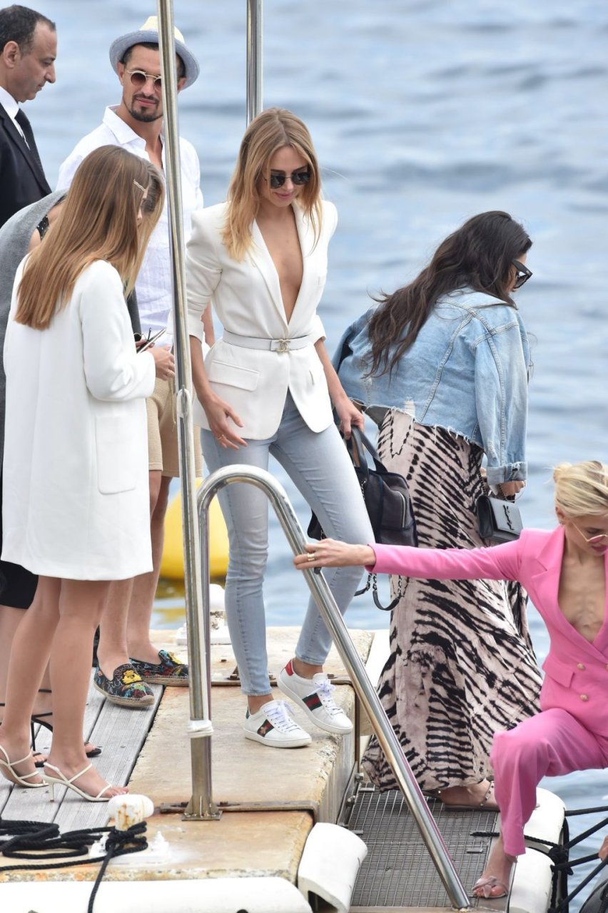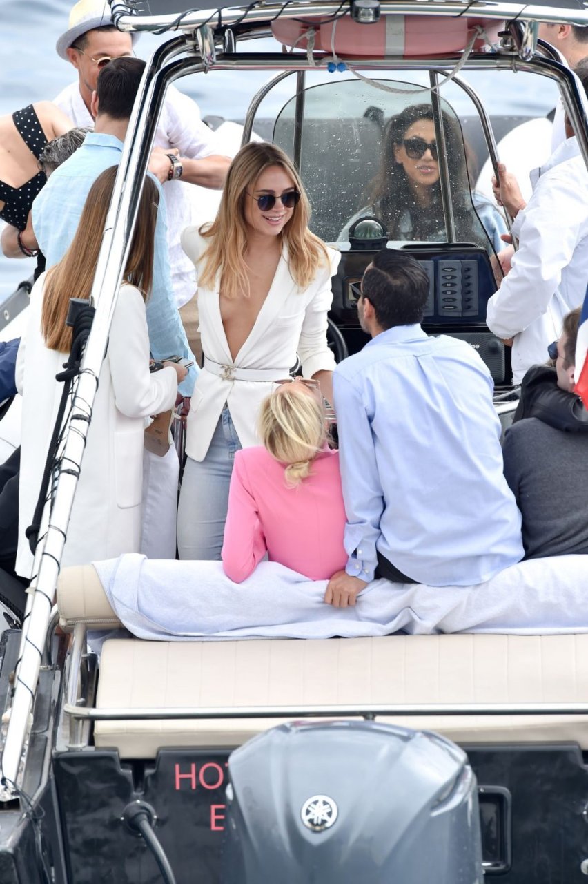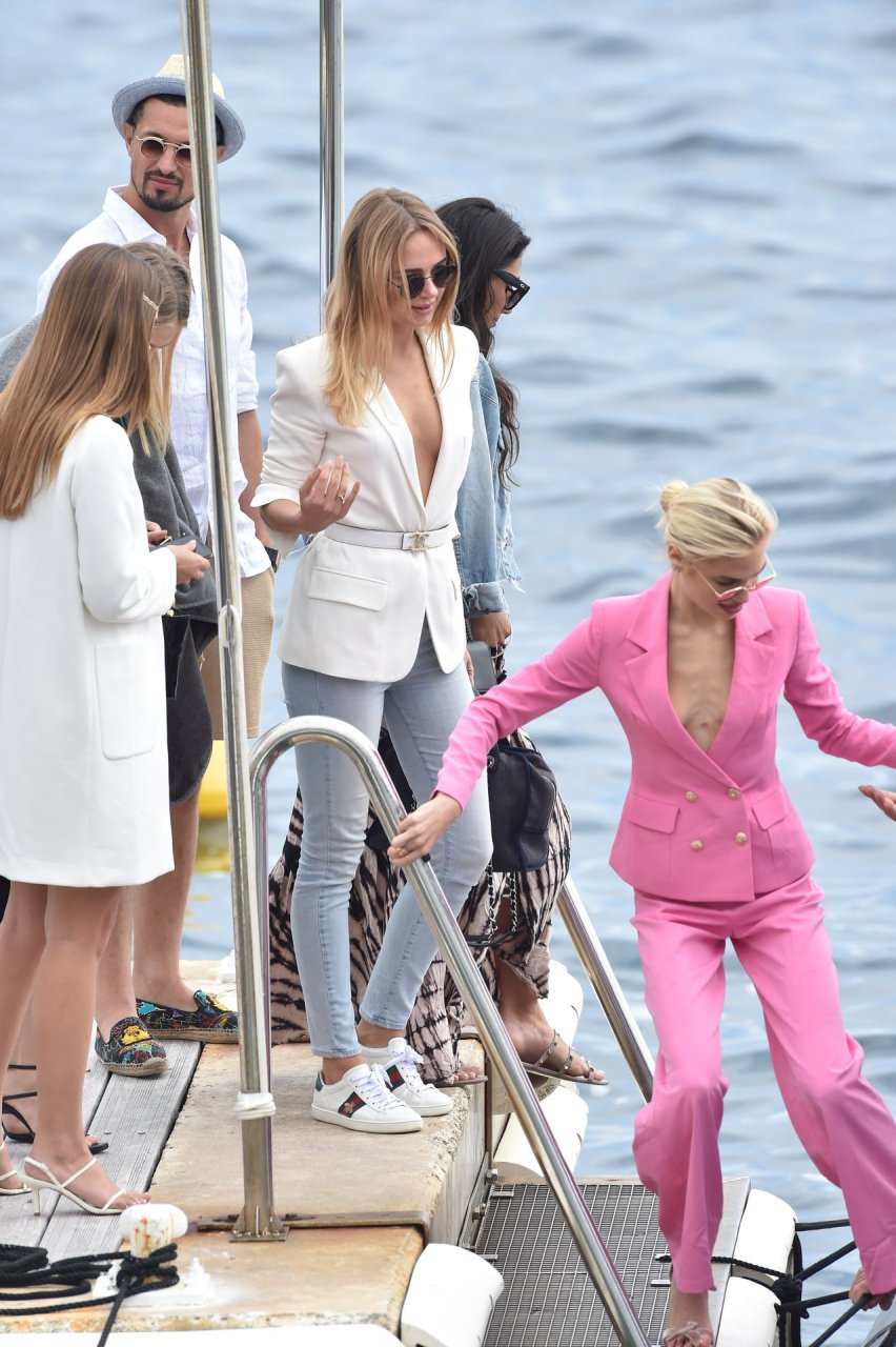 Kimberley Garner aparece sin sujetador con una sexy chaqueta blanca y jeans en el hotel Eden Roc en Antibes, 21/05/2019.
