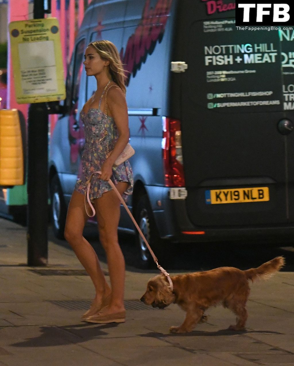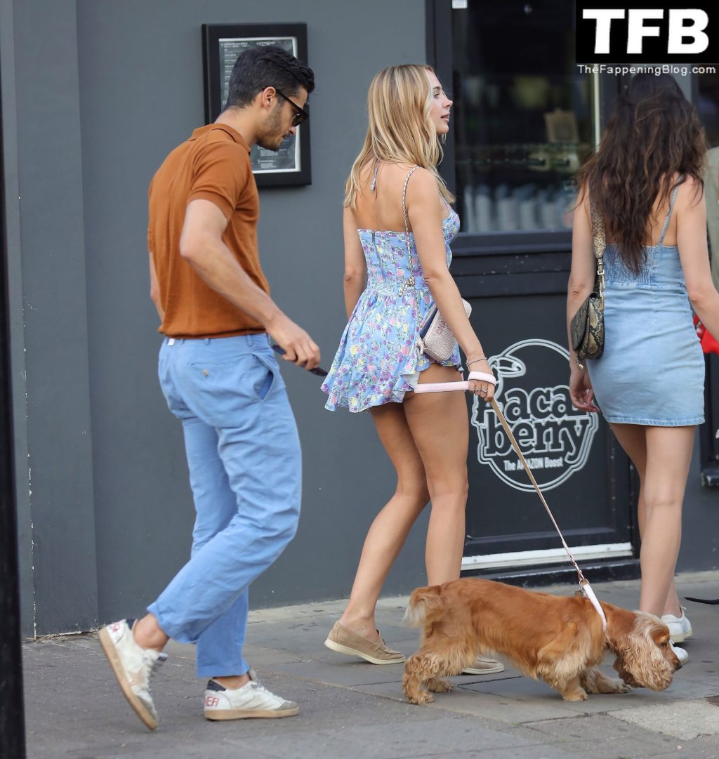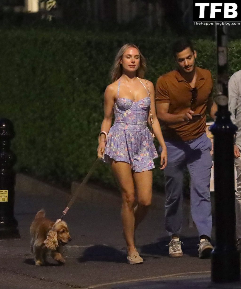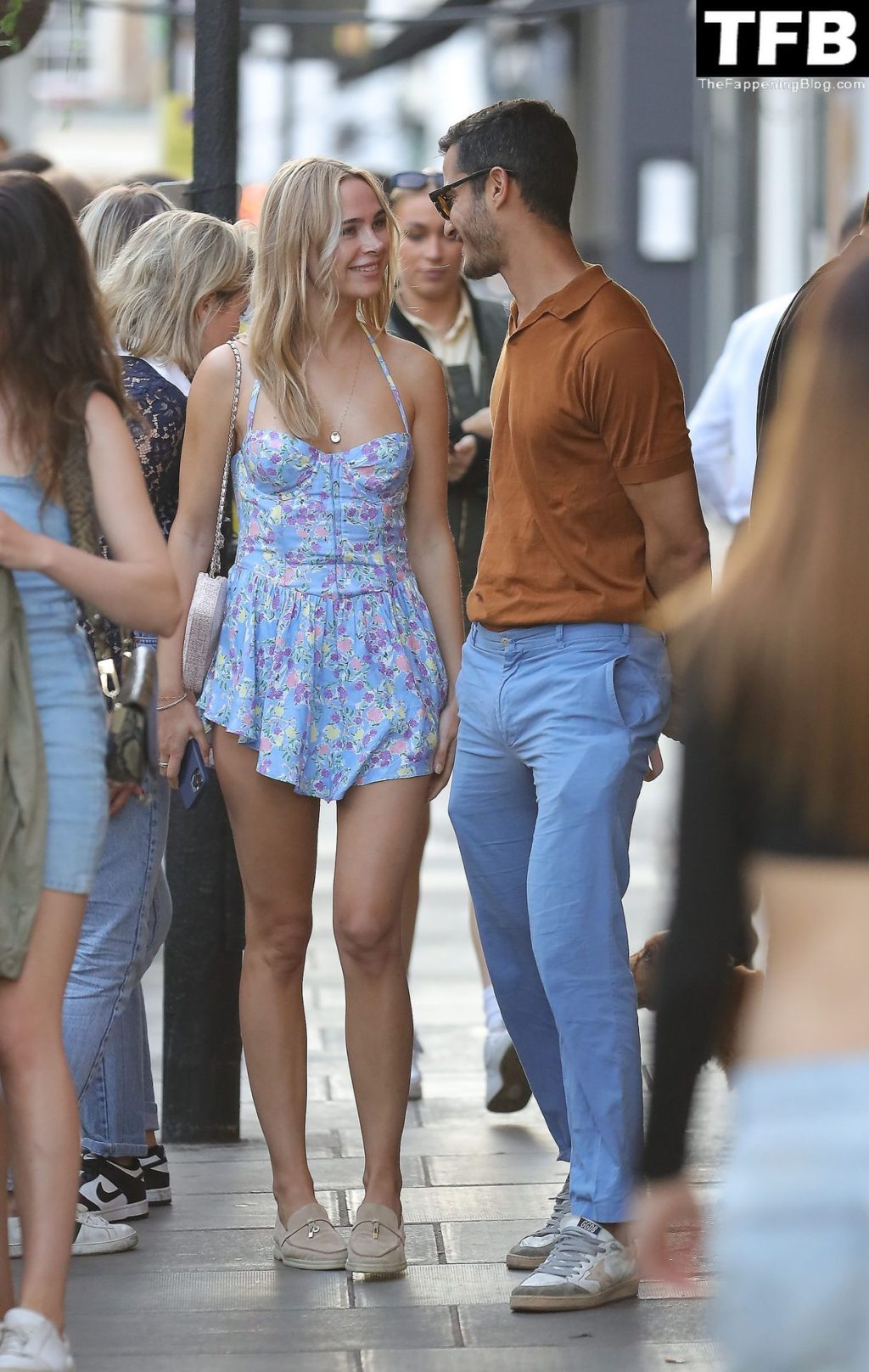La ex estrella de “Made In Chelsea” llevaba un vestido azul de verano, que era bastante corto, lo que llevó a que mostrara su trasero.