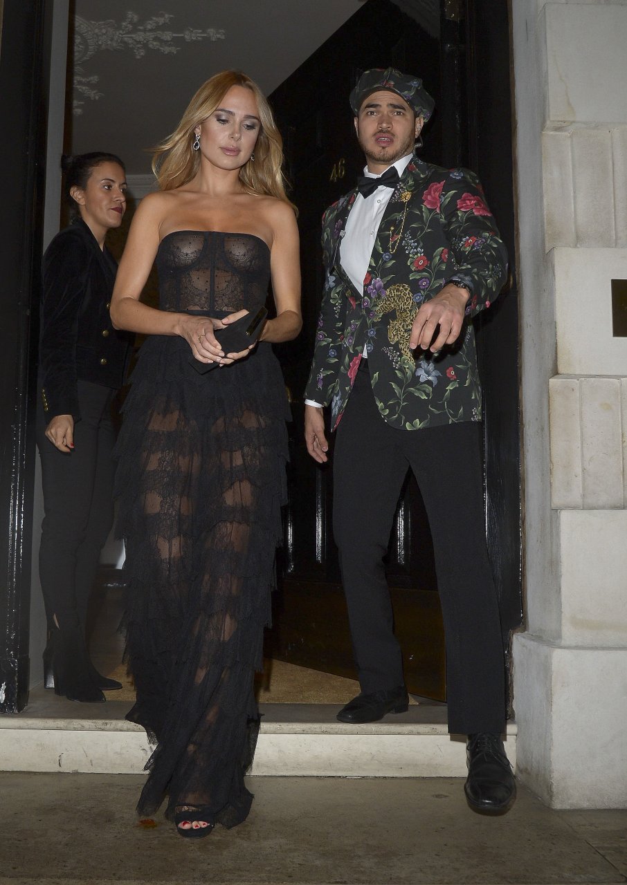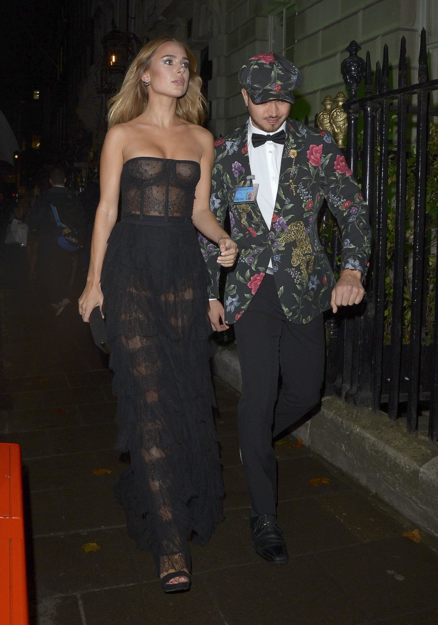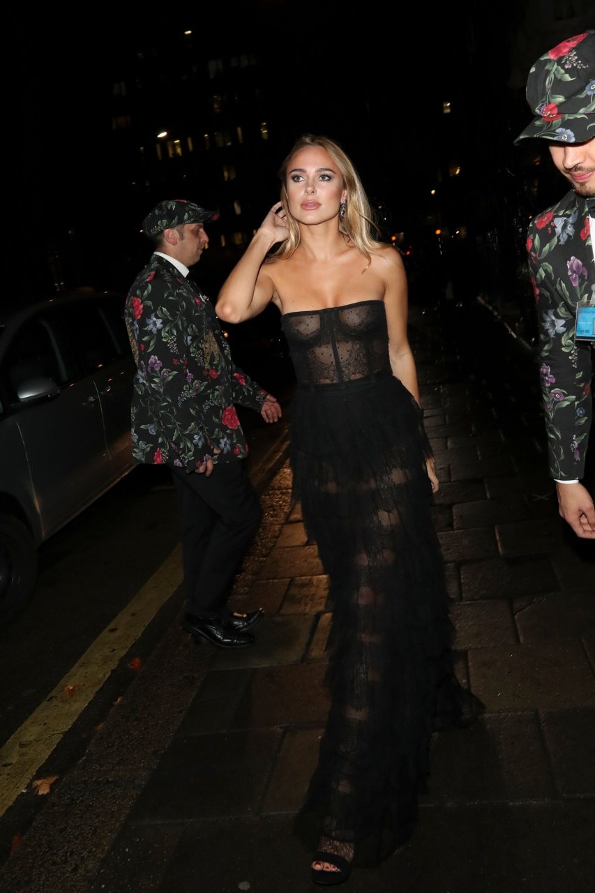 Estrella inglesa de reality TV, diseñadora de moda, actriz, Kimberley Garner deslumbró en la Gala del Día Internacional de la Niña en Londres, 11/10/2018. La rubia de 28 años llevaba un vestido negro de encaje transparente sin sujetador.