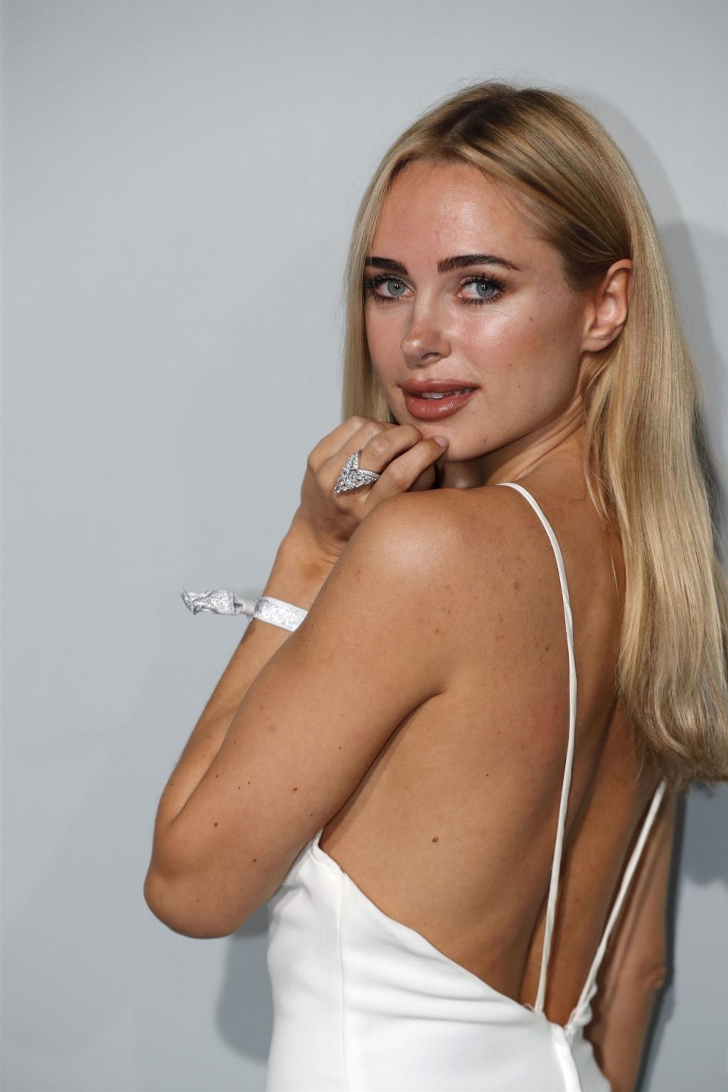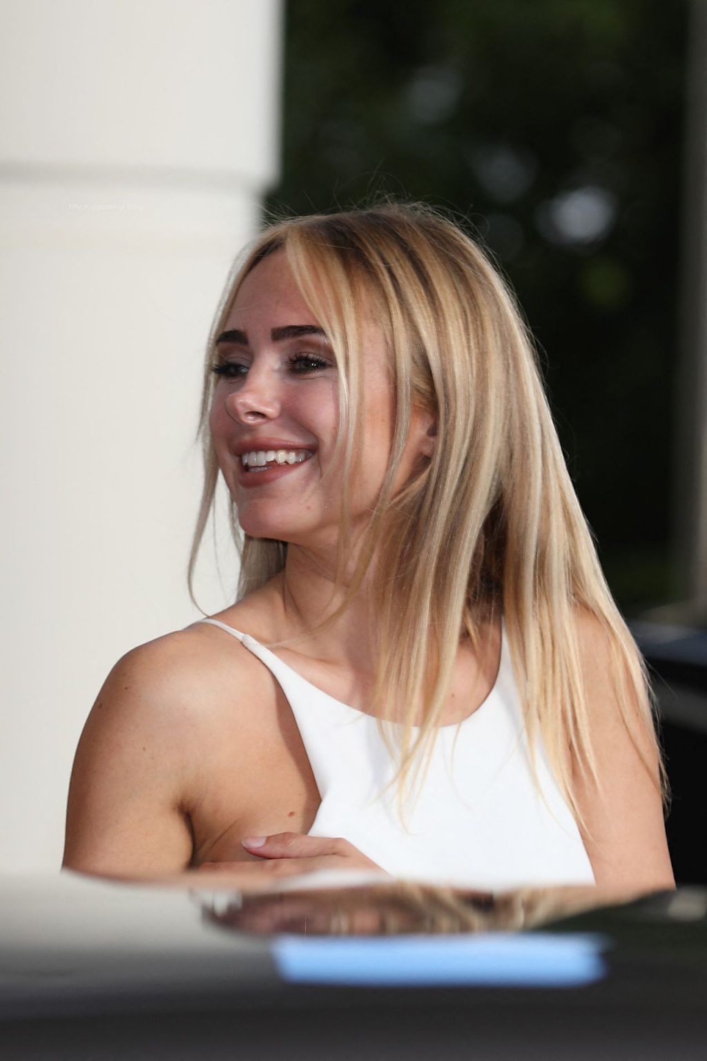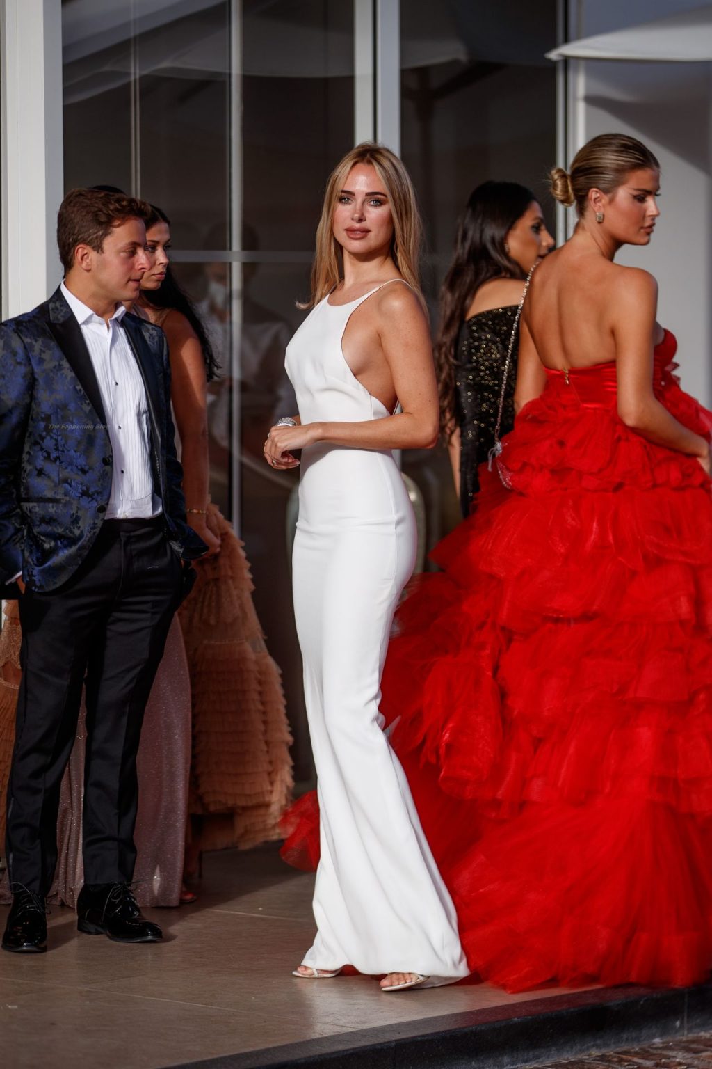 Modelo y diseñadora Kimberley Garner es vista saliendo del Hotel Martinez durante el Festival de Cine de Cannes 2021 para asistir a la Gala amFAR, 16/07/2021.