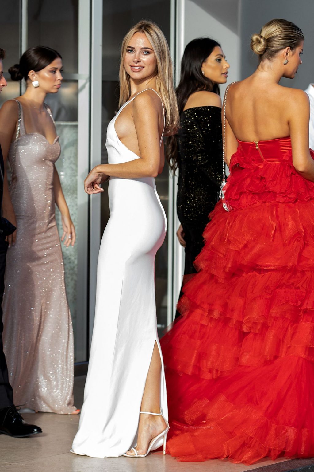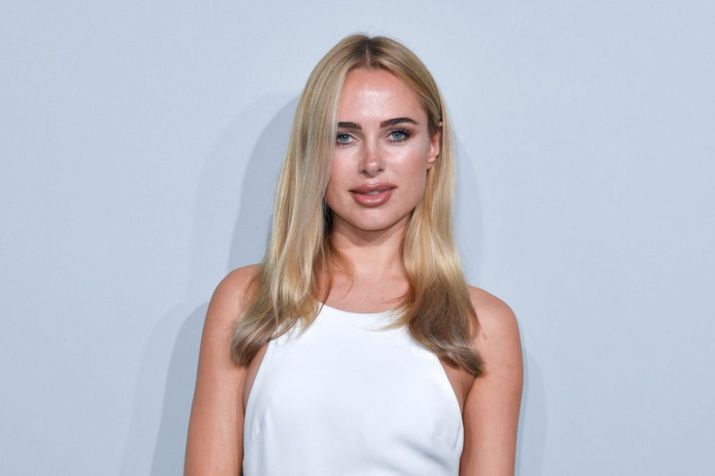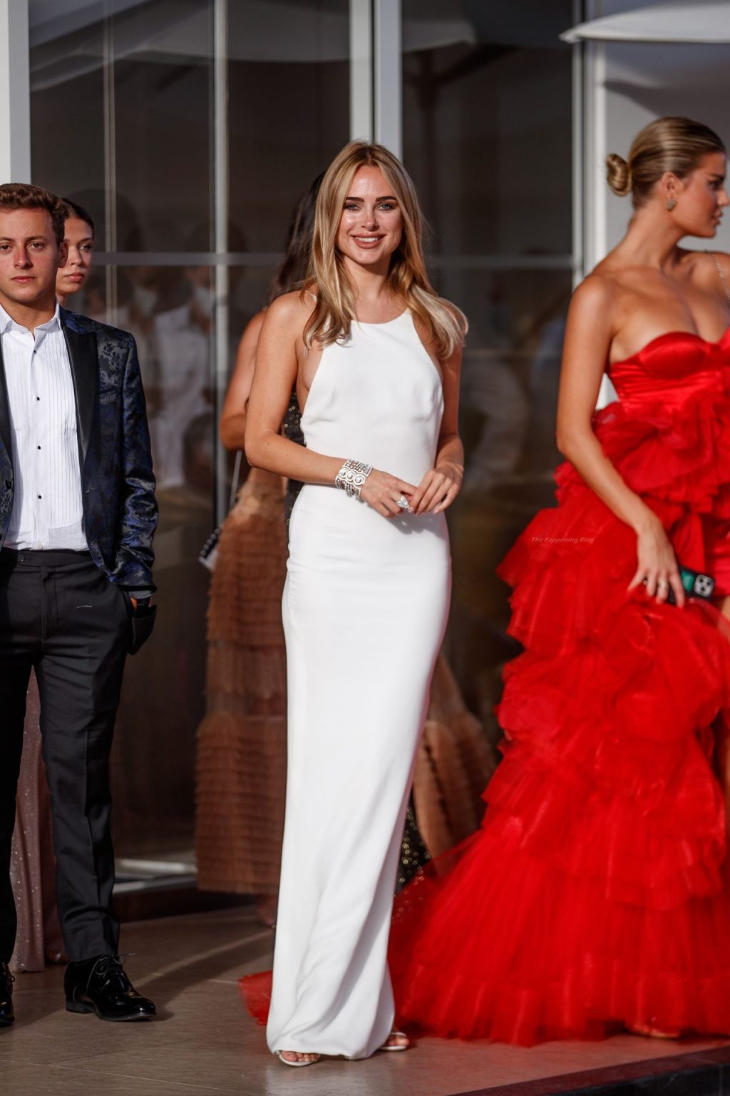 Modelo y diseñadora Kimberley Garner es vista saliendo del Hotel Martinez durante el Festival de Cine de Cannes 2021 para asistir a la Gala amFAR, 16/07/2021.