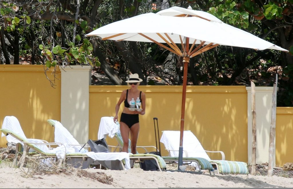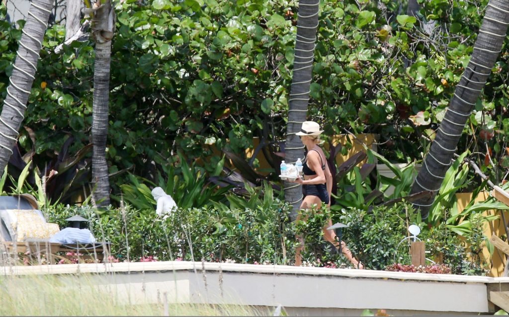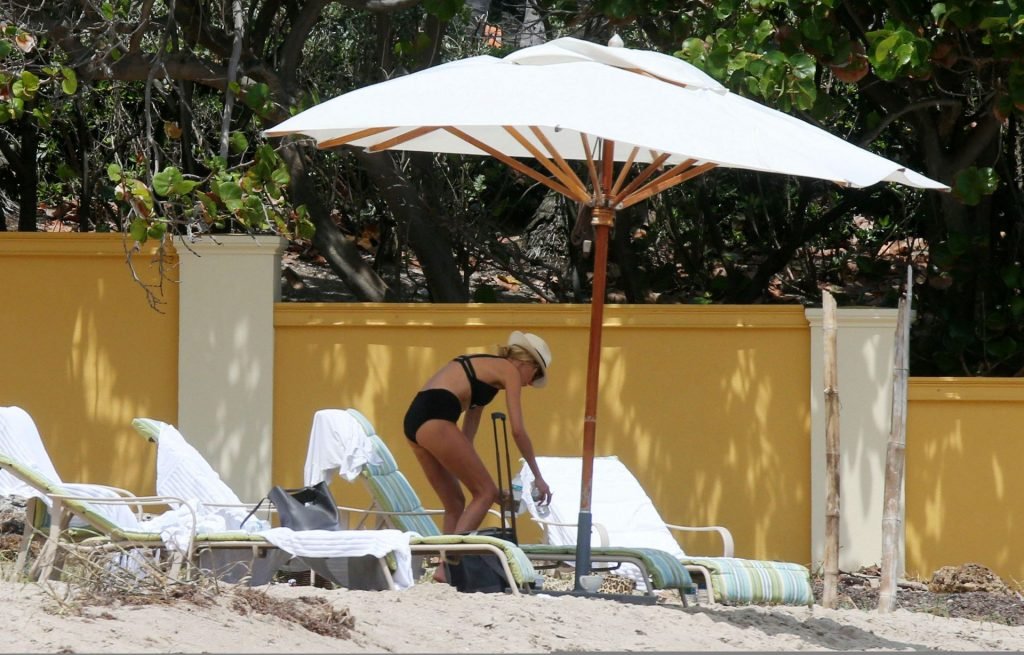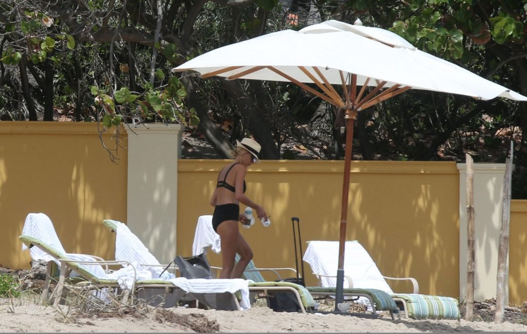 Kim Stewart luce un moderno bikini negro y un sombrero Panamá durante unas vacaciones con su padre rockero Rod y la familia – Palm Beach, FL, 07/04/2019. Kimberly Stewart es una actriz estadounidense de 39 años, productora de televisión, modelo de moda y diseñadora.