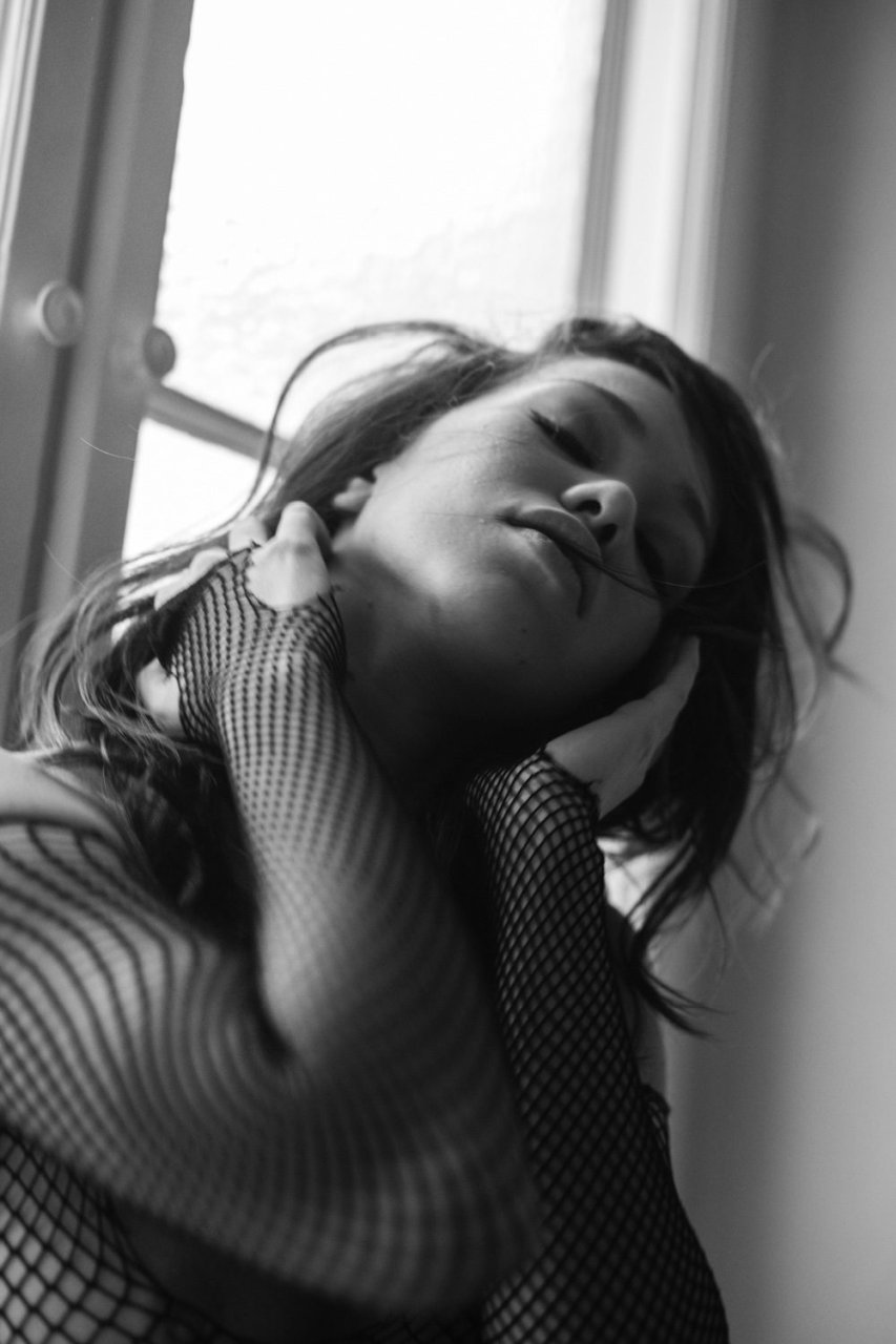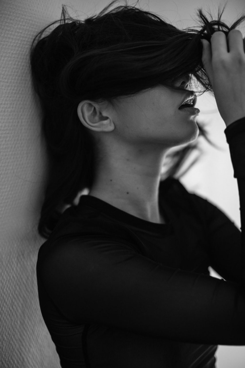 Mira otra sesión de fotos en blanco y negro desnuda y sexy de Kitrysha por Peter Baumann de Berlín (2019). ¡A esta chica asiática le gusta la lencería de red!