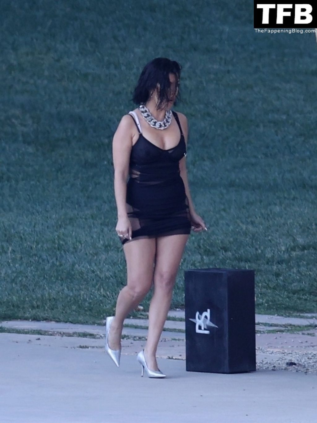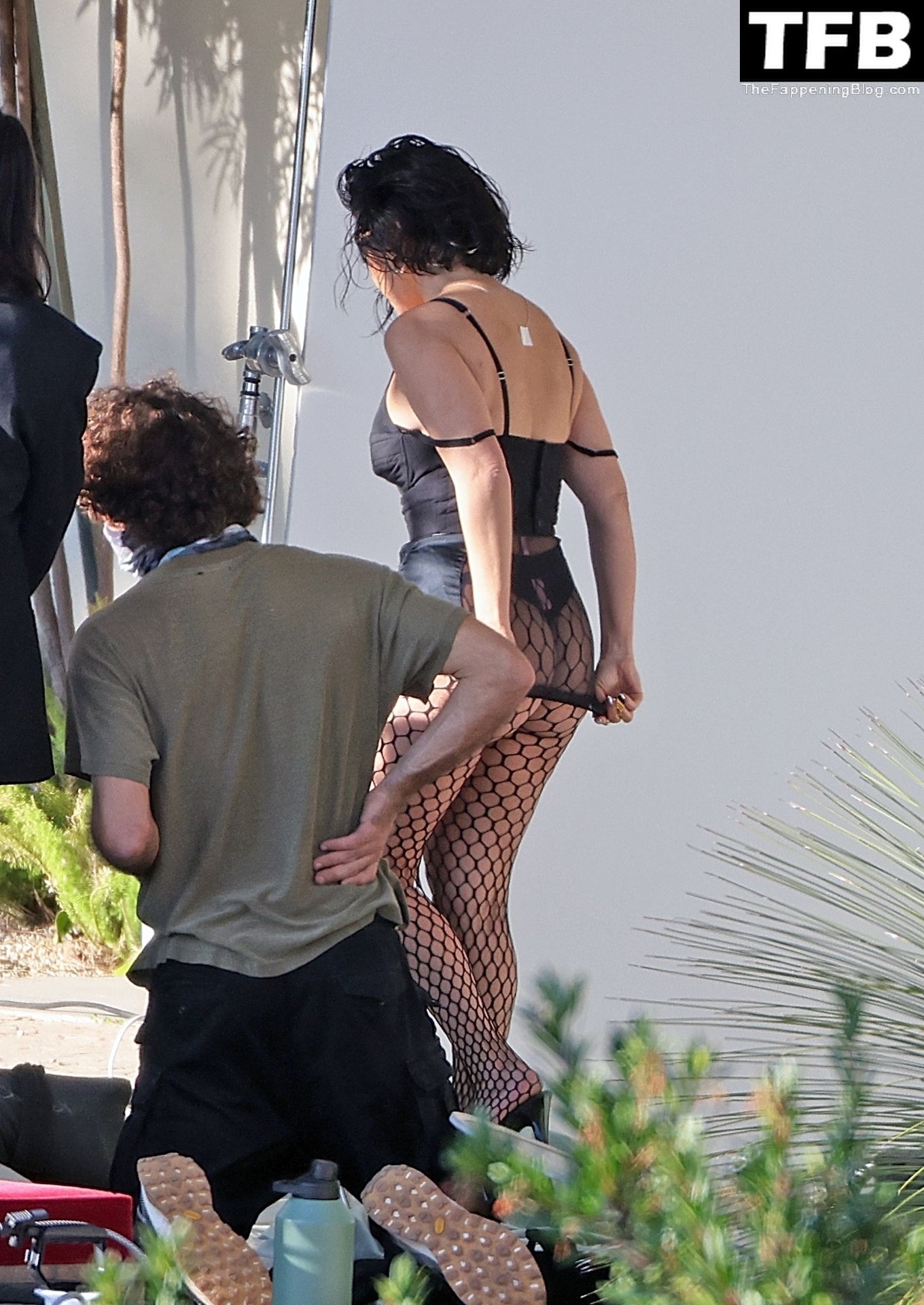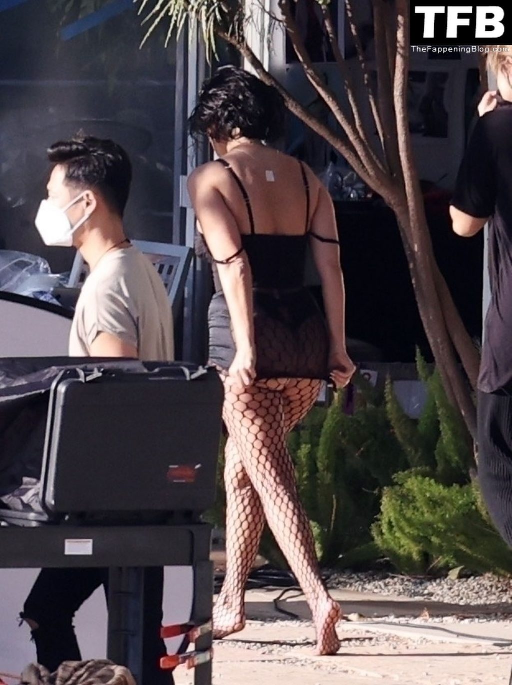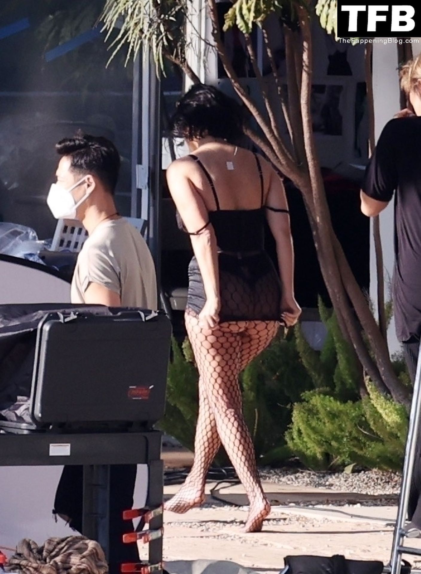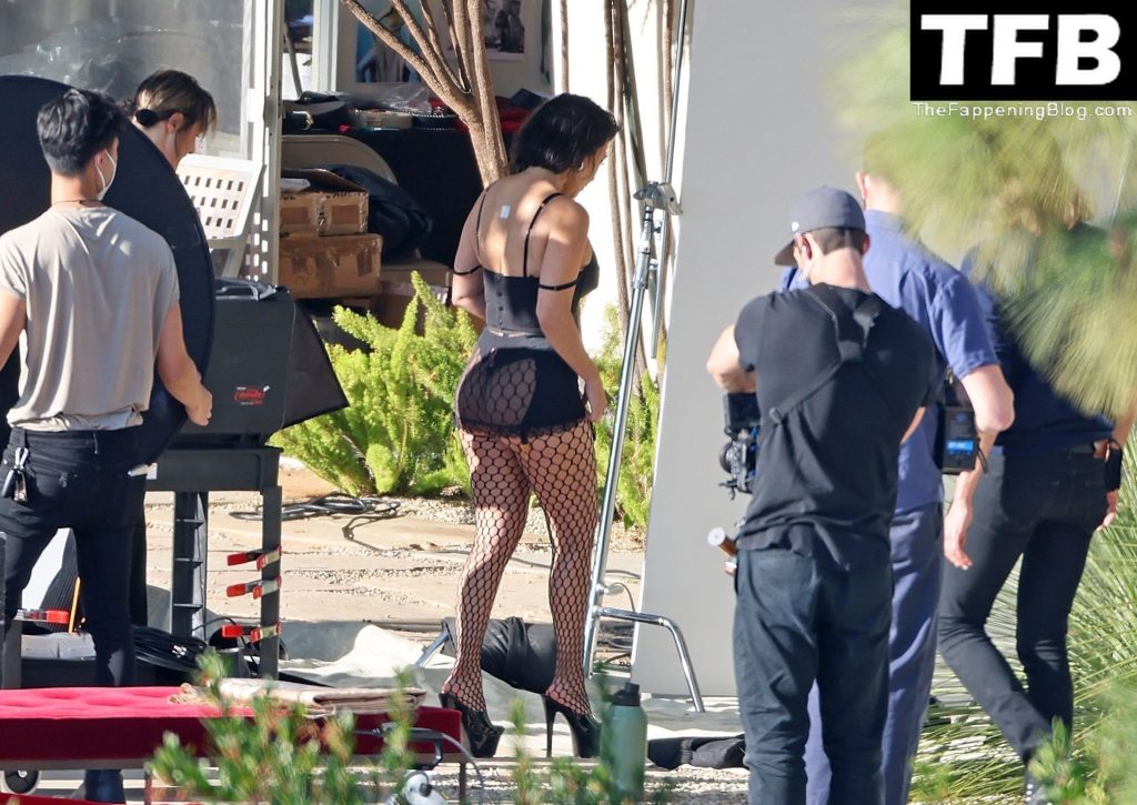 La estrella de reality posó con varios looks atrevidos de lencería el martes, incluyendo uno con un accesorio de aro en el pezón. Kourtney fue vista con un bustier negro y tanga con liguero sobre medias de red ancha y tacones de aguja de charol altísimos. En otro look, el sujetador negro y la blusa de malla de Kourtney mostraban un aro en el pezón adherido al exterior.