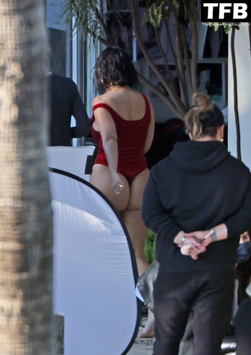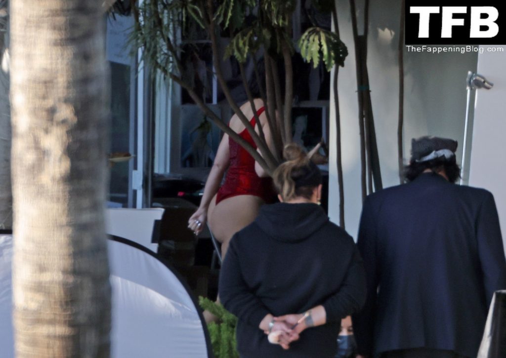 La mujer de 42 años también mostró su trasero firme con un corsé rojo y tanga. ¡Feliz Día de San Valentín, Travis!