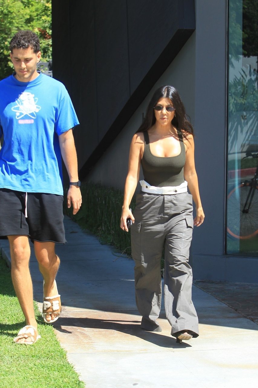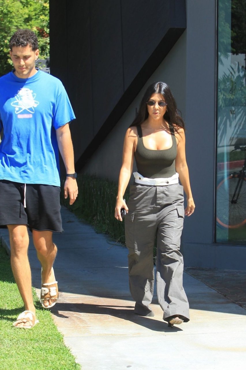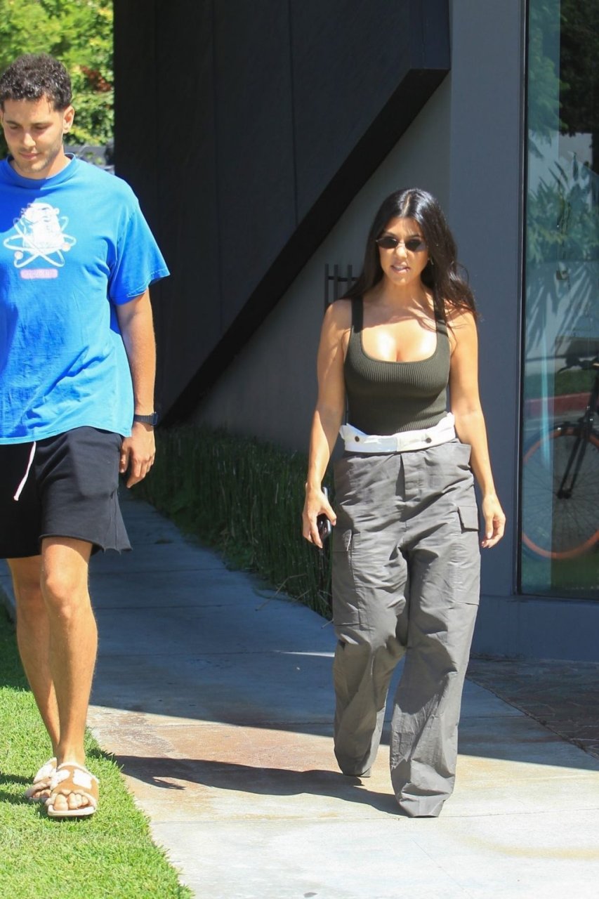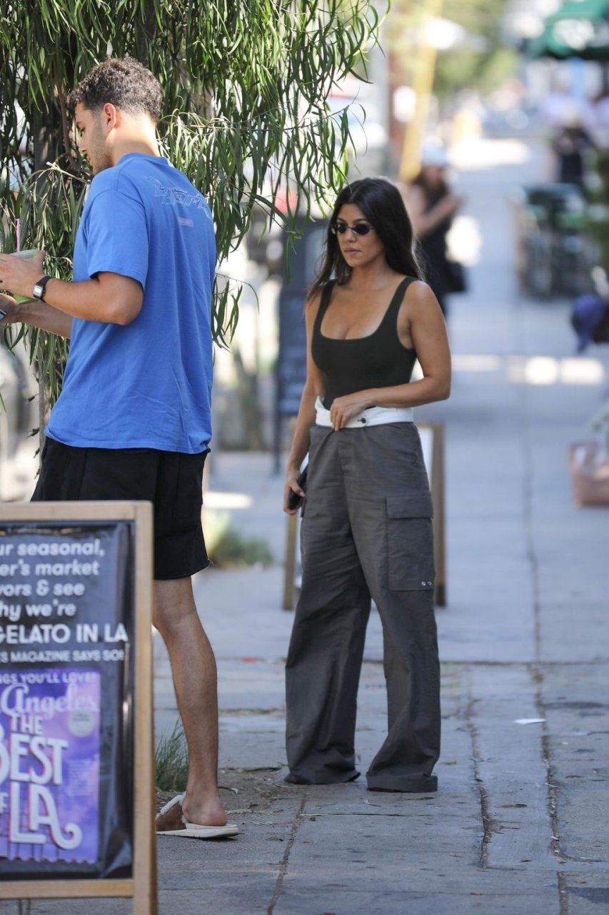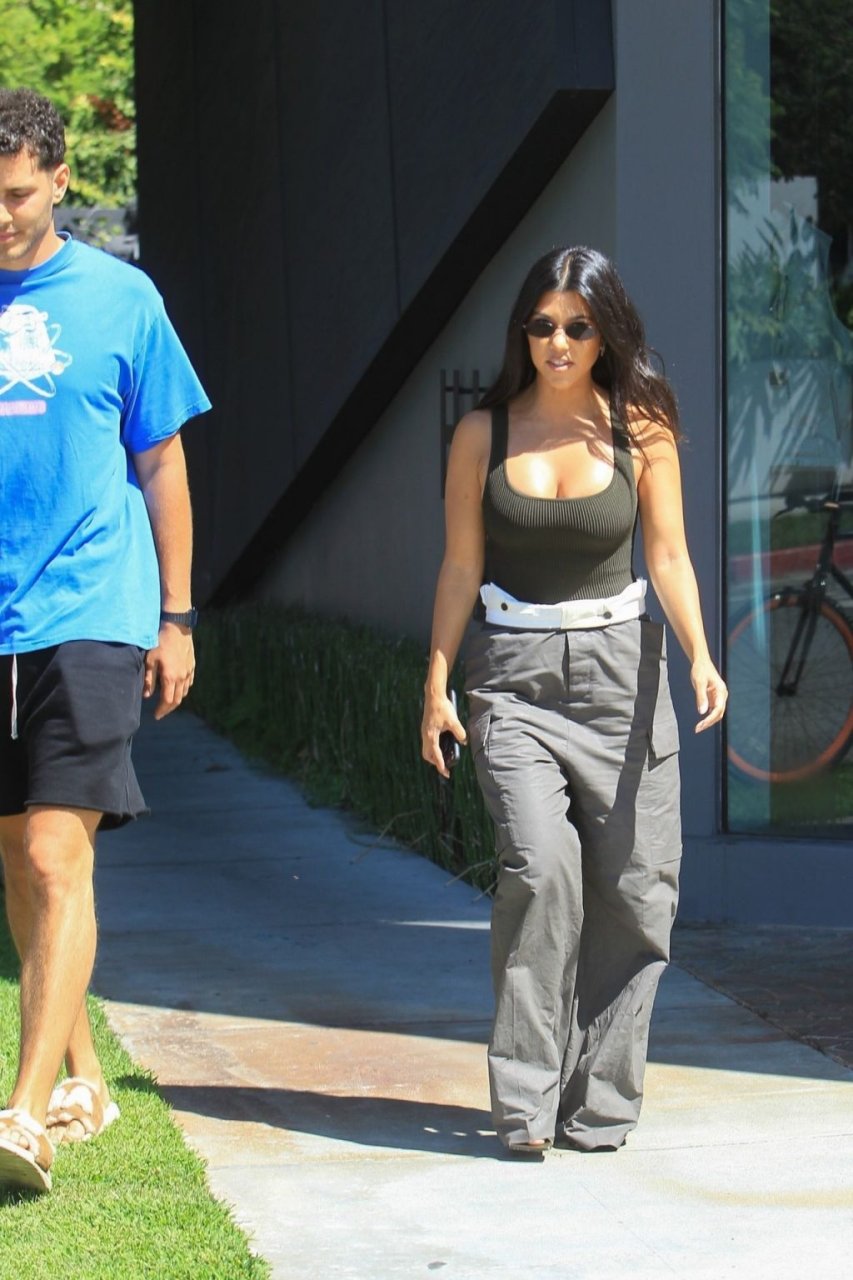 Estrella de reality TV, modelo y madre atractiva Kourtney Kardashian sale en West Hollywood para tomar Matcha con la modelo y mejor amiga Kardashian, Fai Khadra, 12/09/2019. ¡Kourtney lleva una camiseta sin mangas con escote que revela su físico voluptuoso!