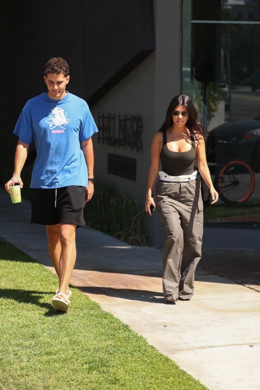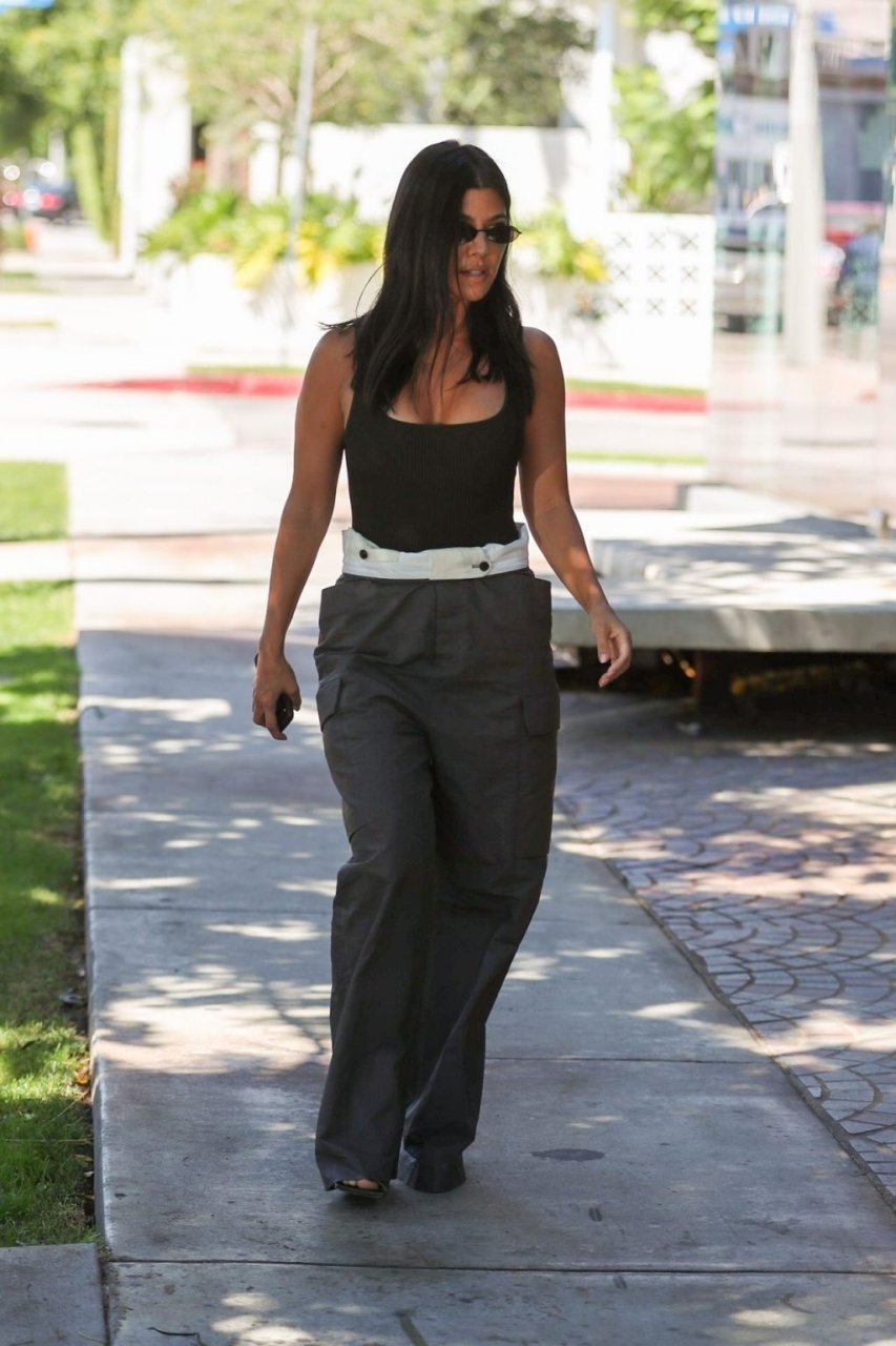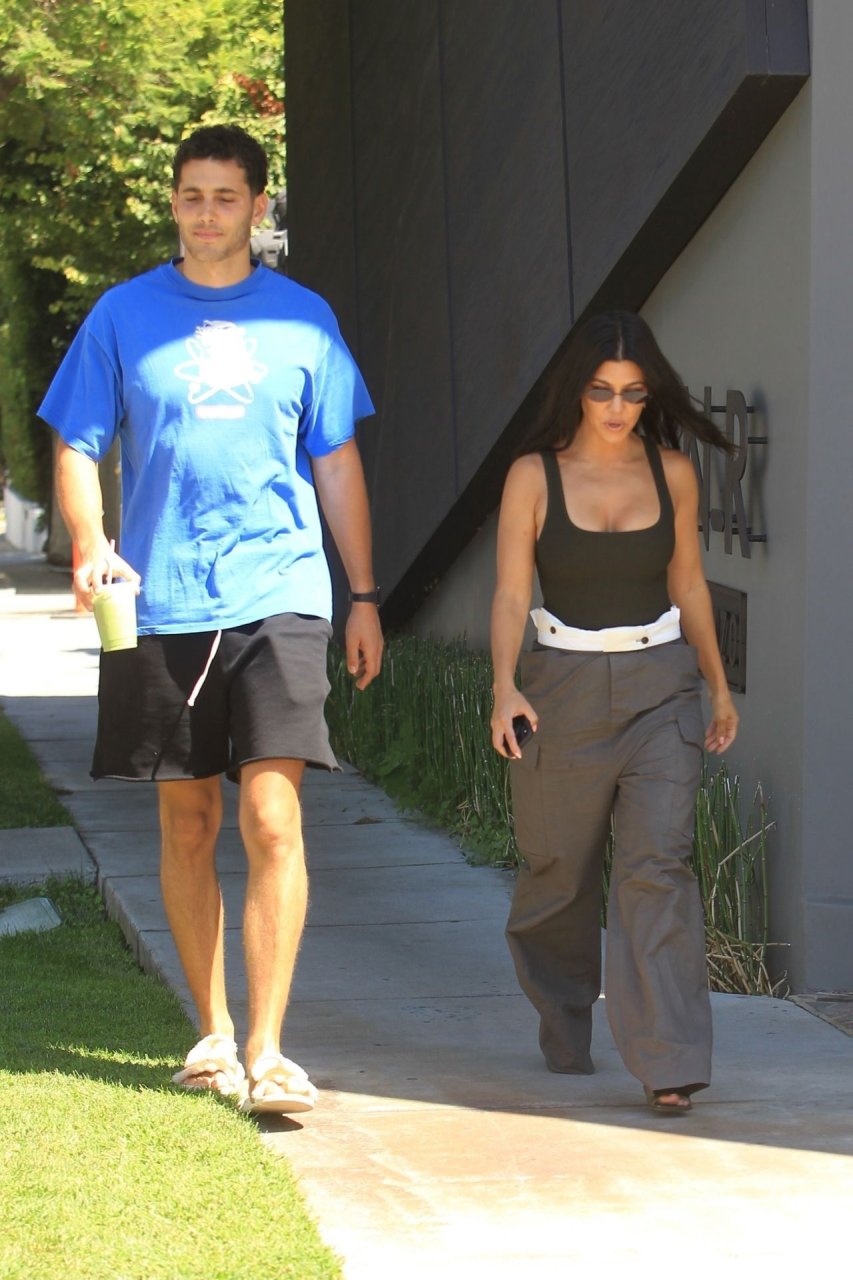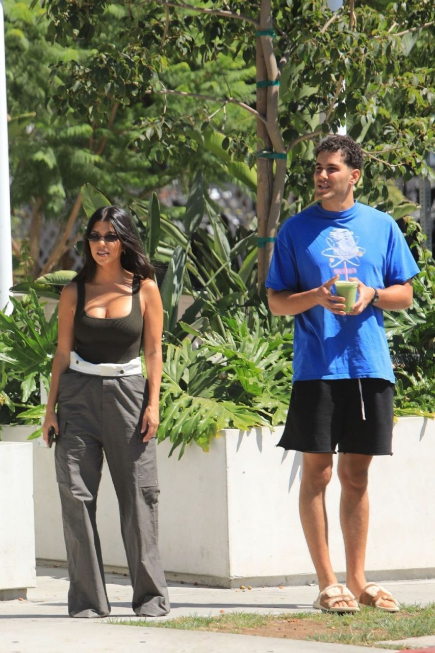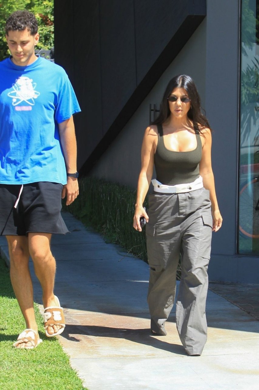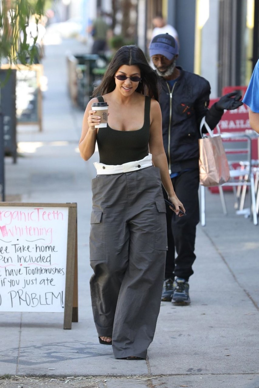 Estrella de reality TV, modelo y madre atractiva Kourtney Kardashian sale en West Hollywood para tomar Matcha con la modelo y mejor amiga Kardashian, Fai Khadra, 12/09/2019. ¡Kourtney lleva una camiseta sin mangas con escote que revela su físico voluptuoso!