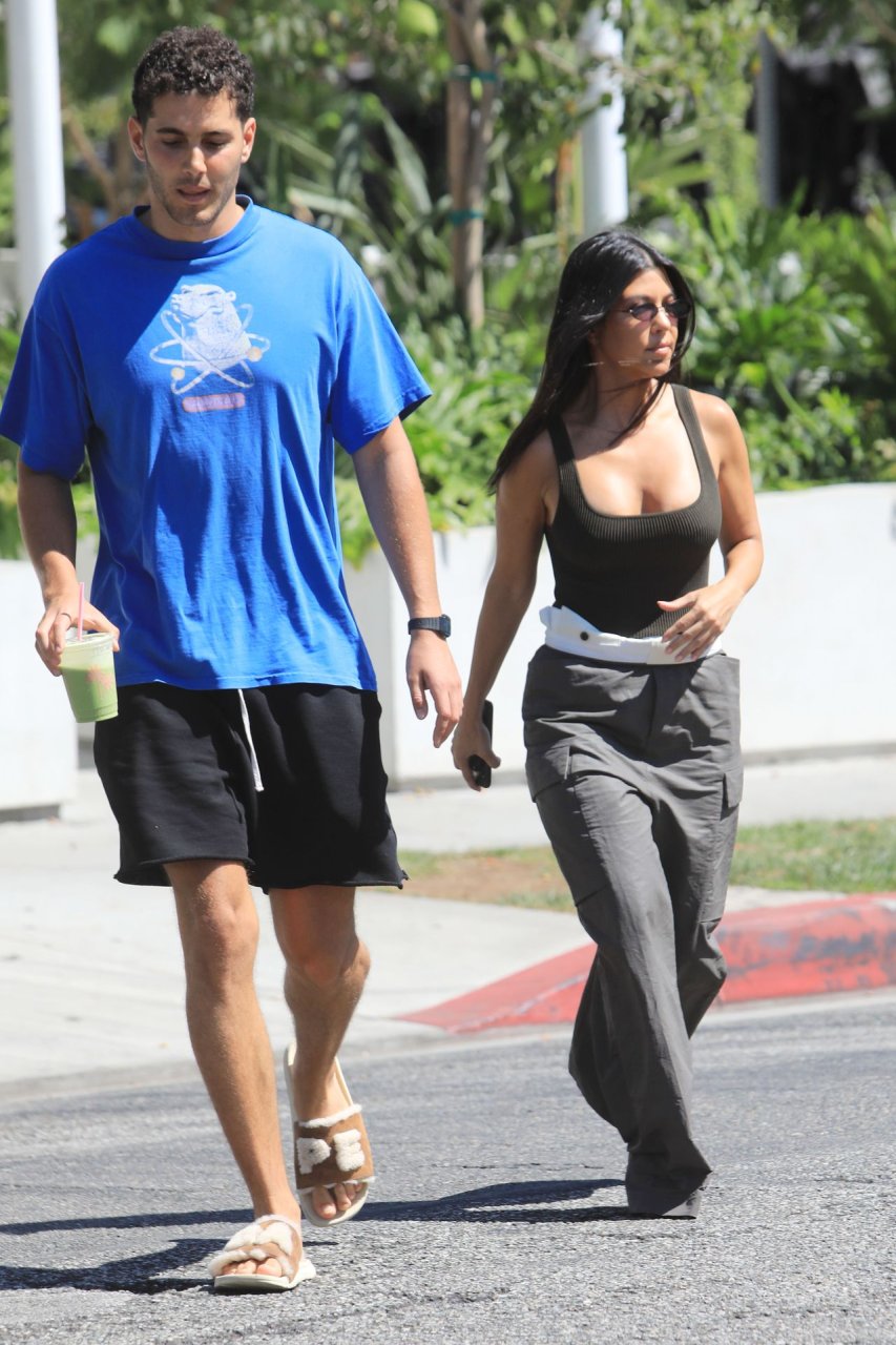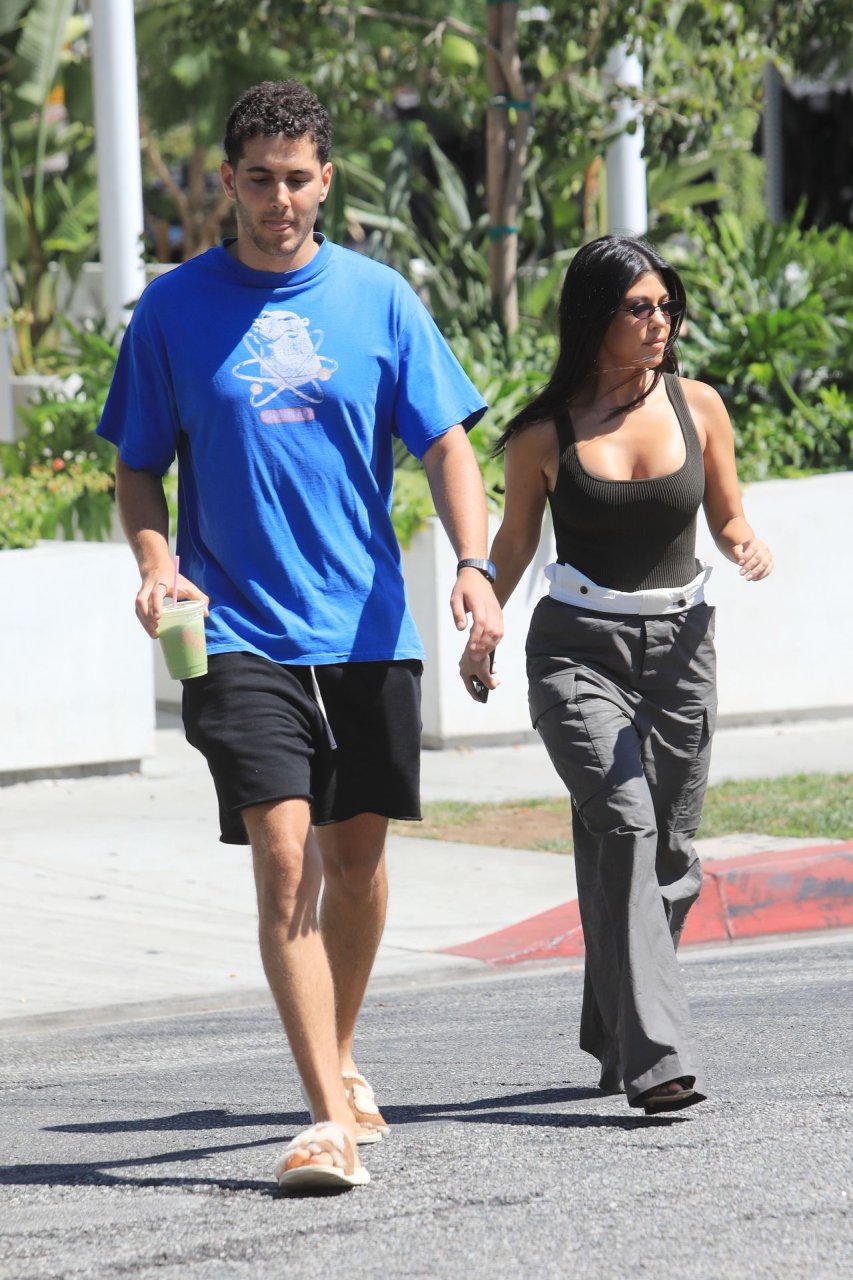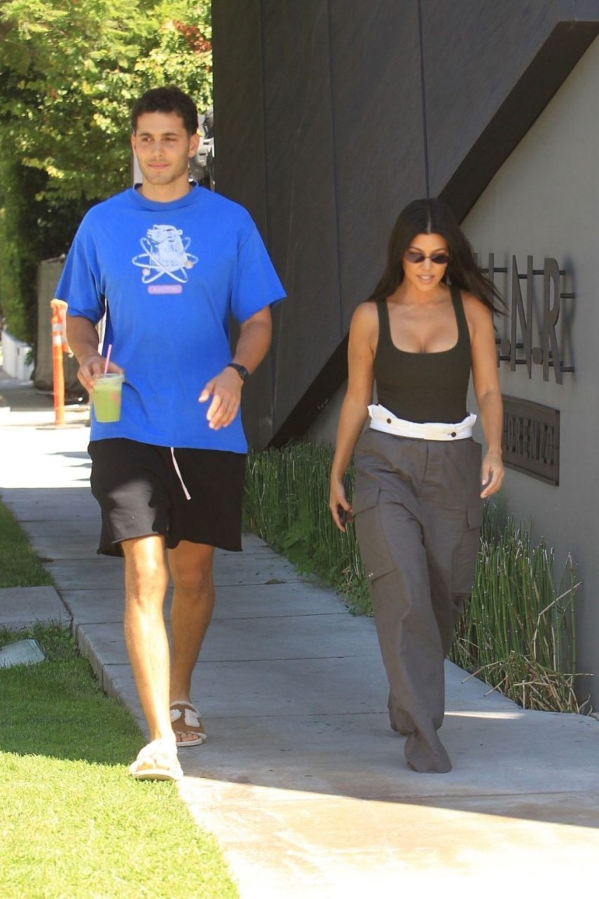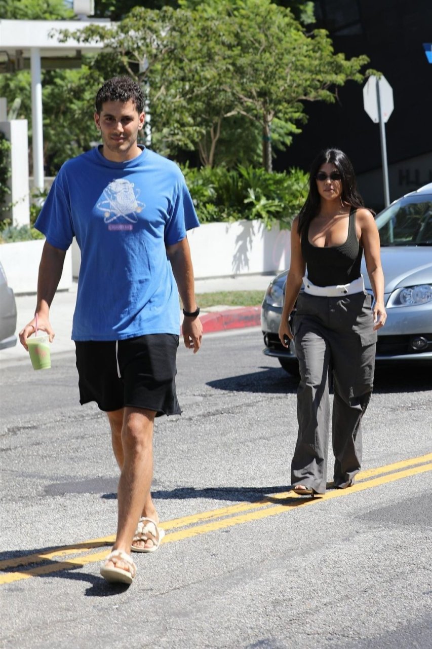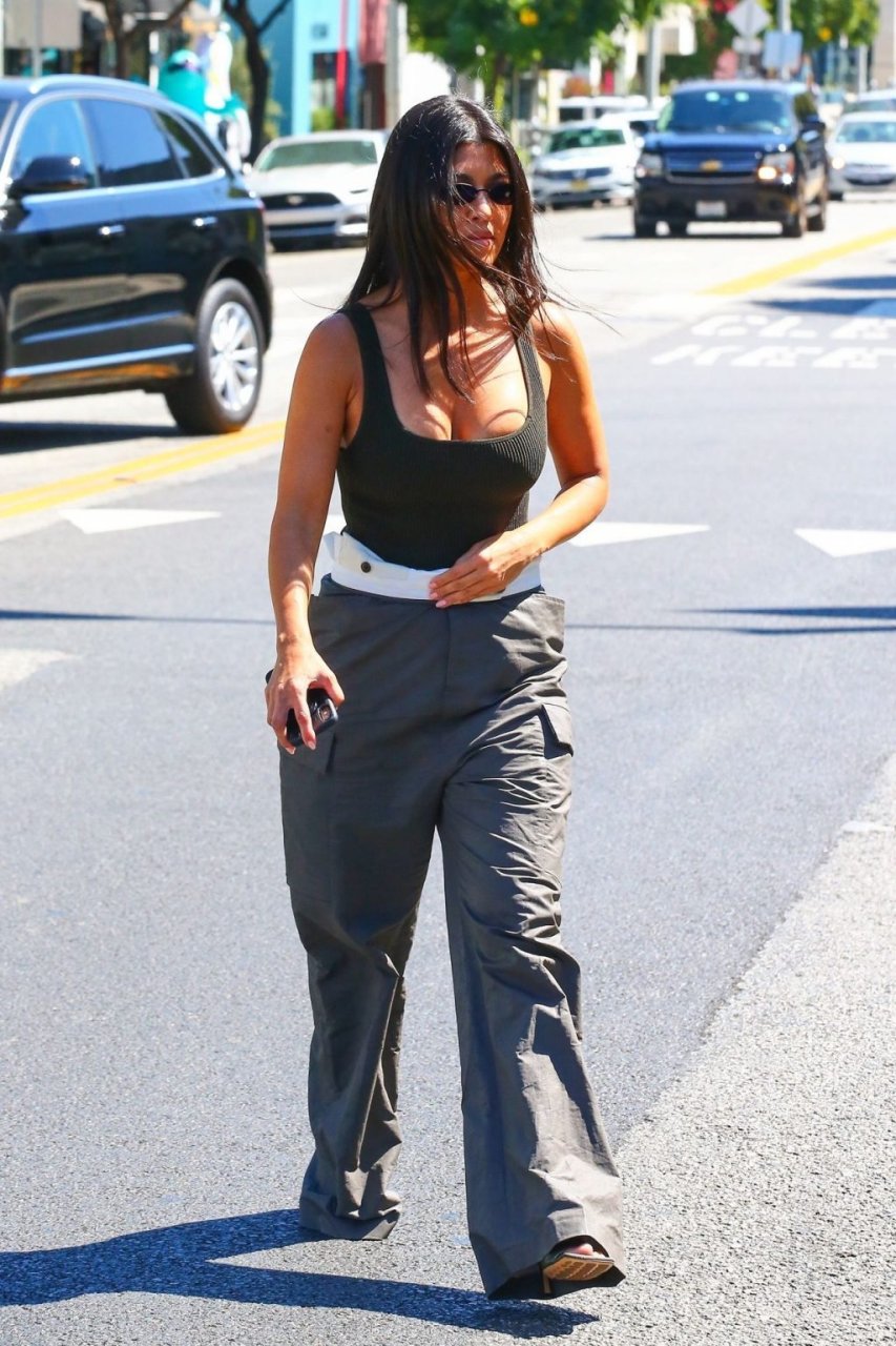 Estrella de reality TV, modelo y madre atractiva Kourtney Kardashian sale en West Hollywood para tomar Matcha con la modelo y mejor amiga Kardashian, Fai Khadra, 12/09/2019. ¡Kourtney lleva una camiseta sin mangas con escote que revela su físico voluptuoso!