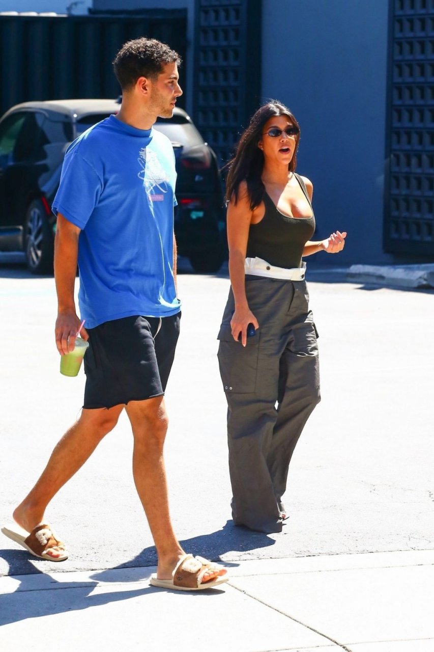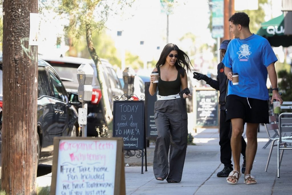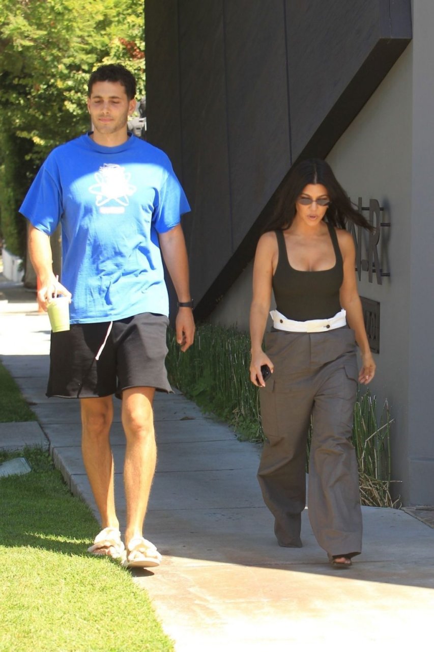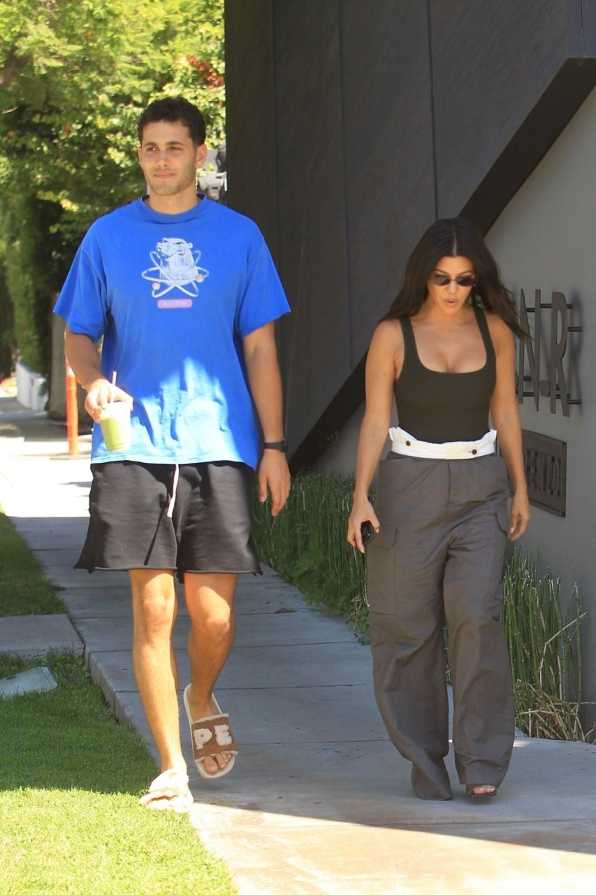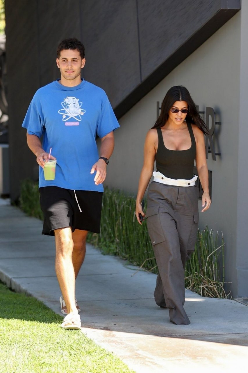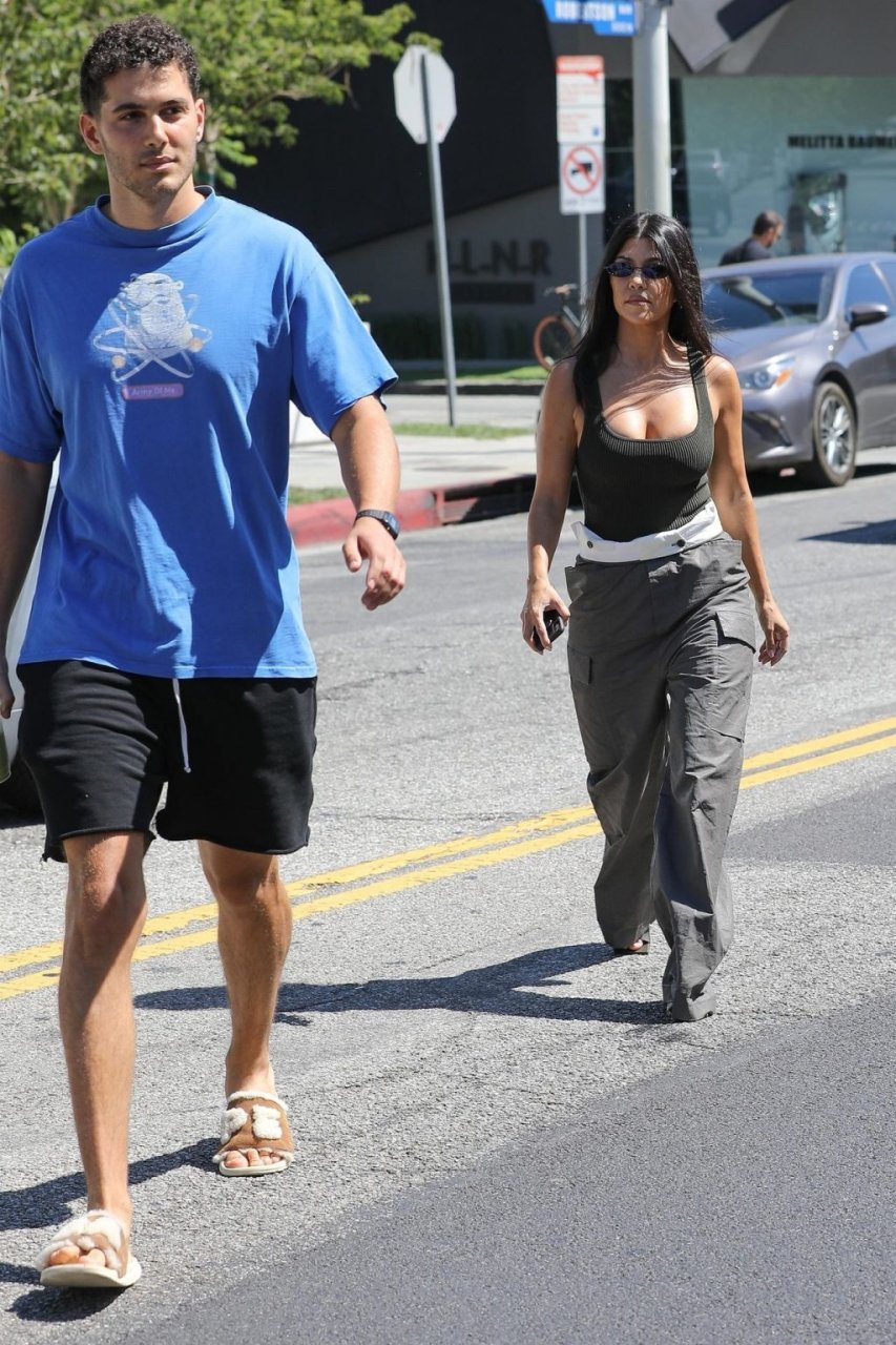 Estrella de reality TV, modelo y madre atractiva Kourtney Kardashian sale en West Hollywood para tomar Matcha con la modelo y mejor amiga Kardashian, Fai Khadra, 12/09/2019. ¡Kourtney lleva una camiseta sin mangas con escote que revela su físico voluptuoso!
