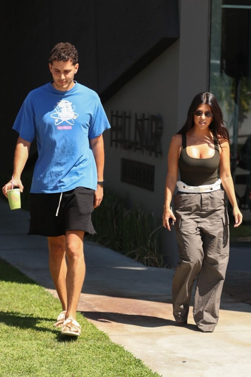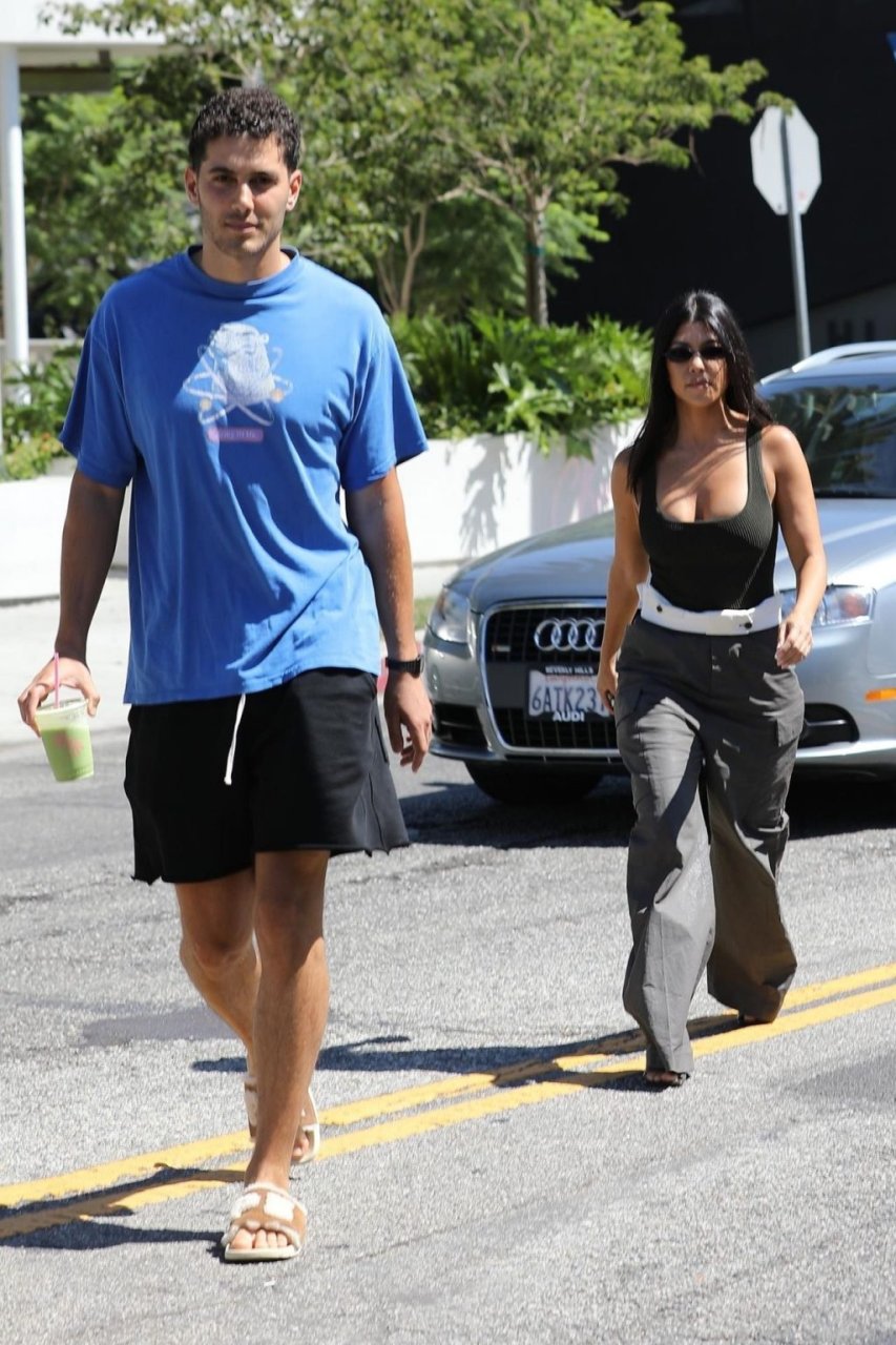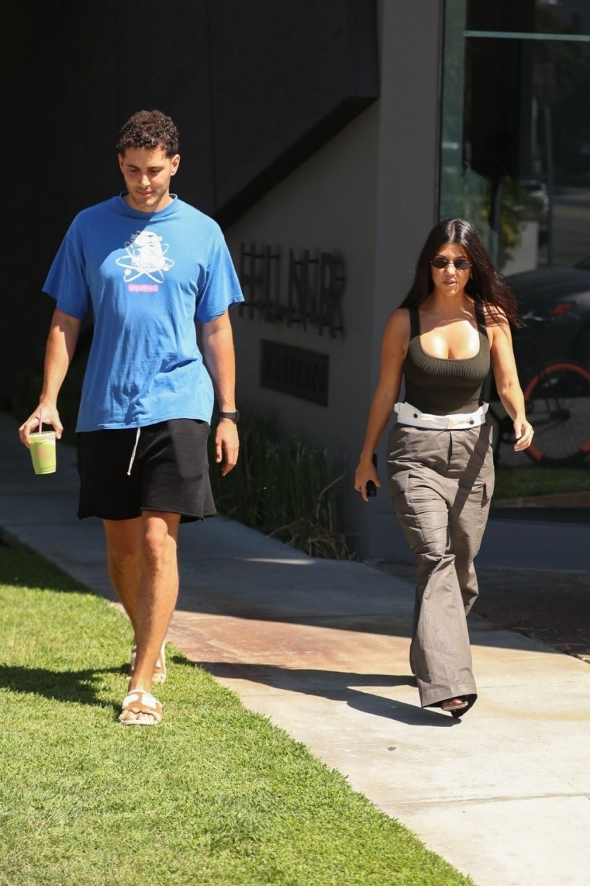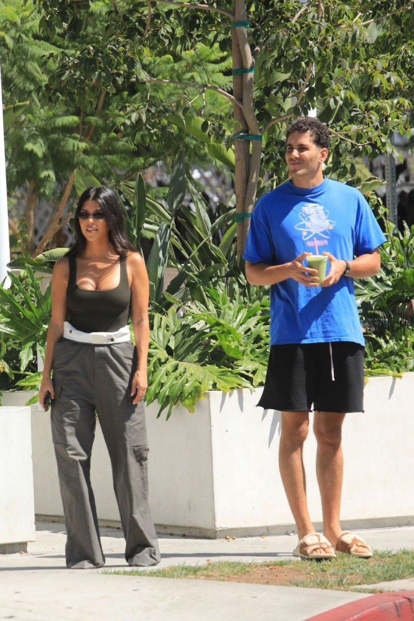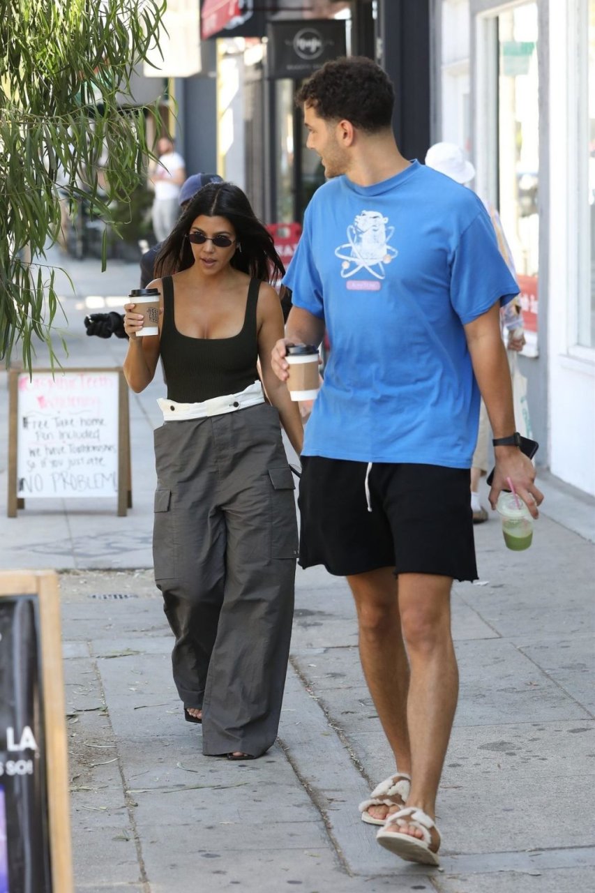 Estrella de reality TV, modelo y madre atractiva Kourtney Kardashian sale en West Hollywood para tomar Matcha con la modelo y mejor amiga Kardashian, Fai Khadra, 12/09/2019. ¡Kourtney lleva una camiseta sin mangas con escote que revela su físico voluptuoso!