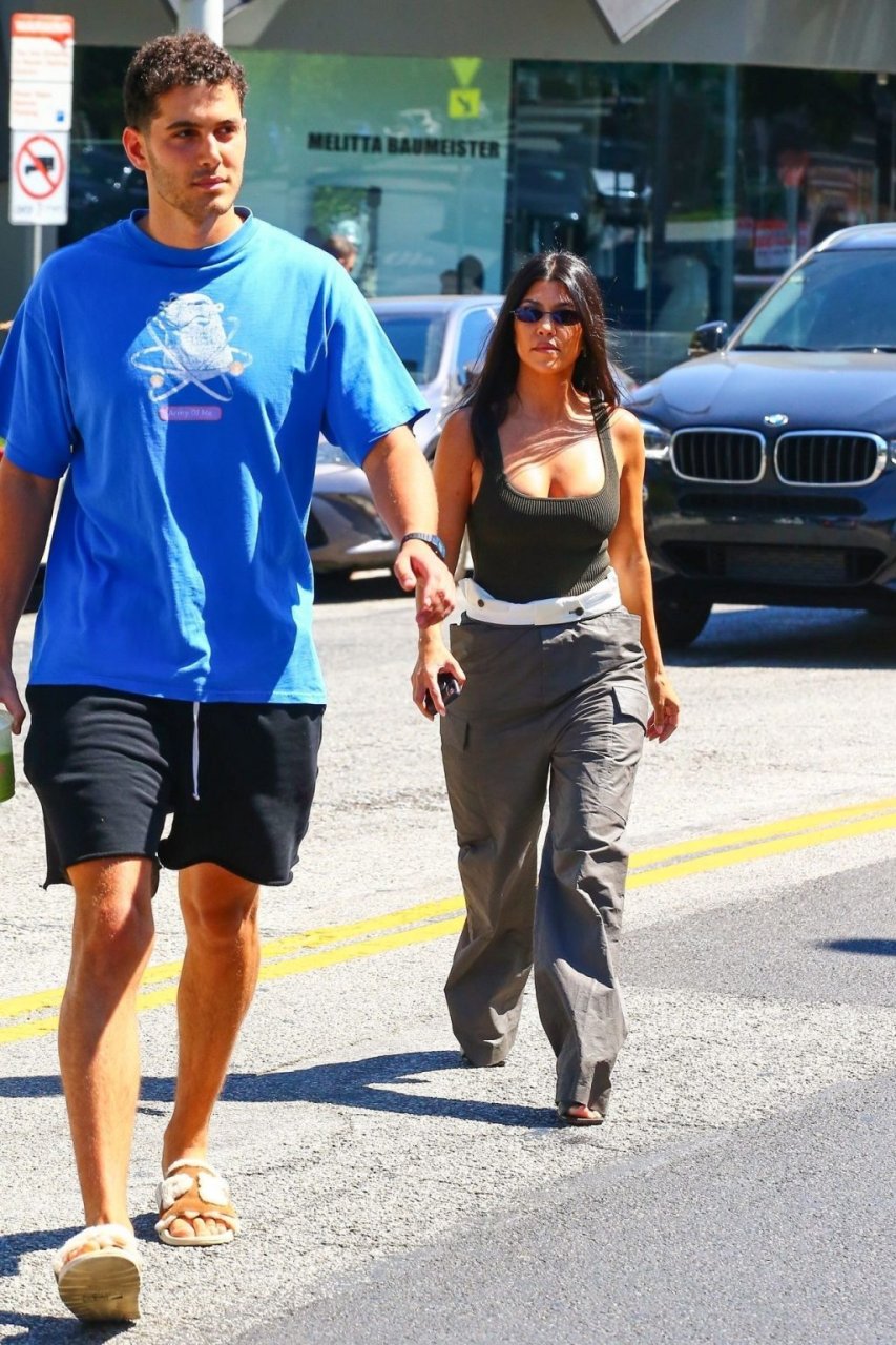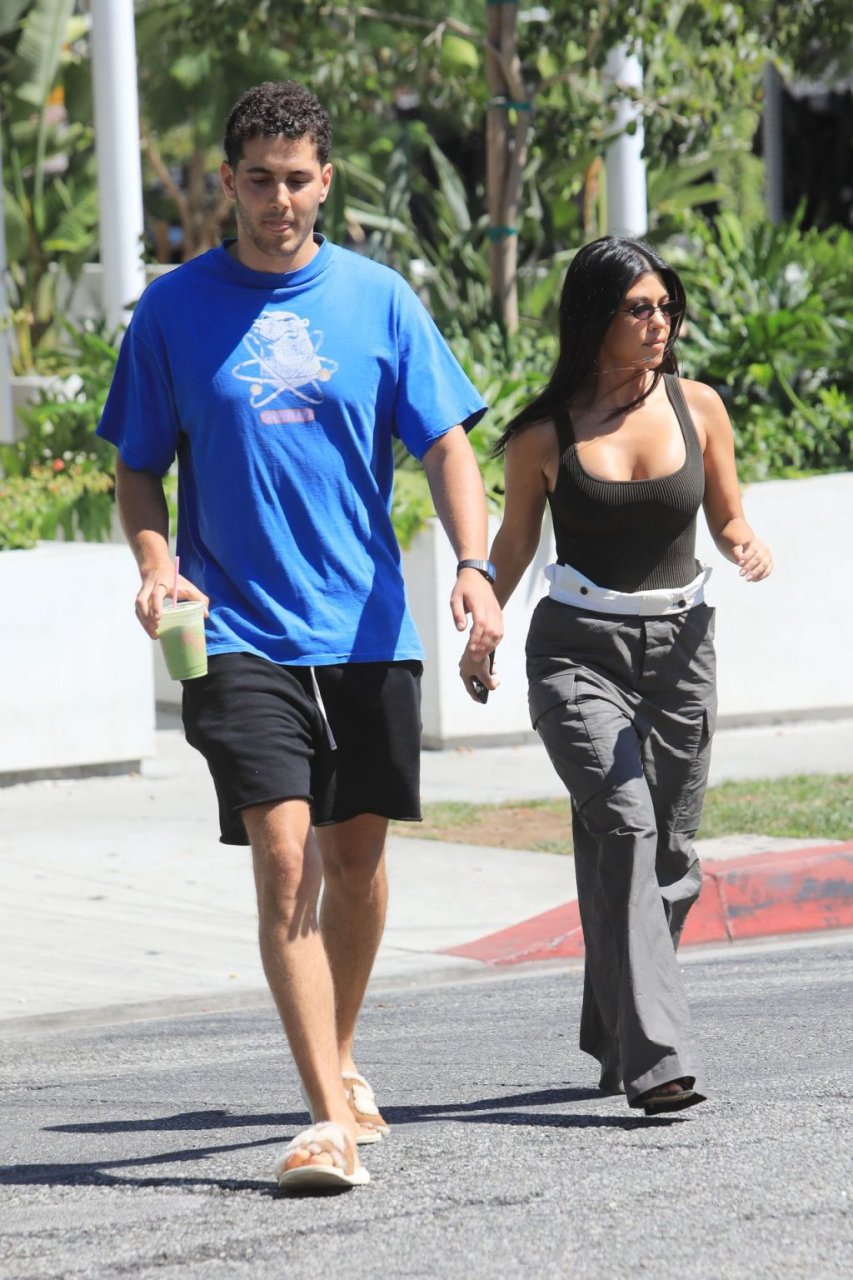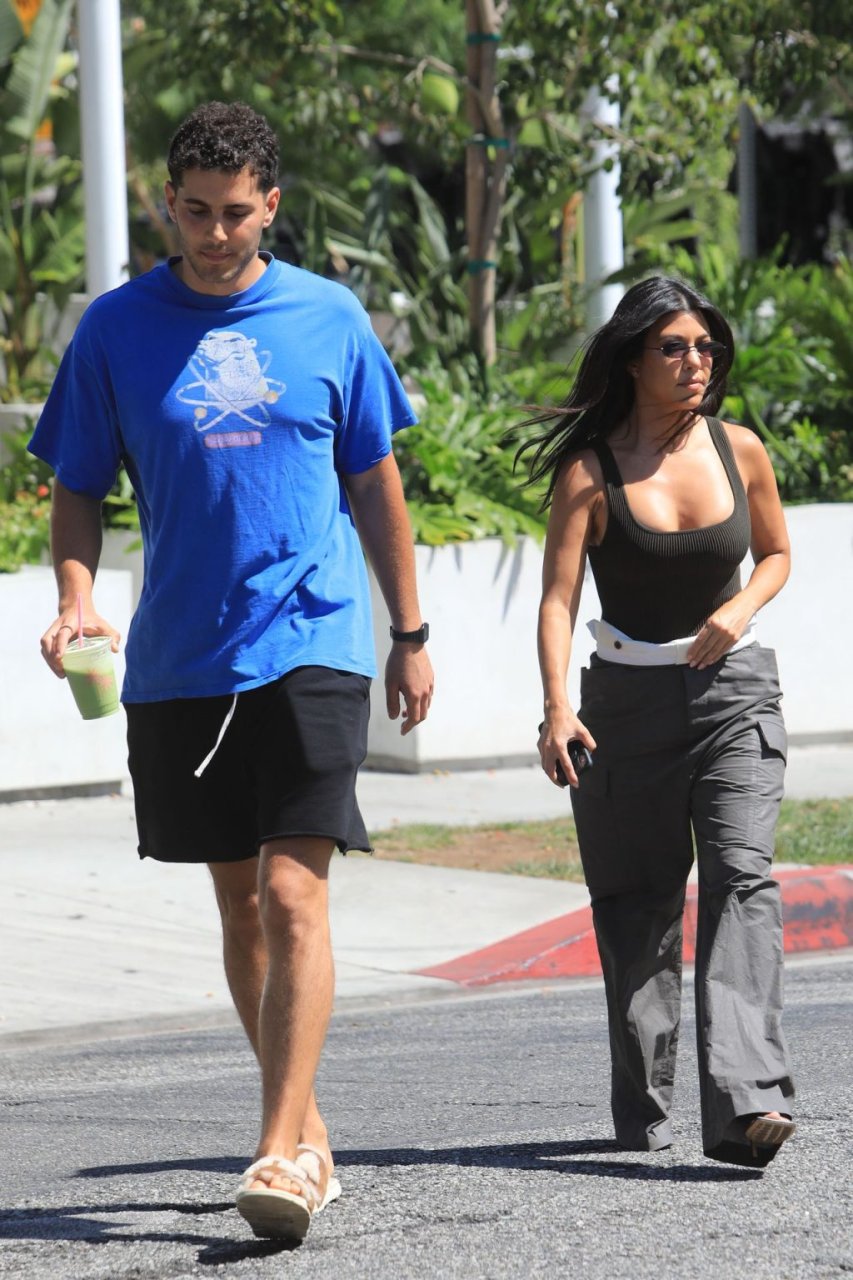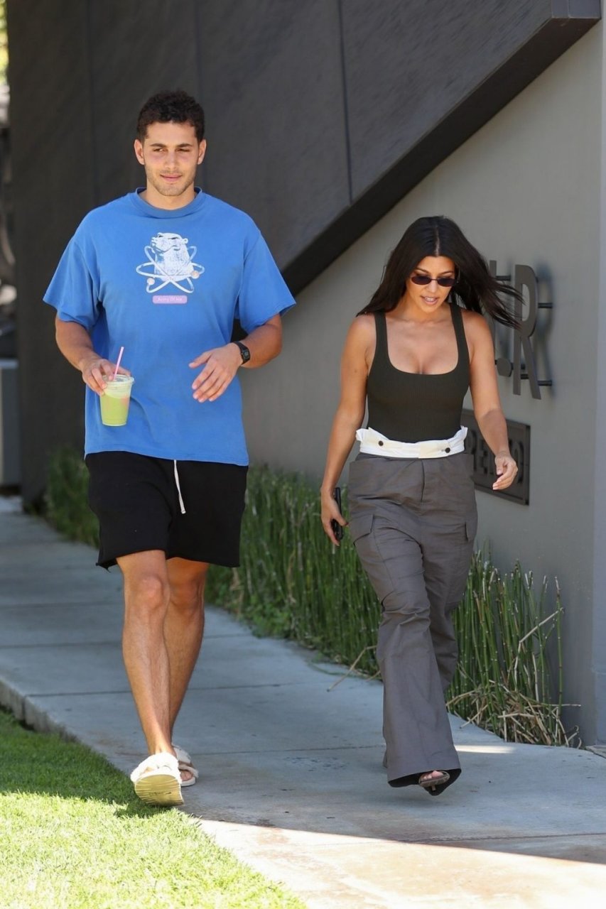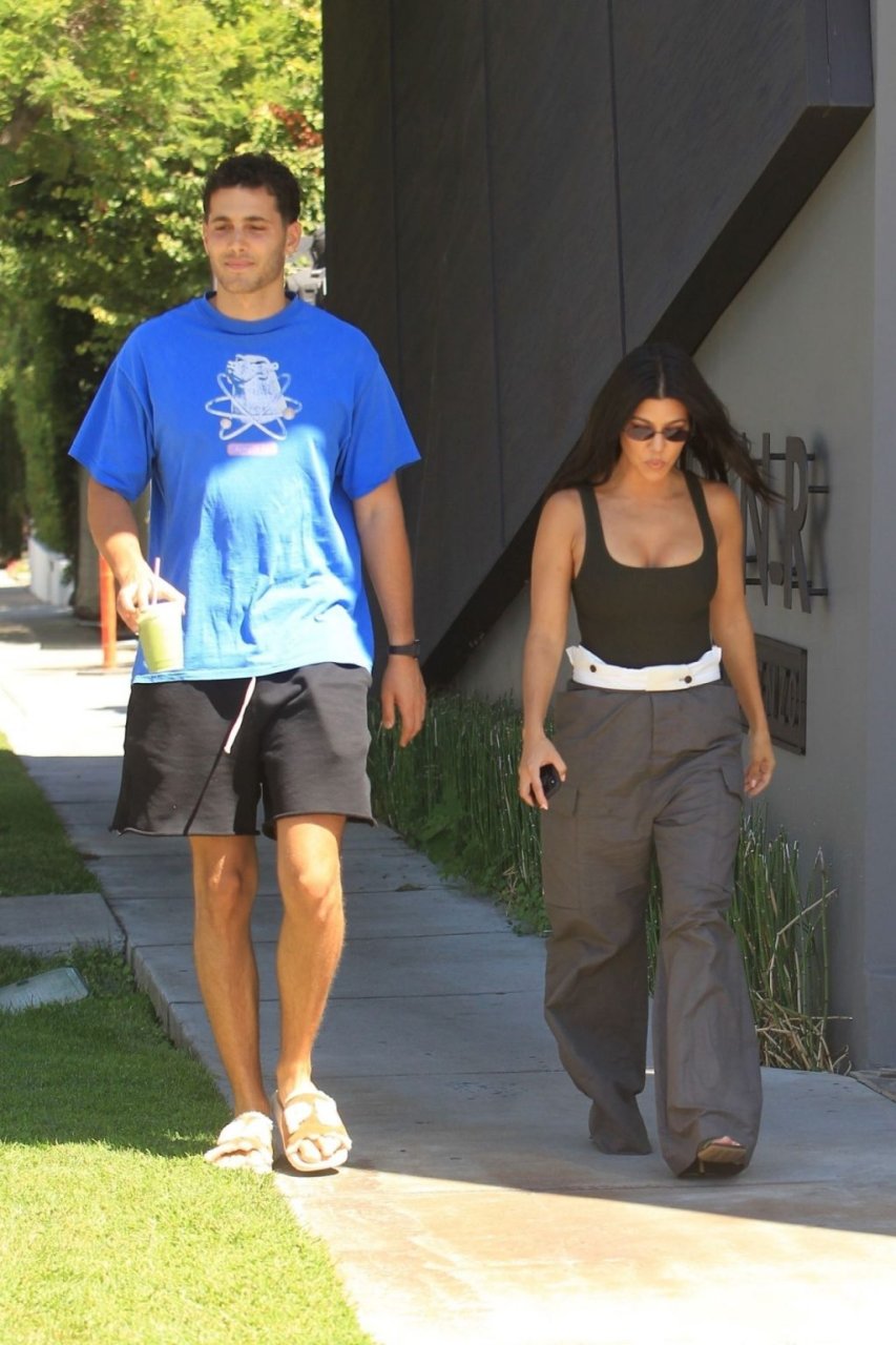 Estrella de reality TV, modelo y madre atractiva Kourtney Kardashian sale en West Hollywood para tomar Matcha con la modelo y mejor amiga Kardashian, Fai Khadra, 12/09/2019. ¡Kourtney lleva una camiseta sin mangas con escote que revela su físico voluptuoso!