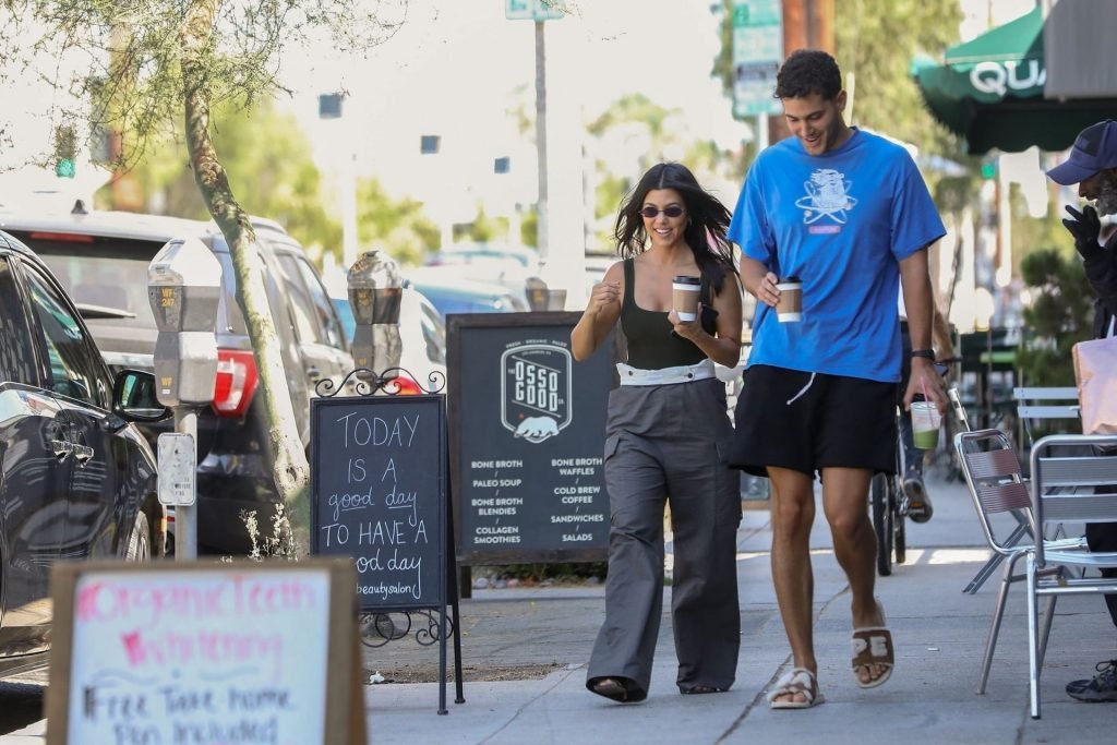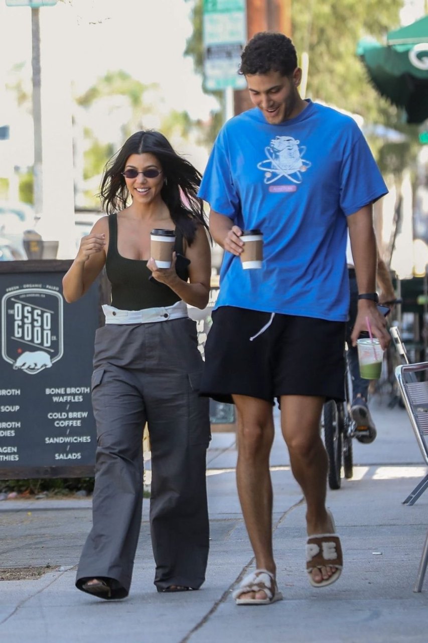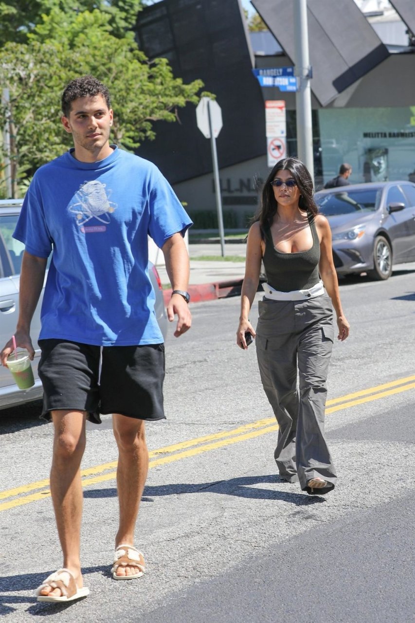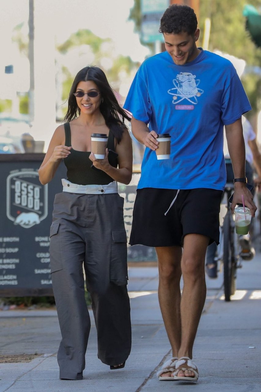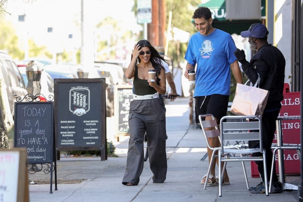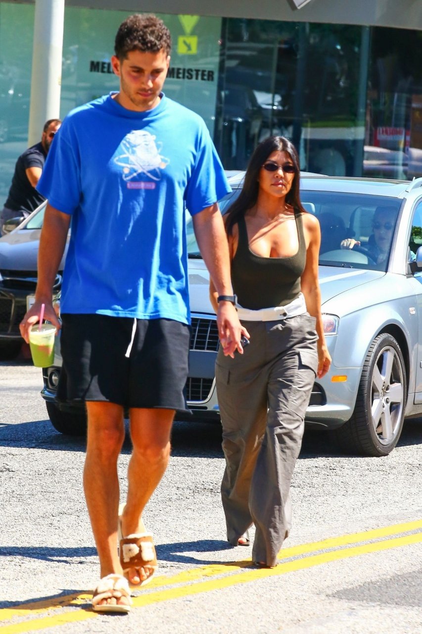 Estrella de reality TV, modelo y madre atractiva Kourtney Kardashian sale en West Hollywood para tomar Matcha con la modelo y mejor amiga Kardashian, Fai Khadra, 12/09/2019. ¡Kourtney lleva una camiseta sin mangas con escote que revela su físico voluptuoso!
