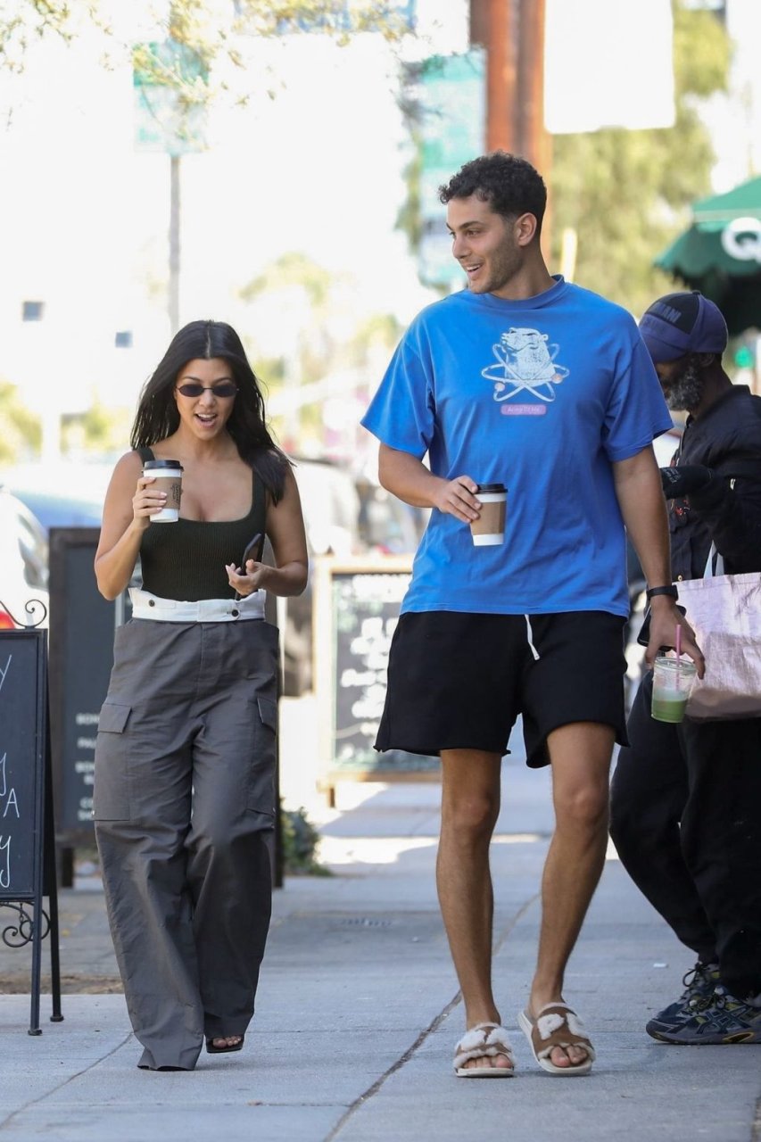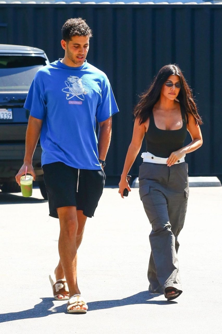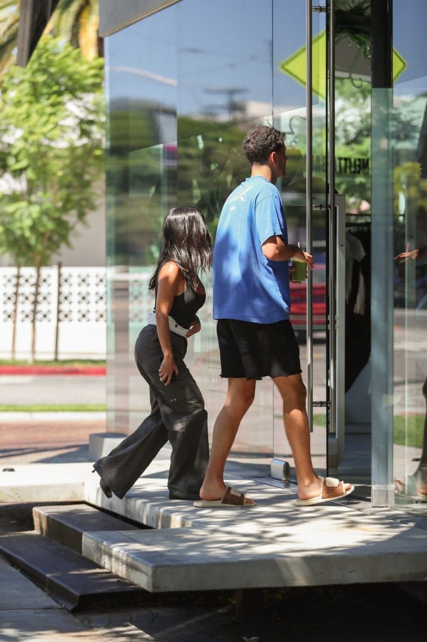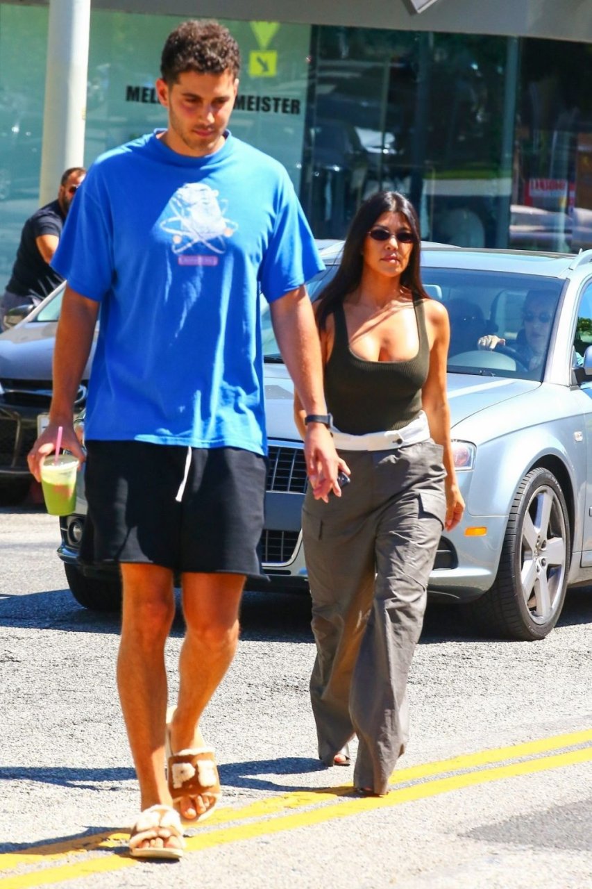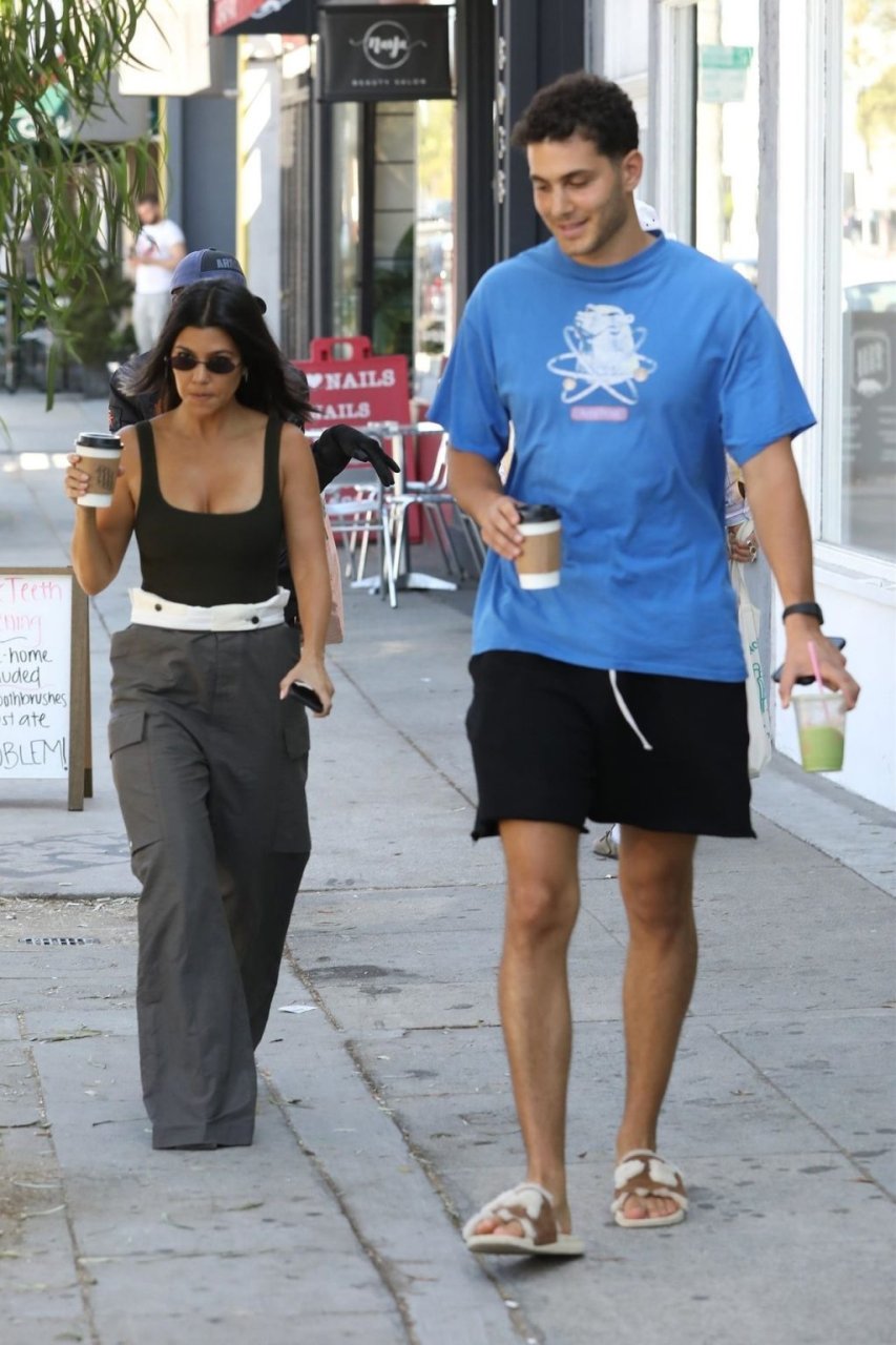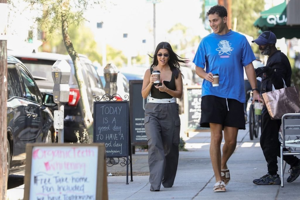 Estrella de reality TV, modelo y madre atractiva Kourtney Kardashian sale en West Hollywood para tomar Matcha con la modelo y mejor amiga Kardashian, Fai Khadra, 12/09/2019. ¡Kourtney lleva una camiseta sin mangas con escote que revela su físico voluptuoso!