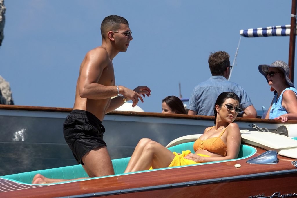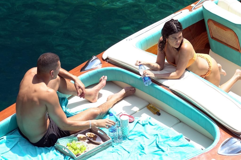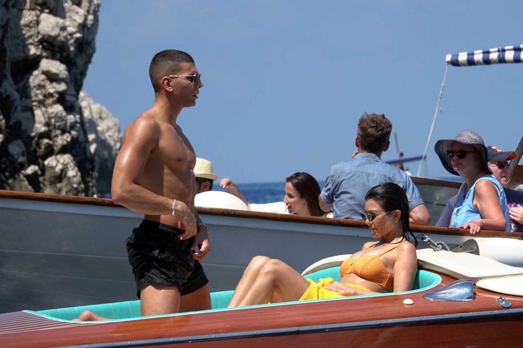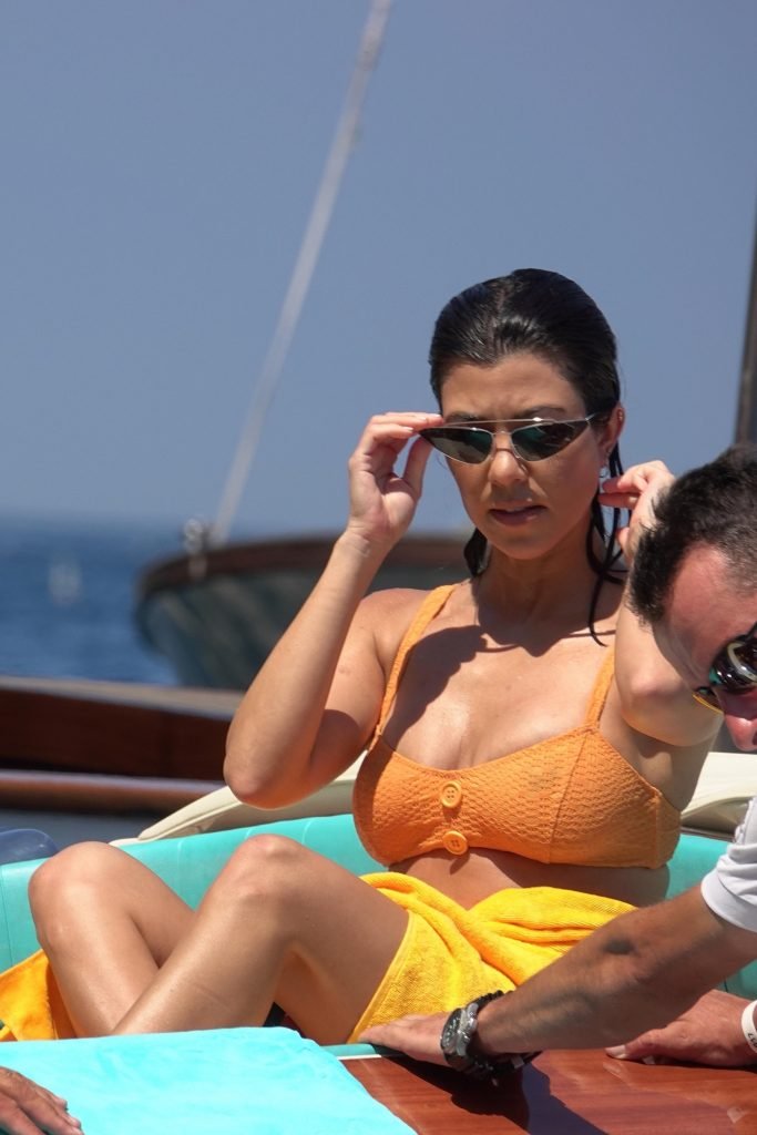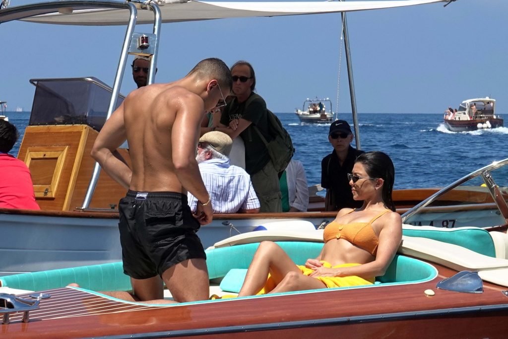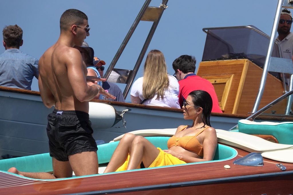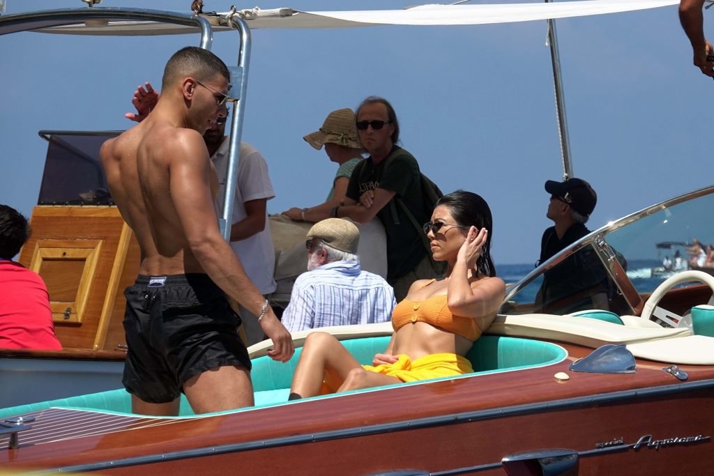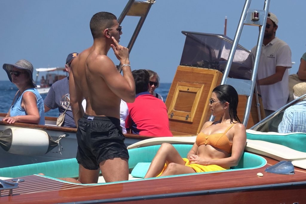 Kourtney Kardashian y su novio Younes Bendjima fueron vistos de vacaciones en Capri, 22/06/2018. La estrella de reality de 39 años disfrutó del día soleado con un bikini naranja.