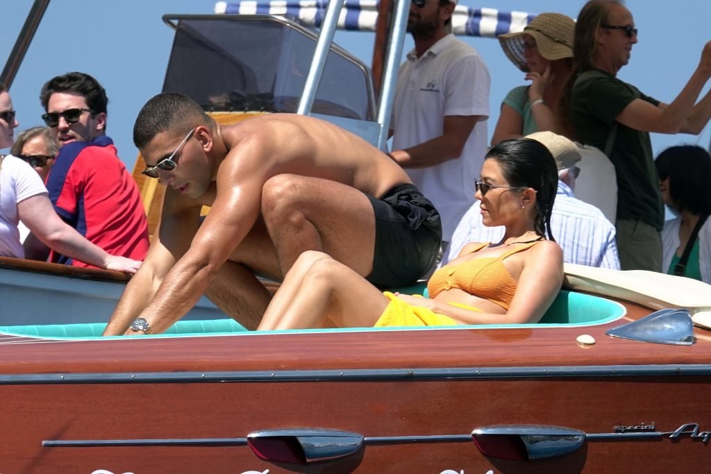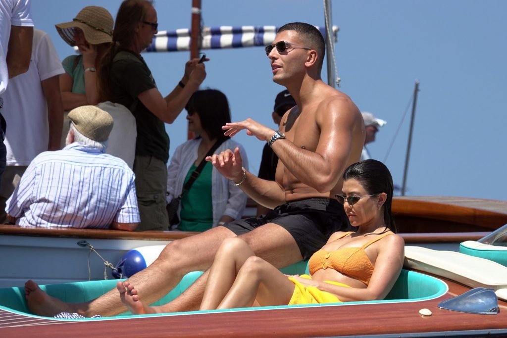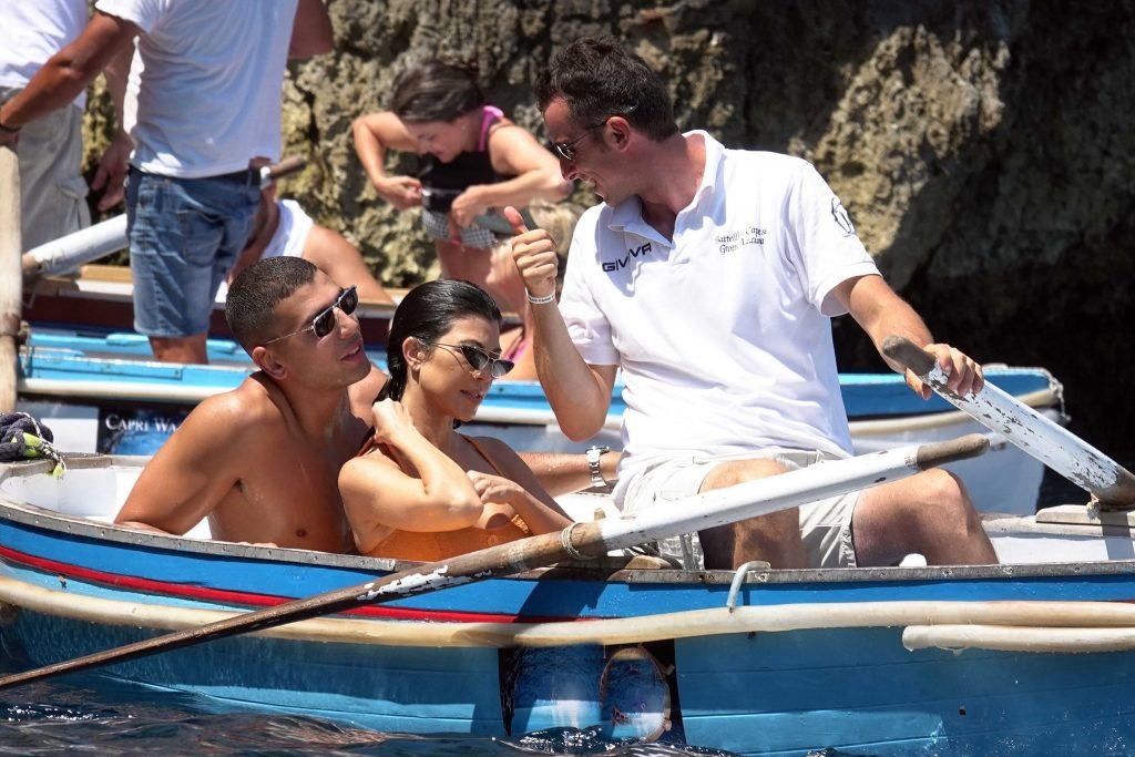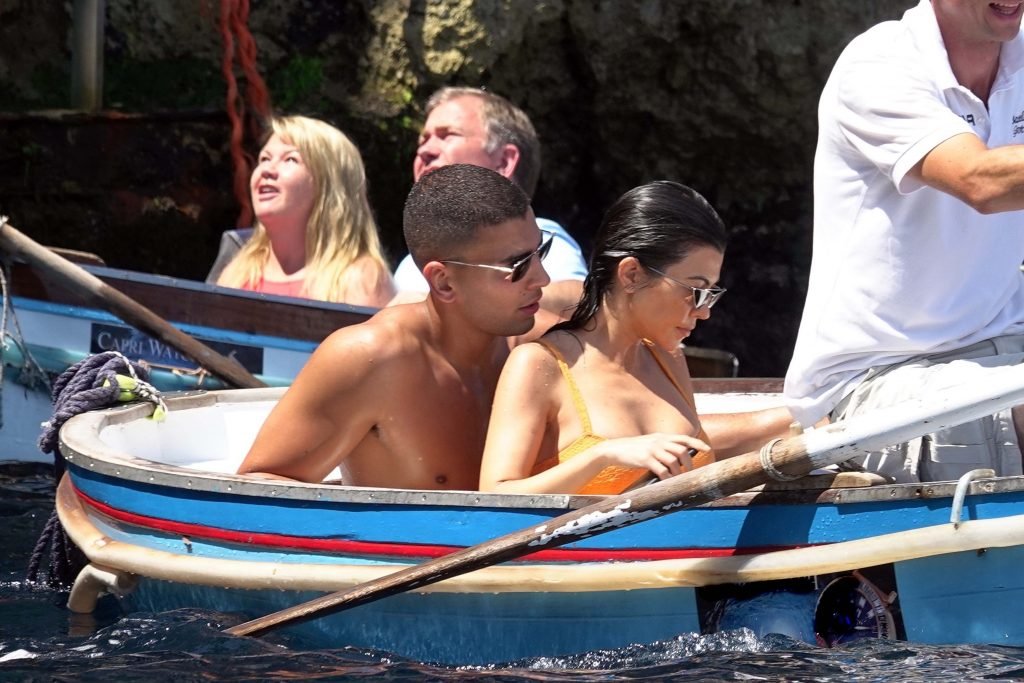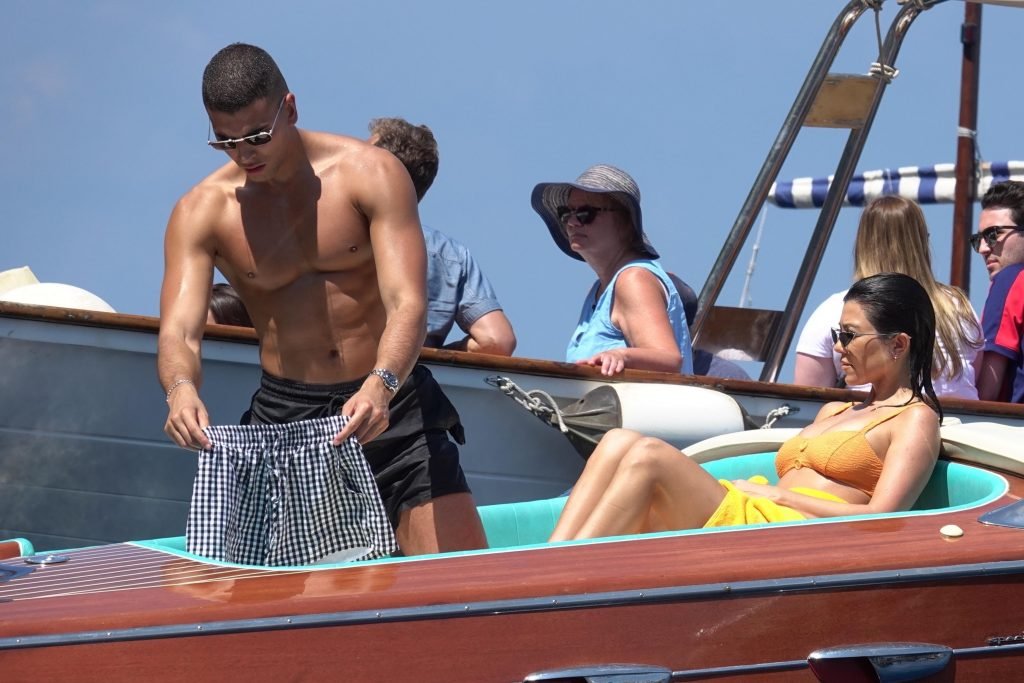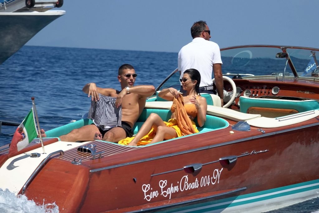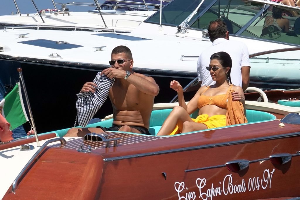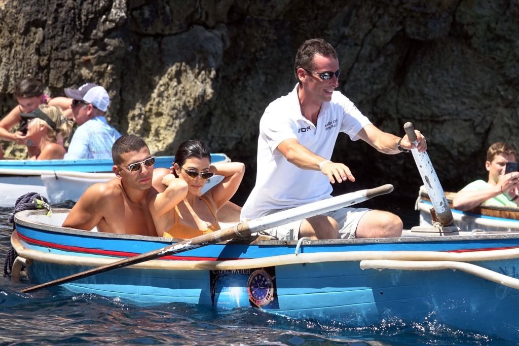 Kourtney Kardashian y su novio Younes Bendjima fueron vistos de vacaciones en Capri, 22/06/2018. La estrella de reality de 39 años disfrutó del día soleado con un bikini naranja.