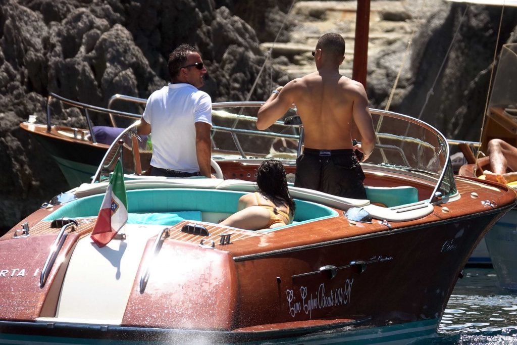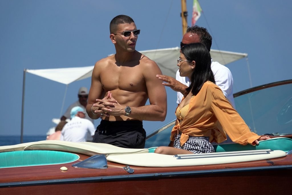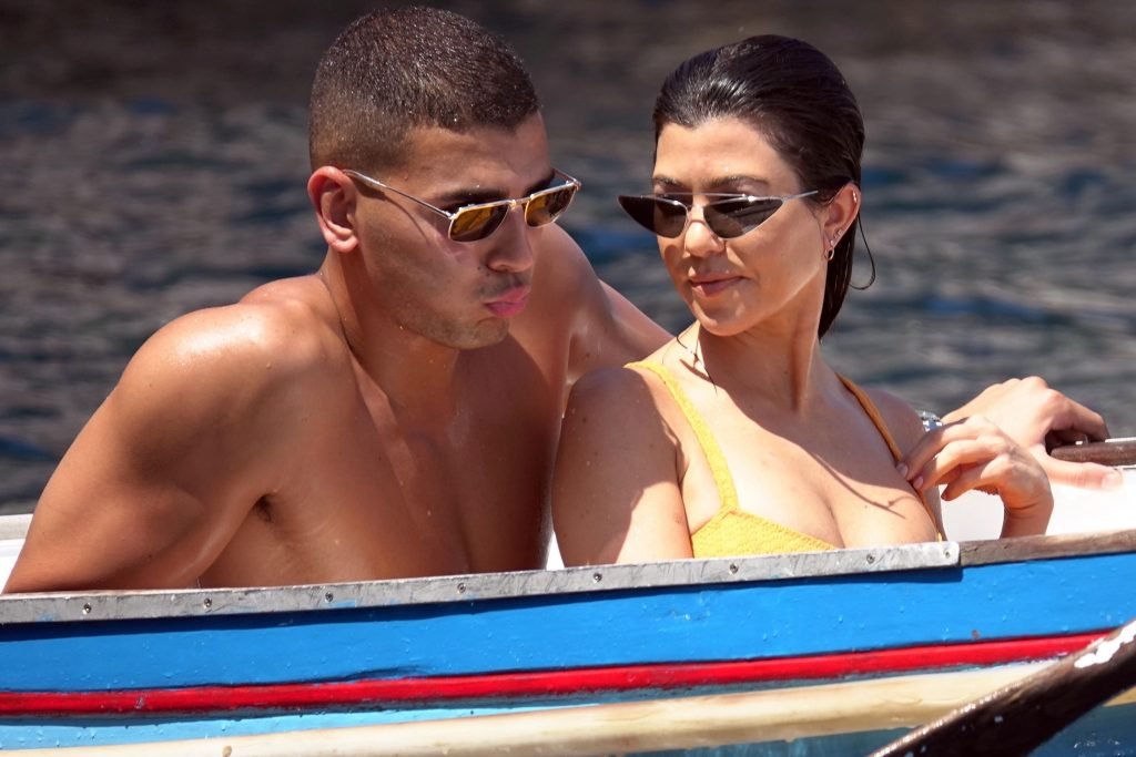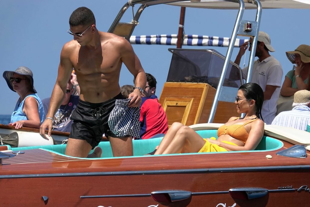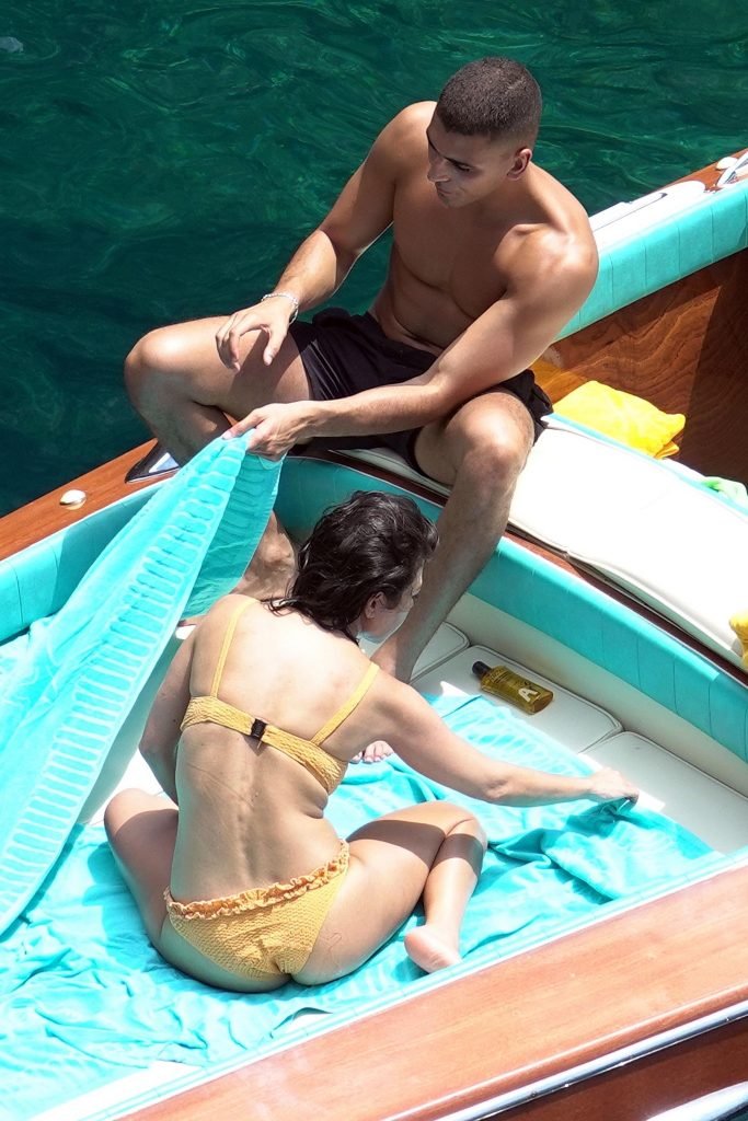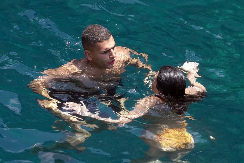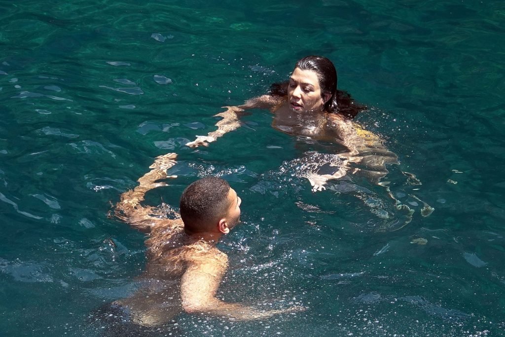 Kourtney Kardashian y su novio Younes Bendjima fueron vistos de vacaciones en Capri, 22/06/2018. La estrella de reality de 39 años disfrutó del día soleado con un bikini naranja.
