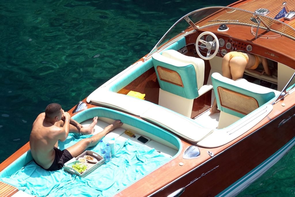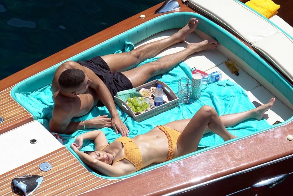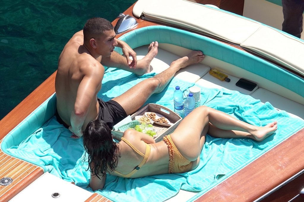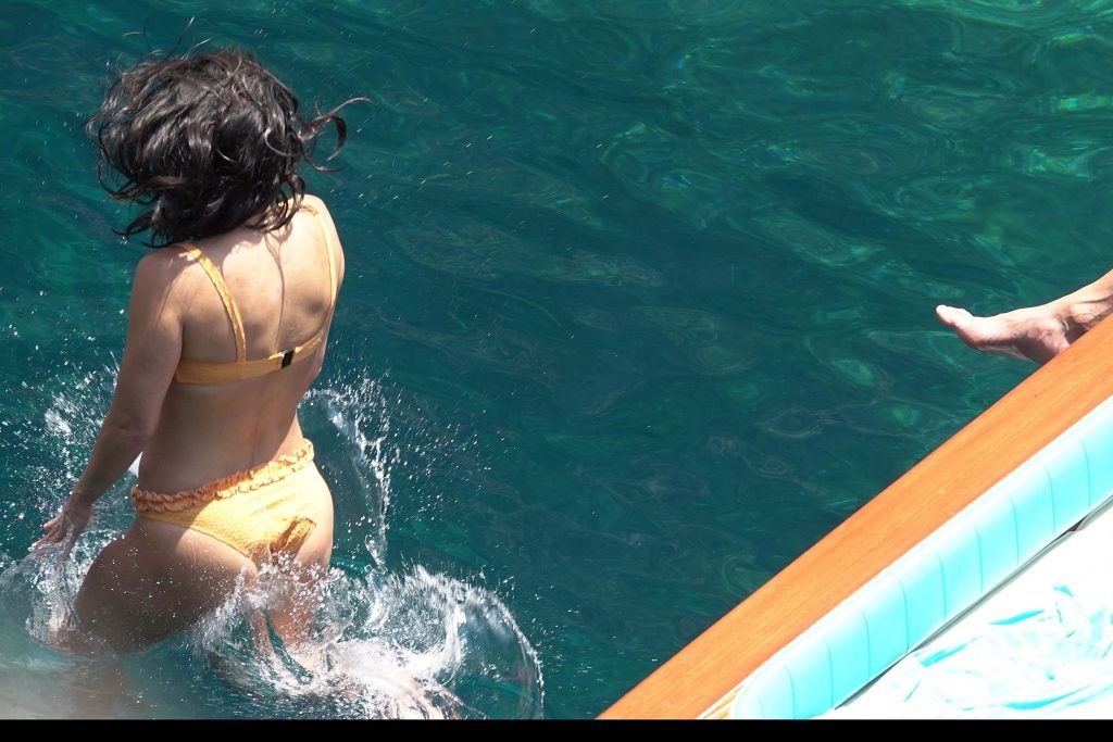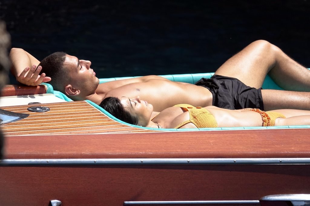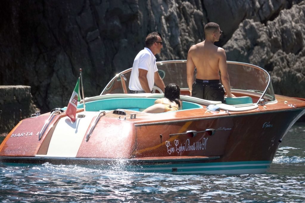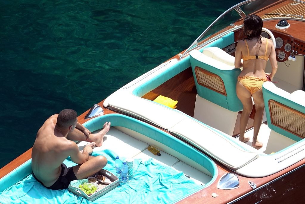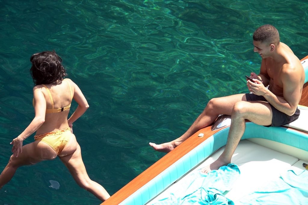 Kourtney Kardashian y su novio Younes Bendjima fueron vistos de vacaciones en Capri, 22/06/2018. La estrella de reality de 39 años disfrutó del día soleado con un bikini naranja.