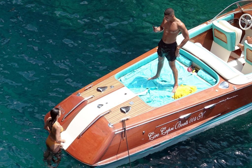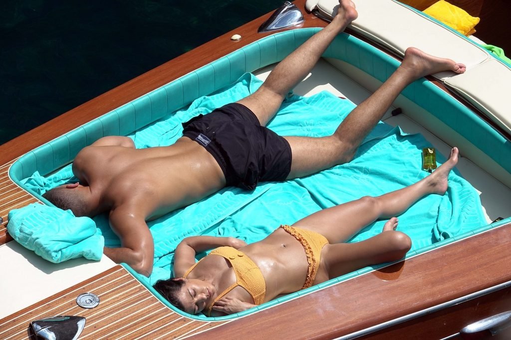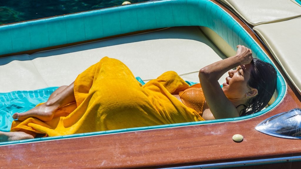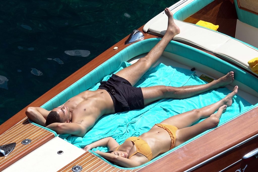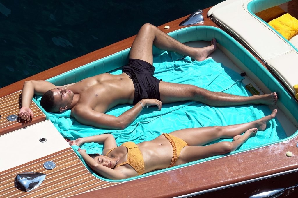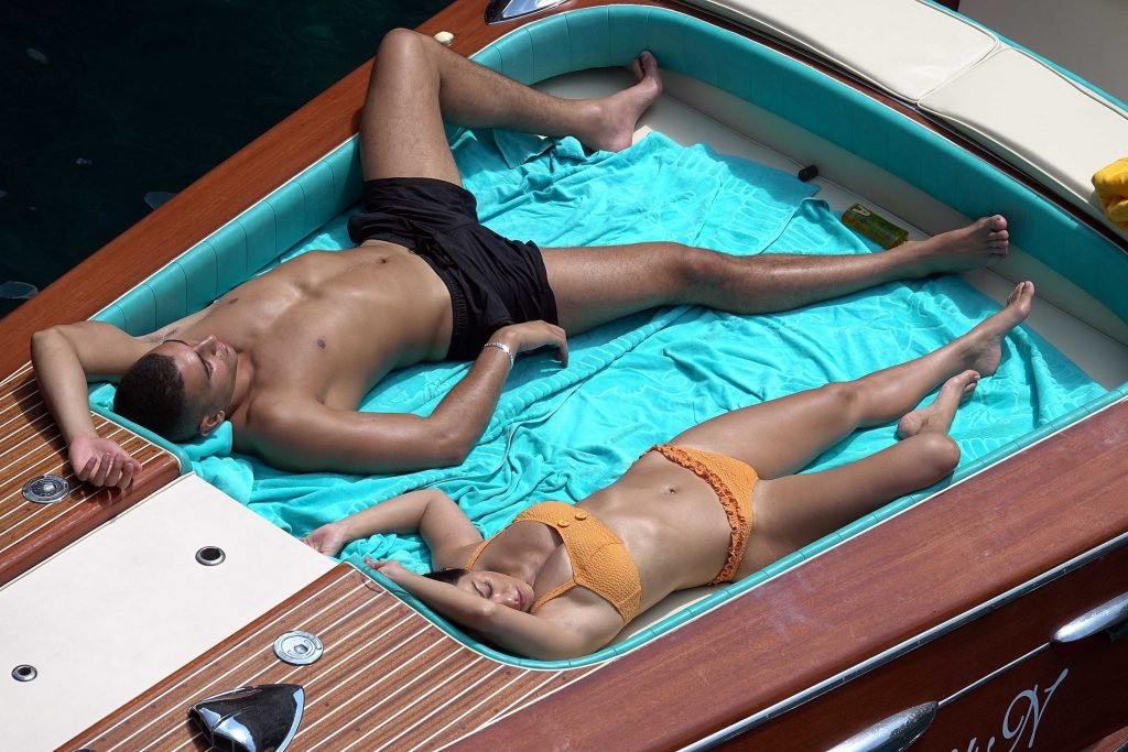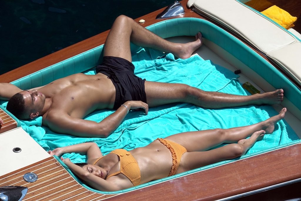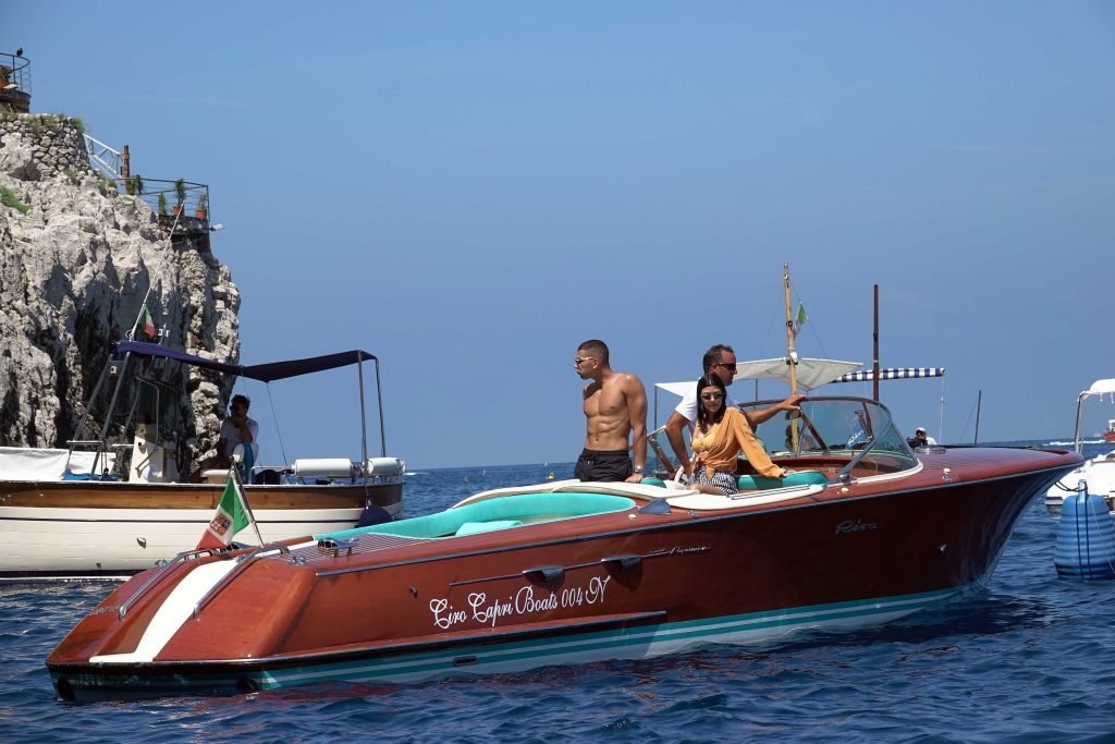Kourtney Kardashian y su novio Younes Bendjima fueron vistos de vacaciones en Capri, 22/06/2018. La estrella de reality de 39 años disfrutó del día soleado con un bikini naranja.