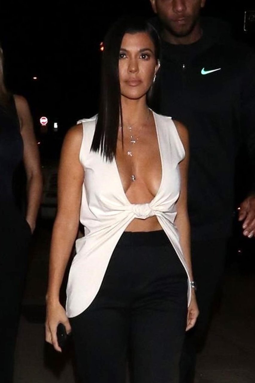 La ardiente morena Kourtney Kardashian fue vista sin sostén fuera del restaurante Craig’s en West Hollywood, 16/11/2018.