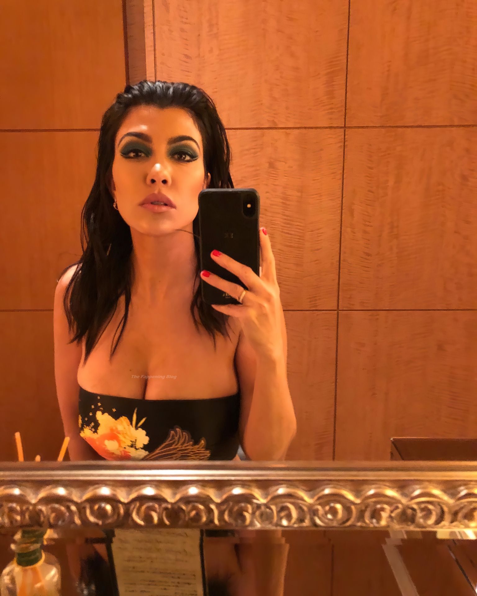 Mira la nueva colección sexy de Kourtney Kardashian, que incluye sus fotos en bikini/lencería y selfies calientes. La estrella de la televisión reality suele mostrar su profundo escote y su trasero redondo.