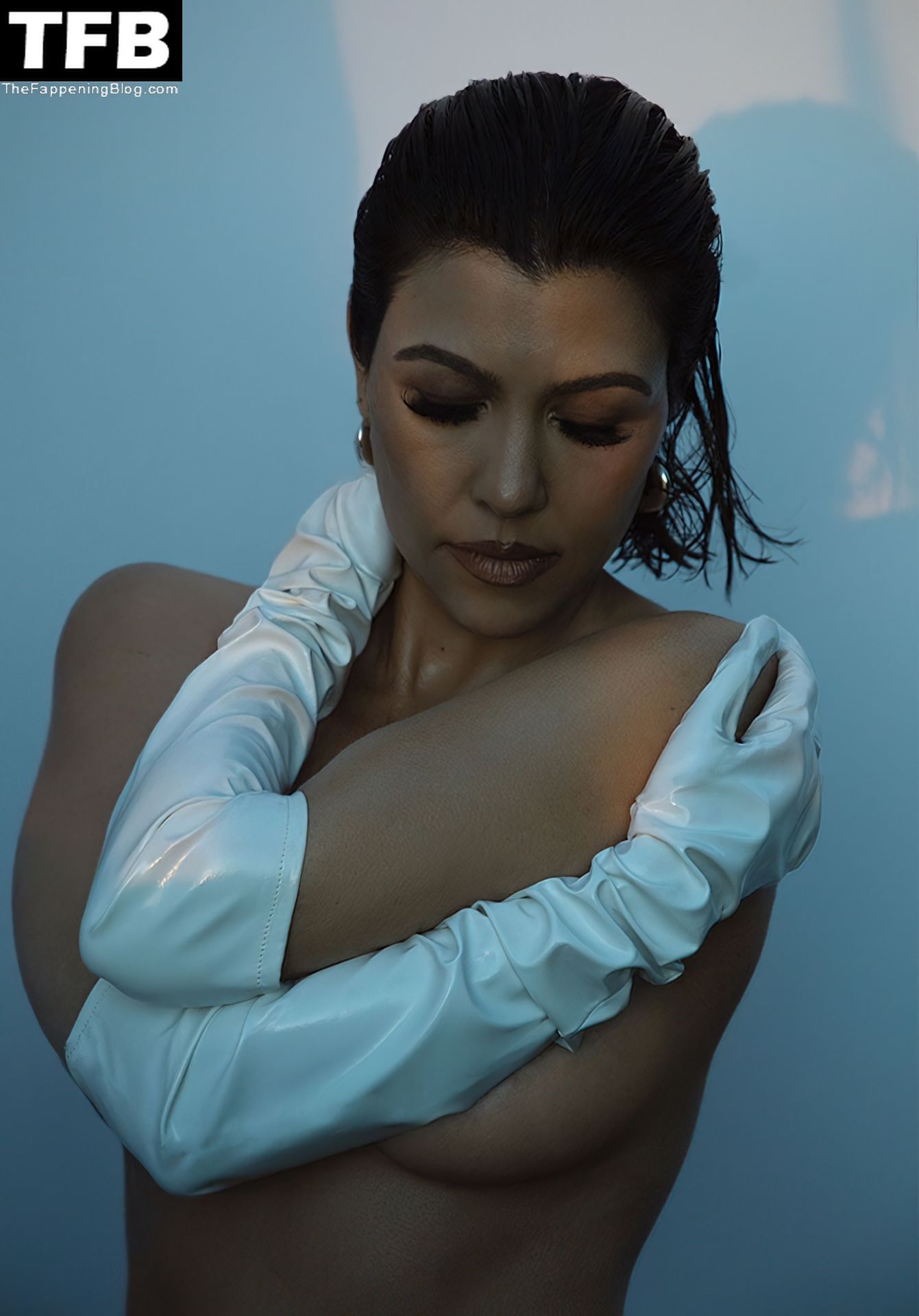 La estrella de la televisión de realidad Kourtney Kardashian exhibe sus pechos sexys en una sesión de fotos realizada por Daniella Midenge para la revista Bustle (2022).