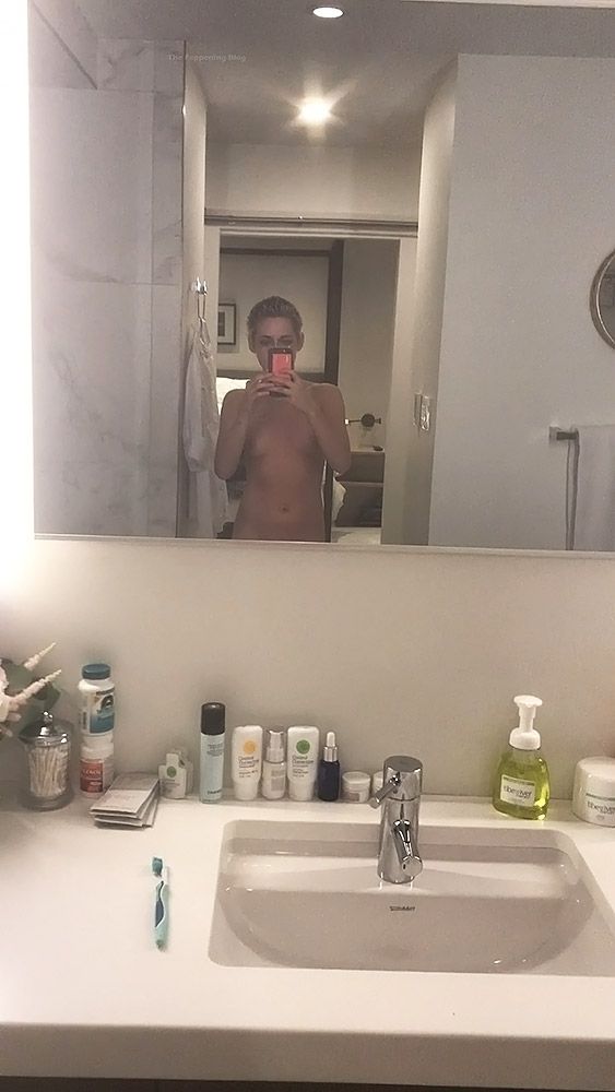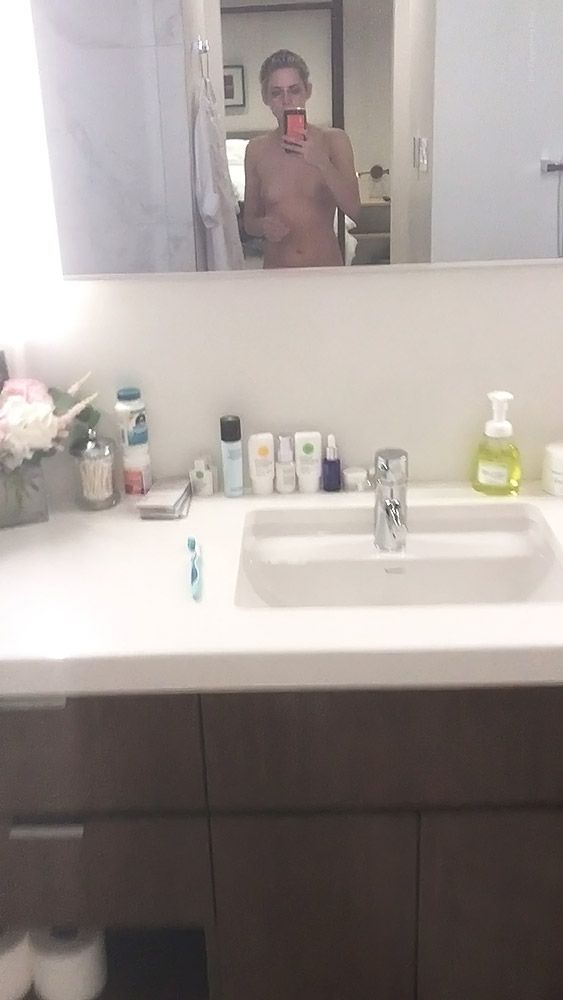 Here are Kristen Stewart’s nude leaked uncensored selfie photos leaked in June 2020. The actress showed her small tits and shaved pussy in front of the mirror!