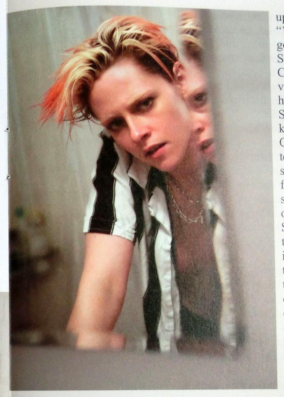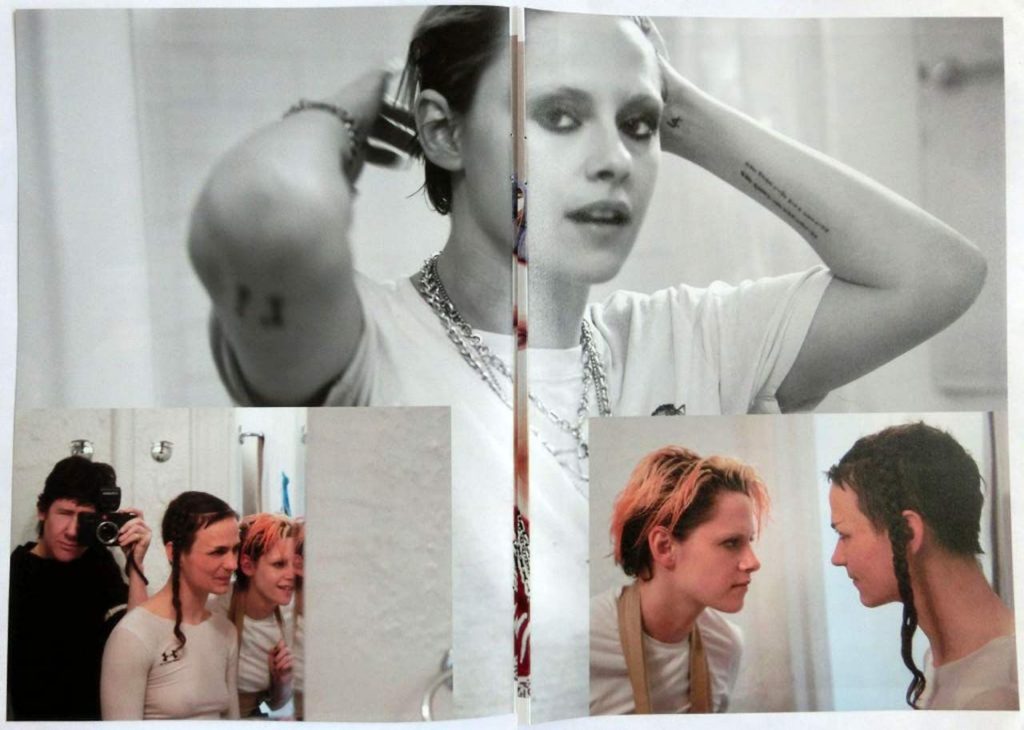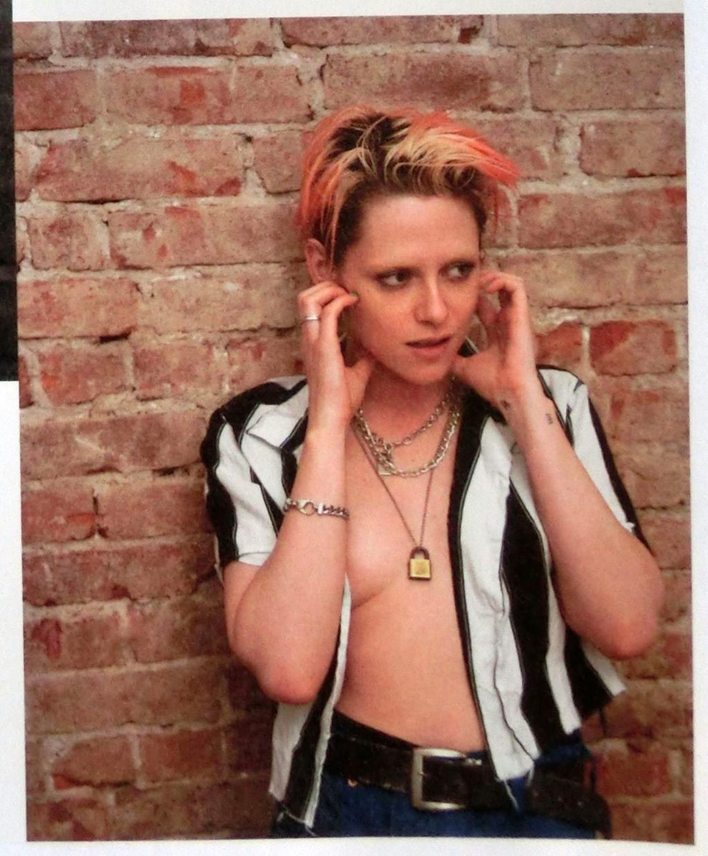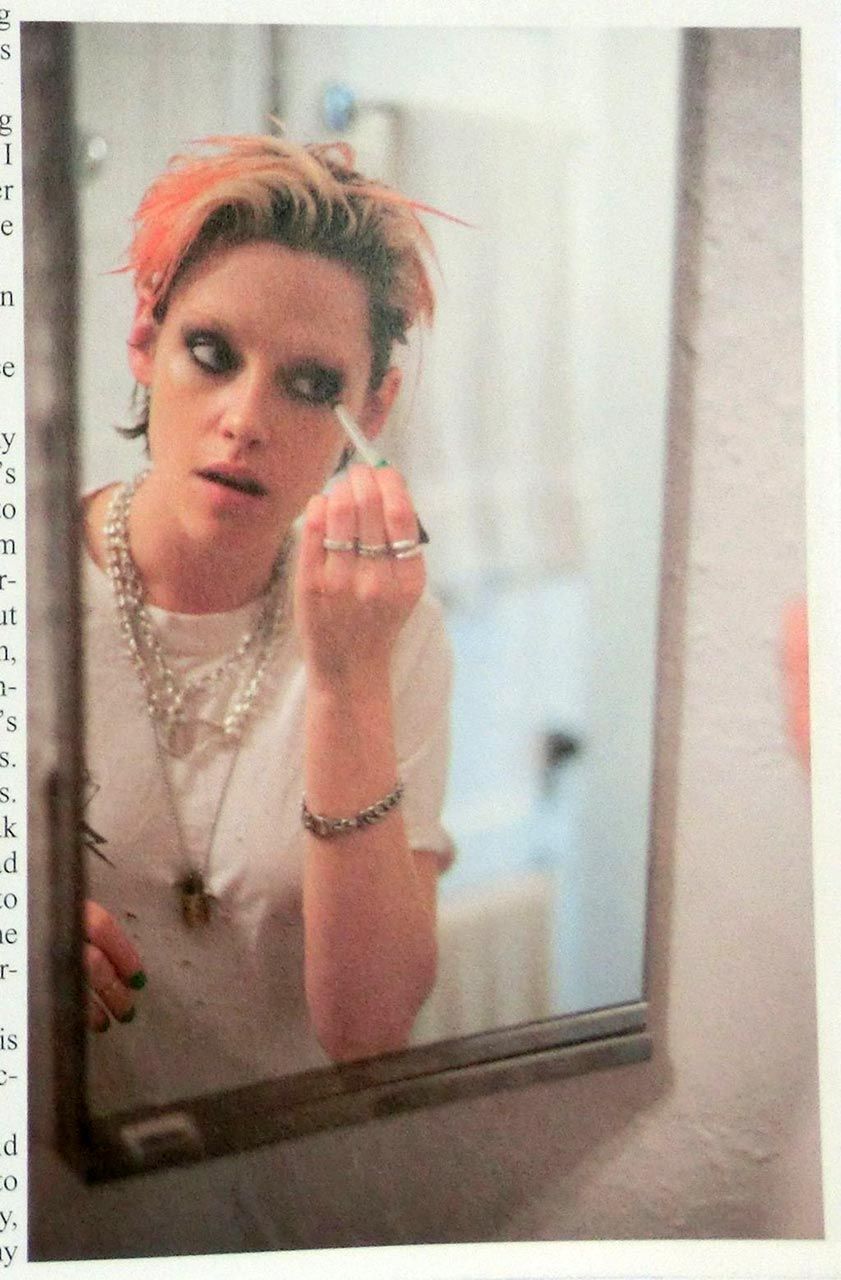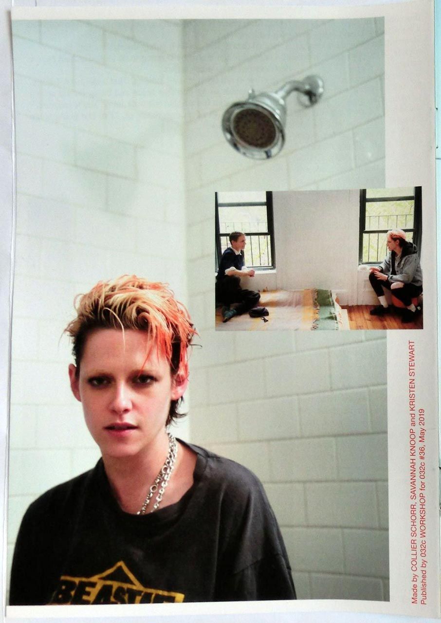 Famous lesbian actress Kristen Stewart’s naked pics are here! This careless hottie did a photo shooting by Collsea and showed her small puffy boobs once again! She posed topless in the bathroom; she wore jeans and a denim jacket, then showed underboob in the white top crop. Her hair was dyed in pink and blonde; why a woman?