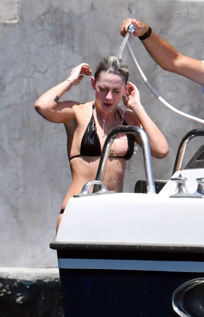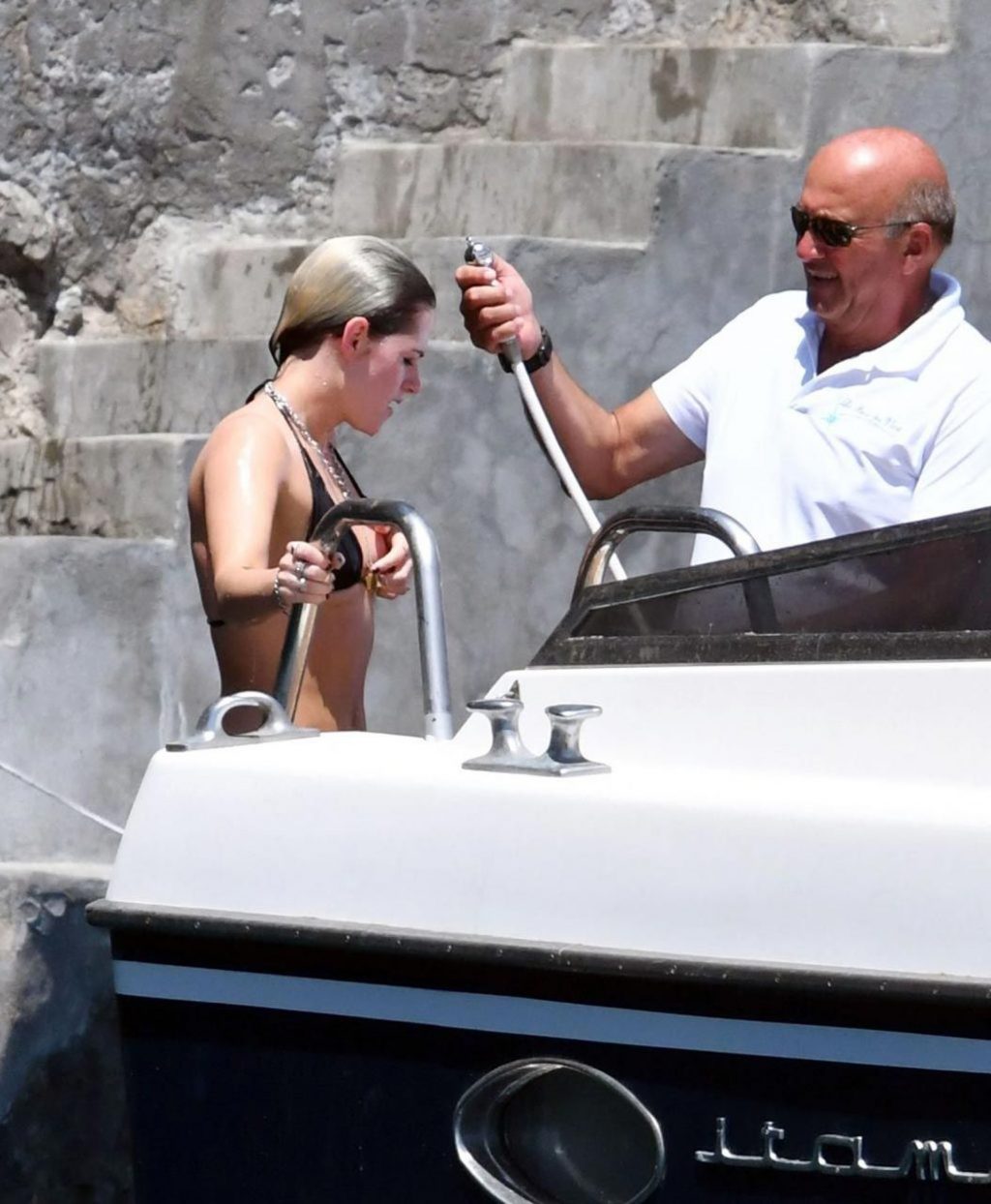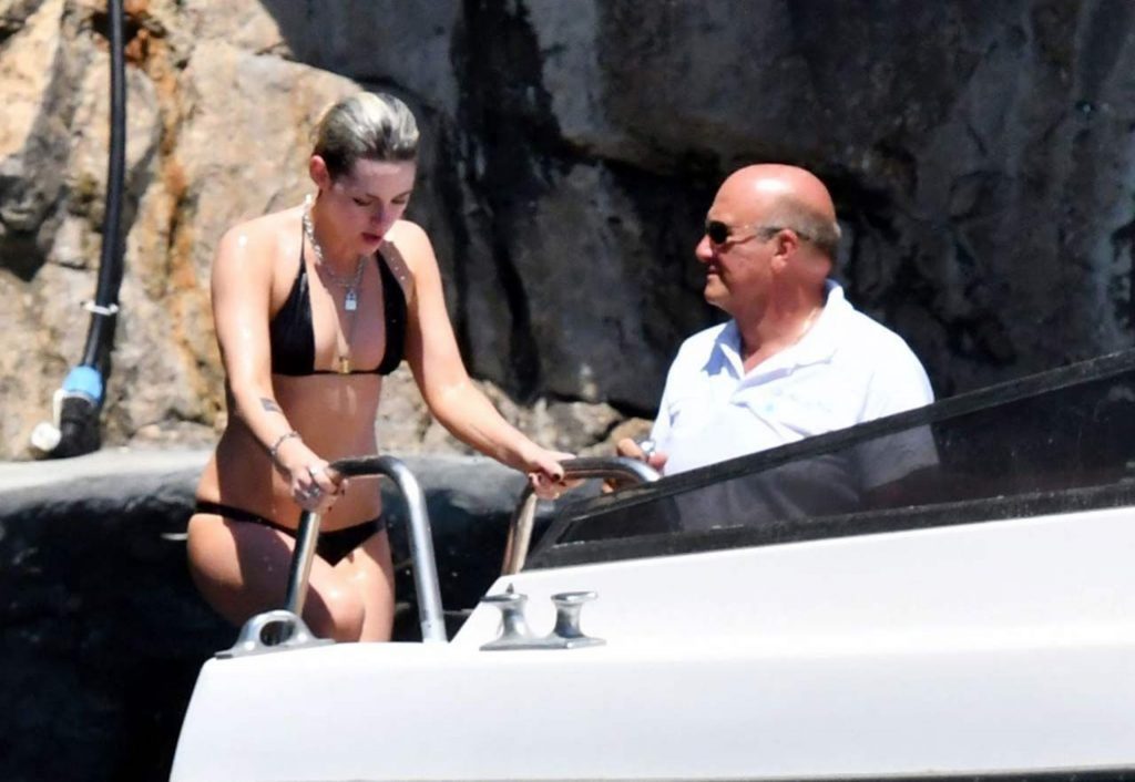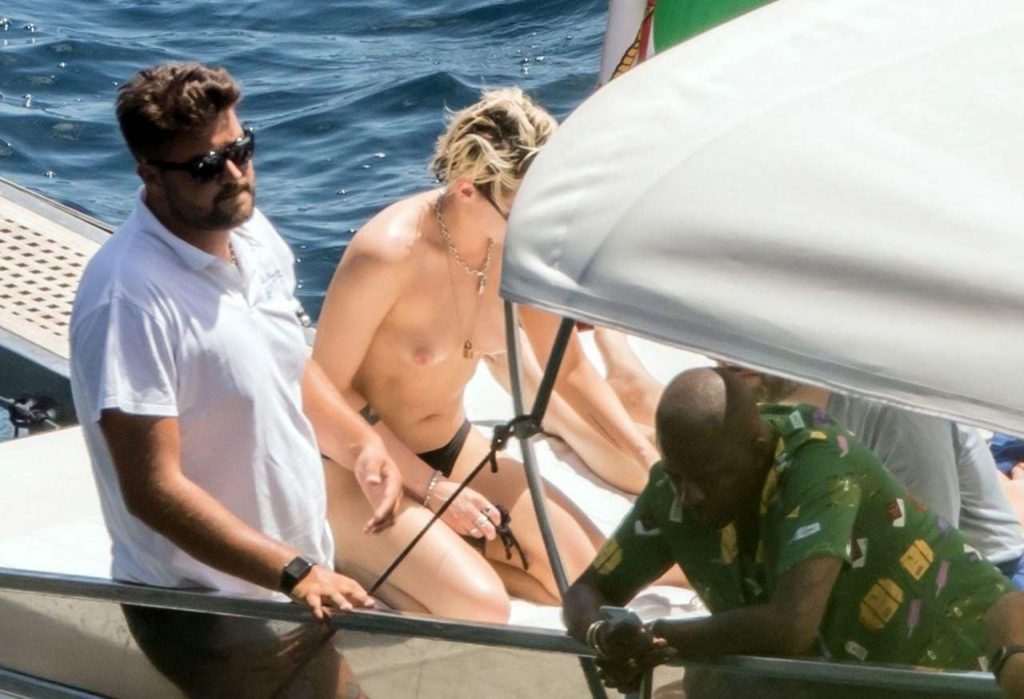 Check out new paparazzi pics of actress Kristen Stewart topless while she was on the yacht with her girlfriend Stella Maxwell and several other friends! See the complete collection of Stella Maxwell’s nudes here on The Fappening Blog! The crew was sunbathing, jumping, talking, and enjoying the sunny day at the Amalfi Coast, and our dear lesbian leaked celebrity showed her small tits when she took off her skimpy black bikini!
