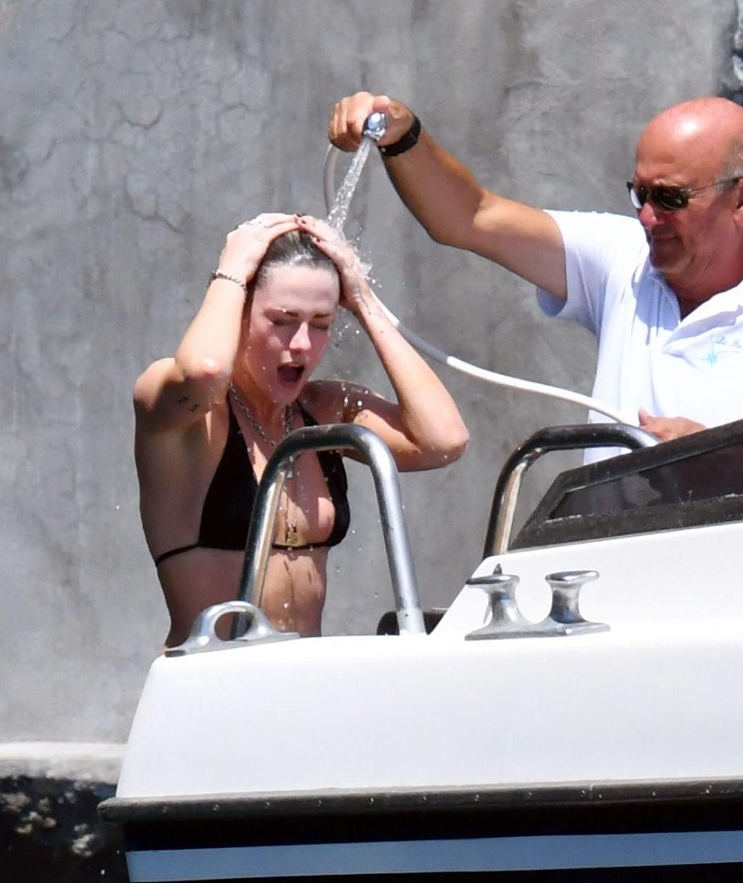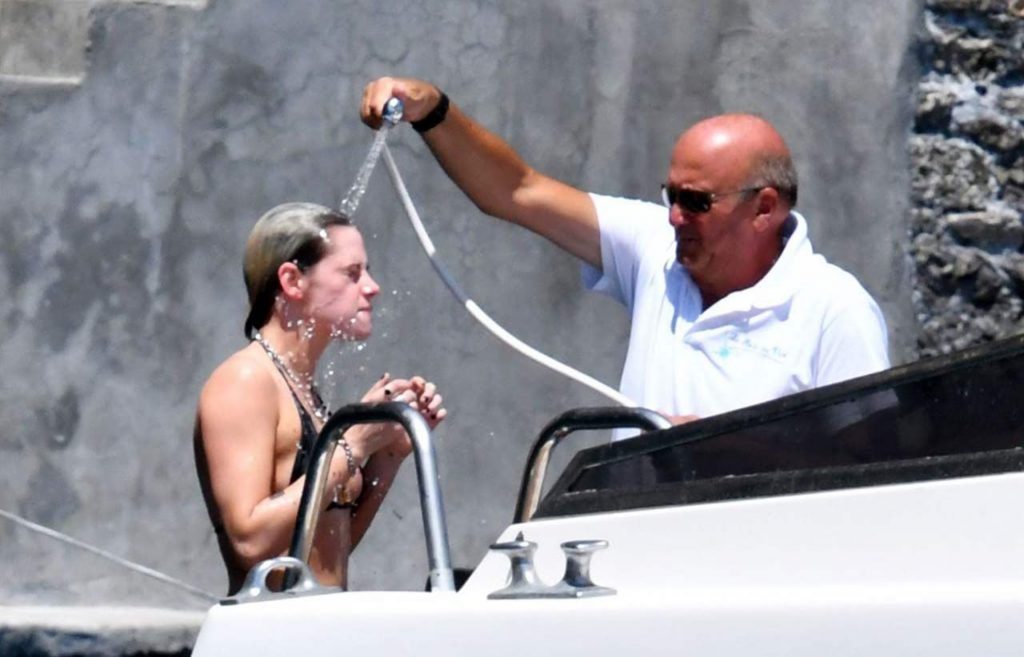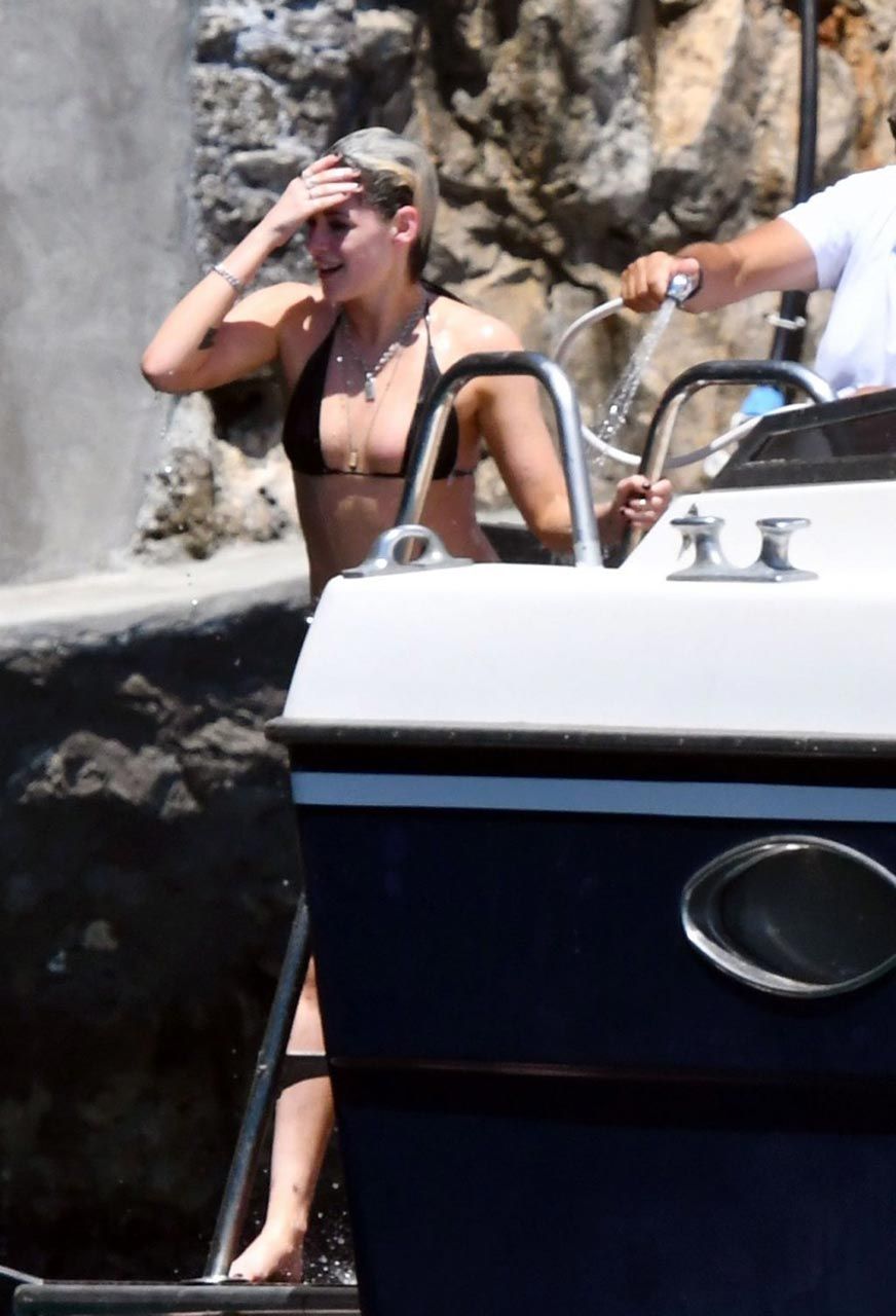 Check out new paparazzi pics of actress Kristen Stewart topless while she was on the yacht with her girlfriend Stella Maxwell and several other friends! See the complete collection of Stella Maxwell’s nudes here on The Fappening Blog! The crew was sunbathing, jumping, talking, and enjoying the sunny day at the Amalfi Coast, and our dear lesbian leaked celebrity showed her small tits when she took off her skimpy black bikini!