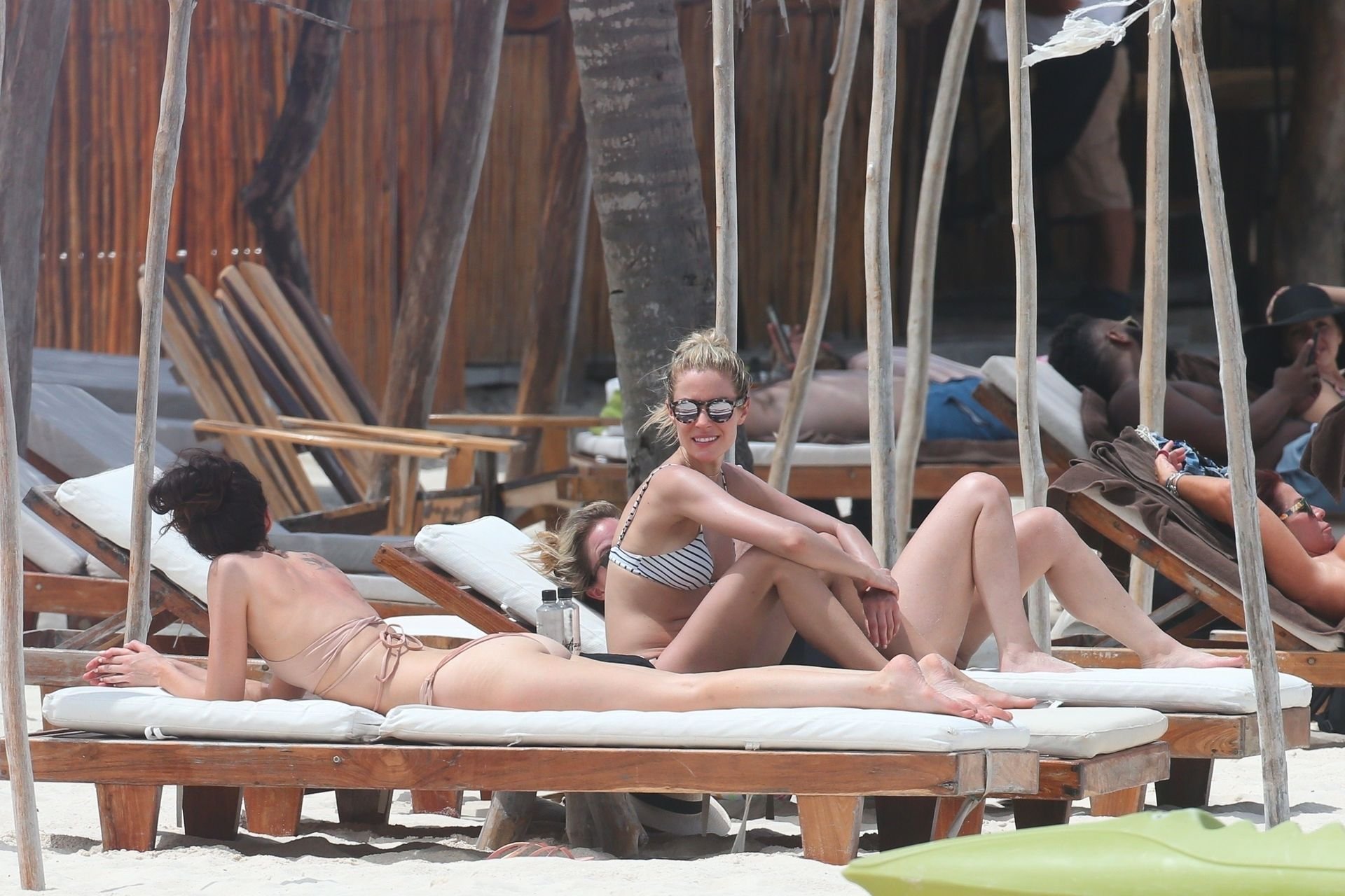 Hoy tenemos fotos en bikini del año pasado de Kristin Cavallari mientras disfrutaba de unas vacaciones de chicas con amigas en Tulum, 17/05/2018. La estrella se empapó del sol y jugó en las olas, mostrando su figura delgada en un pequeño bikini a rayas.