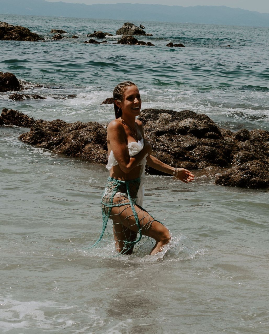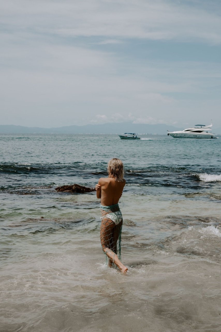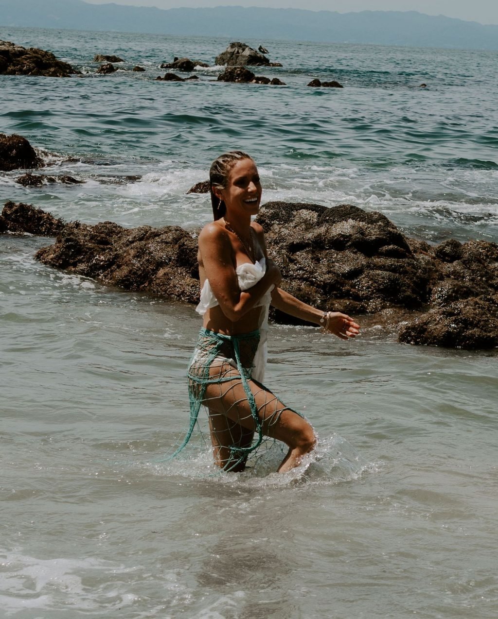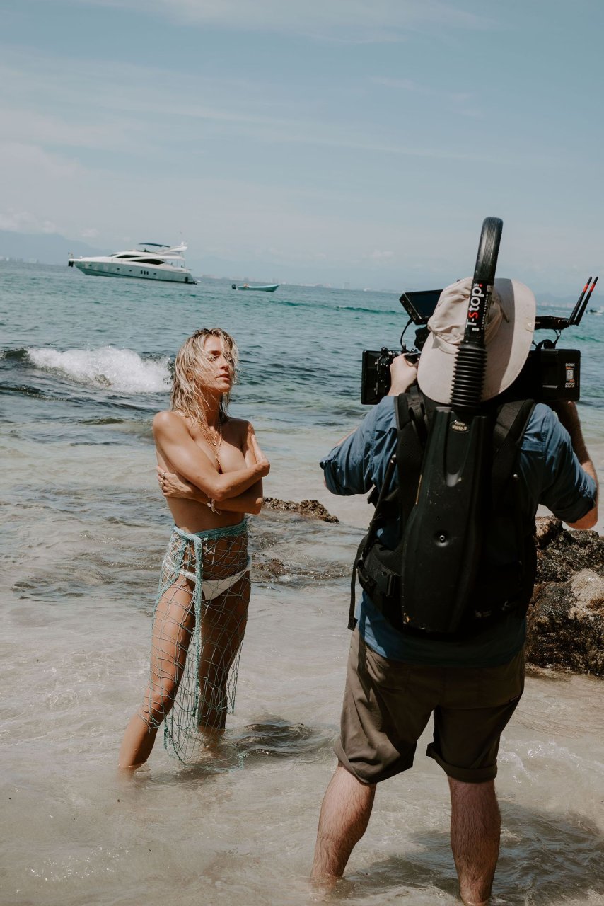 Kristin Cavallari fue vista topless (cubierta) mientras filmaba la campaña de Uncommon James en México, 15/08/2019.