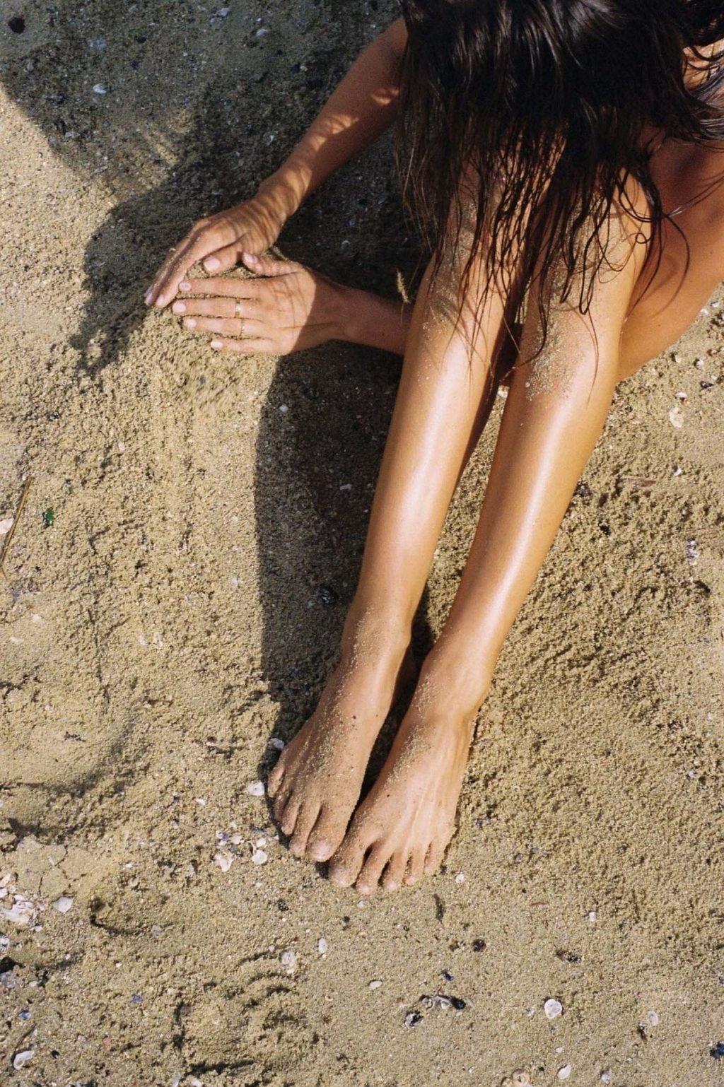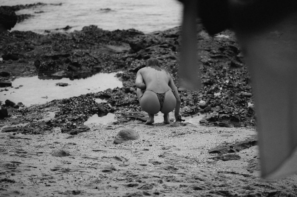La modelo Kristina Mendonca posa sin camiseta y muestra su diminuto bikini en la playa de Sídney, Australia, en una sesión de fotos realizada por Jonny Seelenmeyer (2020).