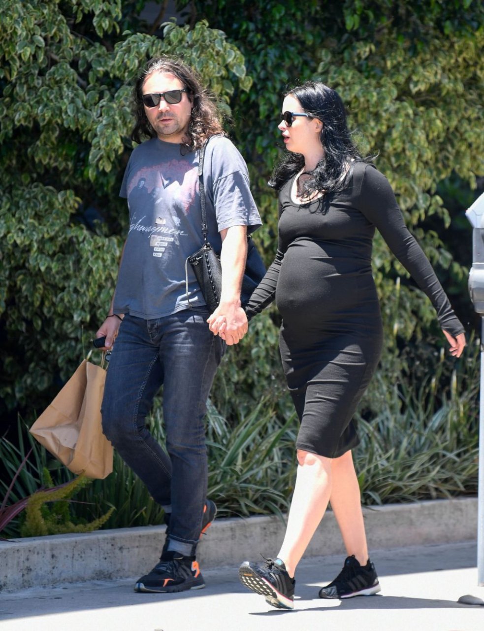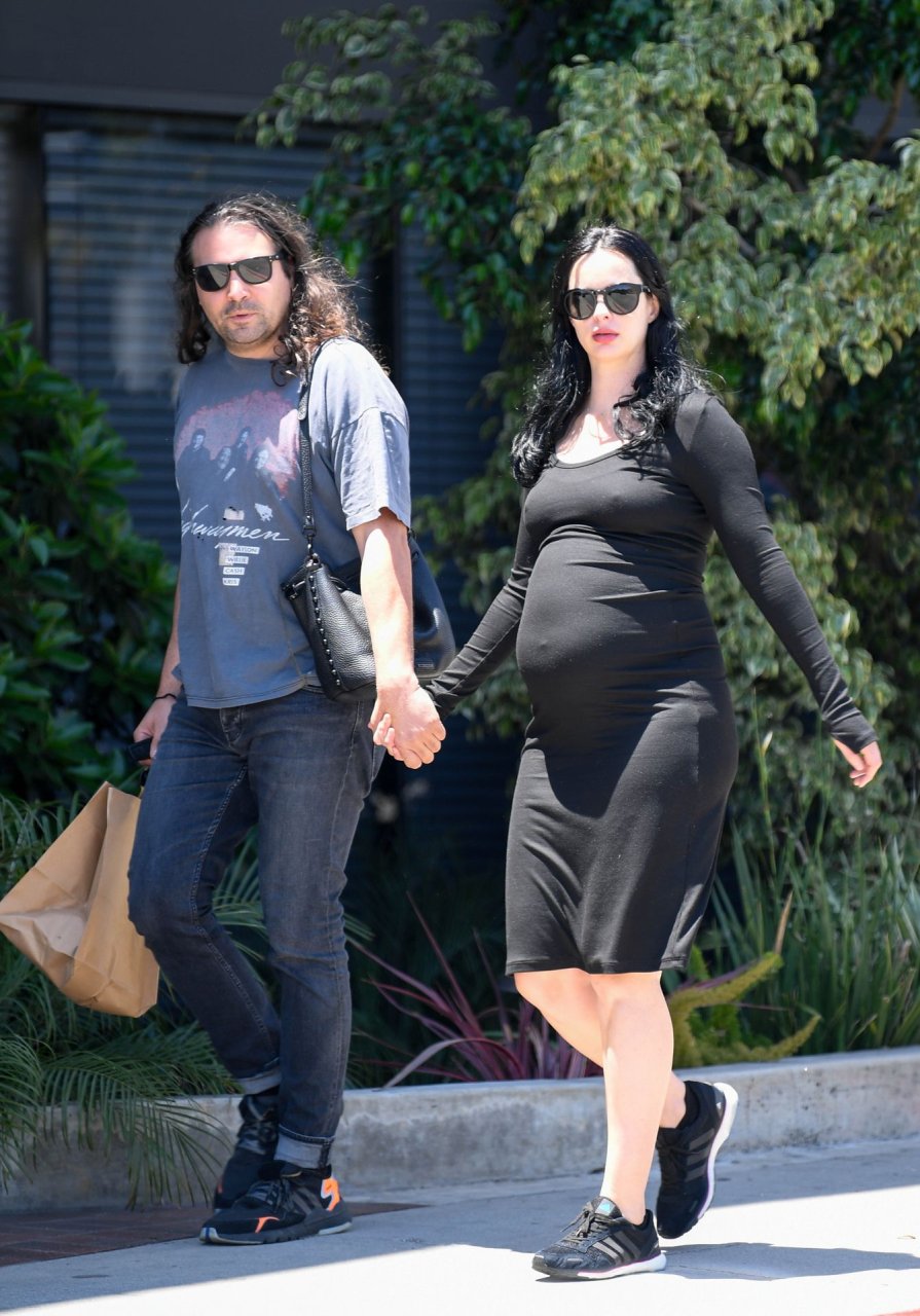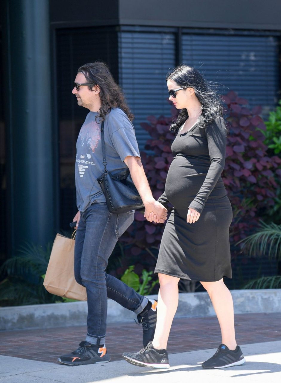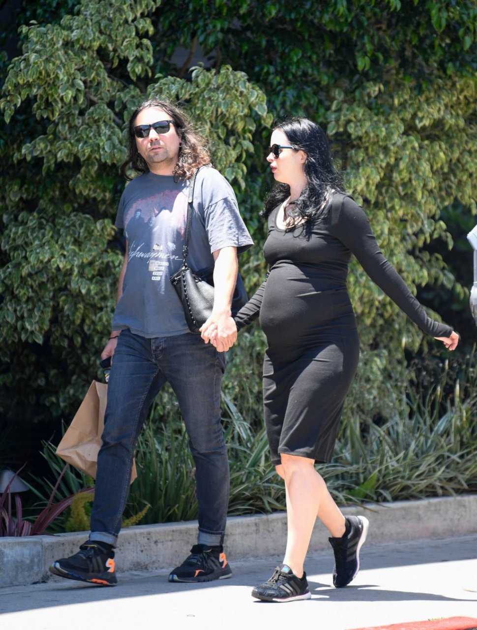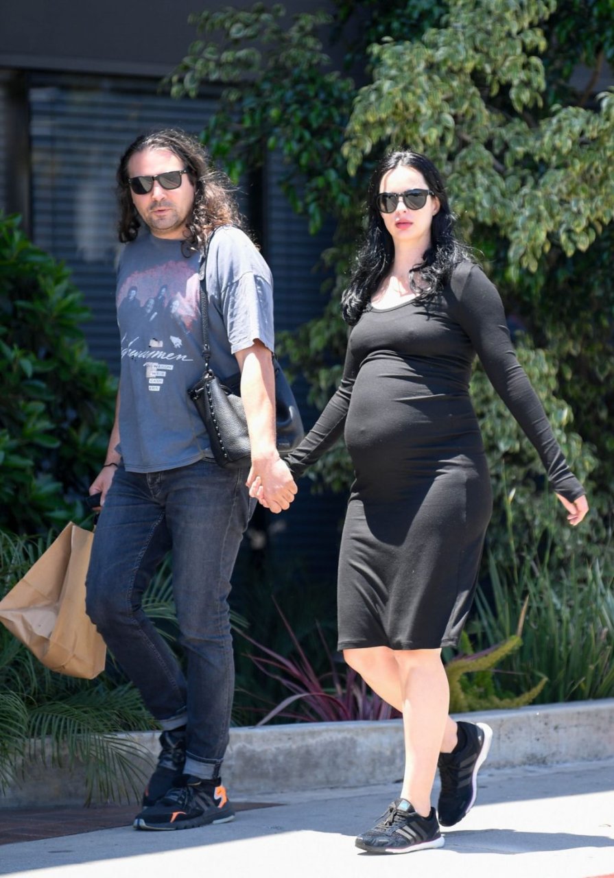 Krysten Ritter muestra su creciente barriga de embarazada con su novio Adam Granduciel mientras la pareja romántica toma algo para comer en Beverly Hills, 17/05/2019. La actriz de 37 años de “Jessica Jones” llevaba un vestido negro ajustado y zapatillas Adidas.