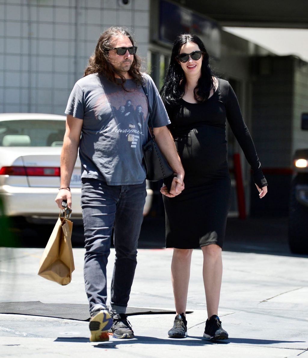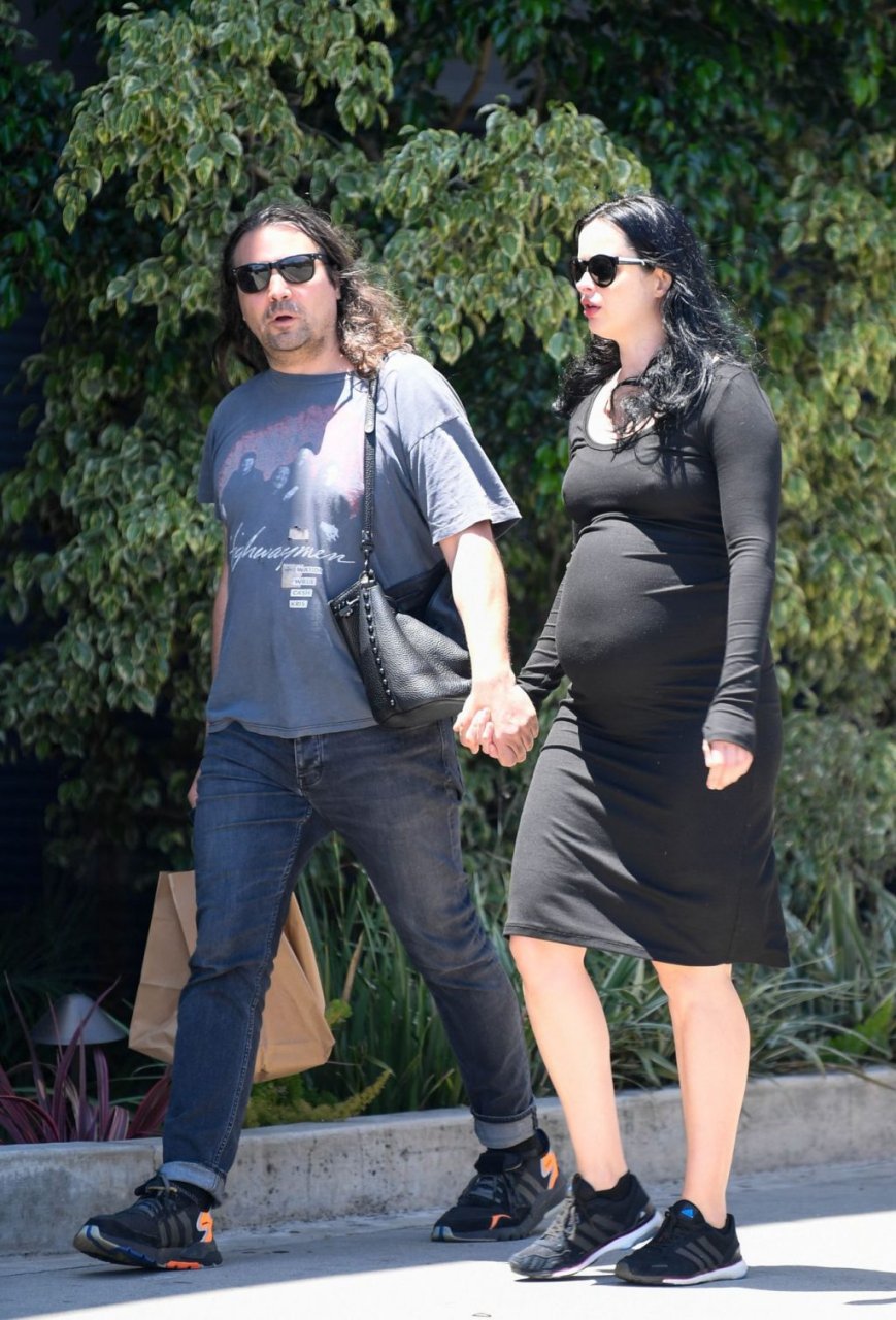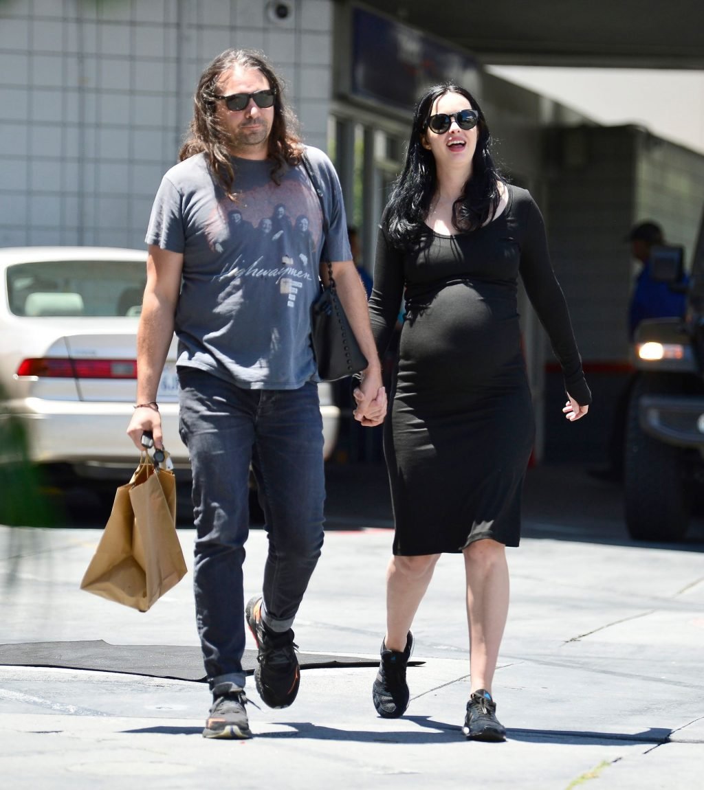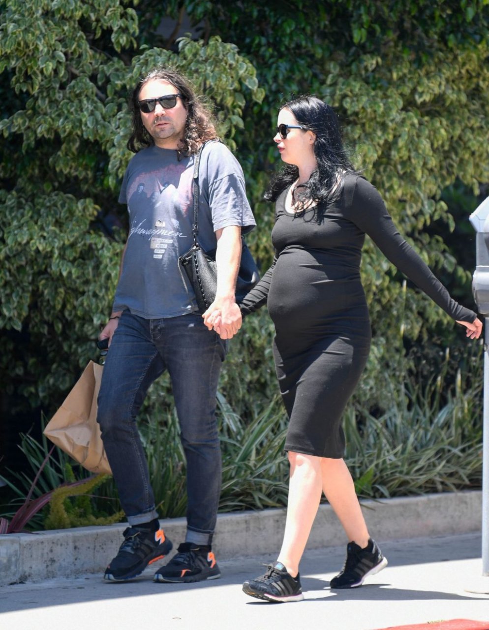 Krysten Ritter muestra su creciente barriga de embarazada con su novio Adam Granduciel mientras la pareja romántica toma algo para comer en Beverly Hills, 17/05/2019. La actriz de 37 años de “Jessica Jones” llevaba un vestido negro ajustado y zapatillas Adidas.