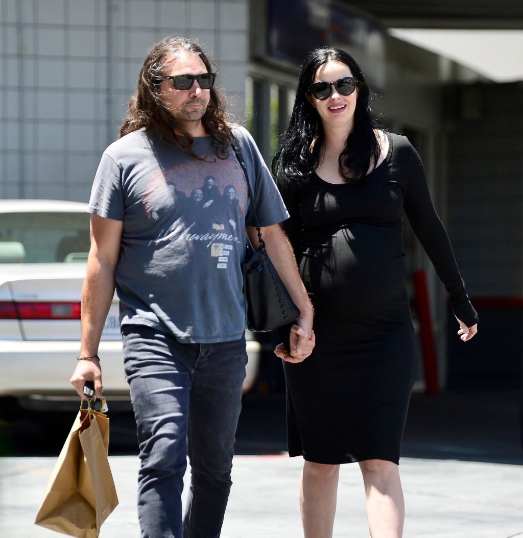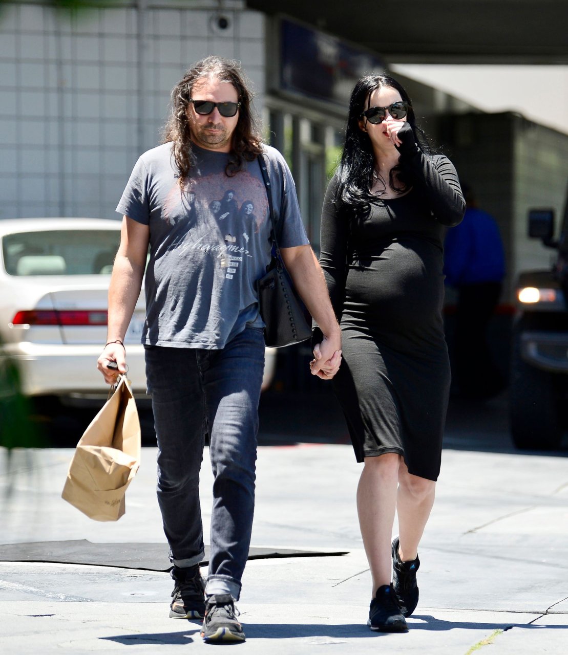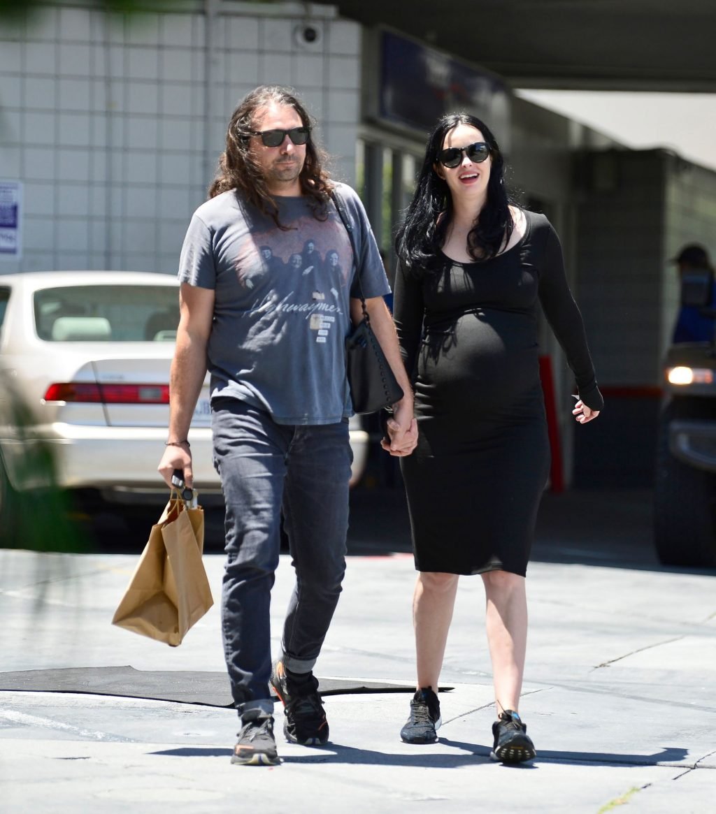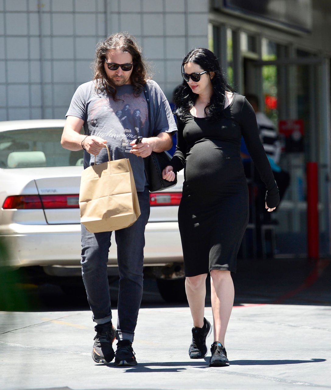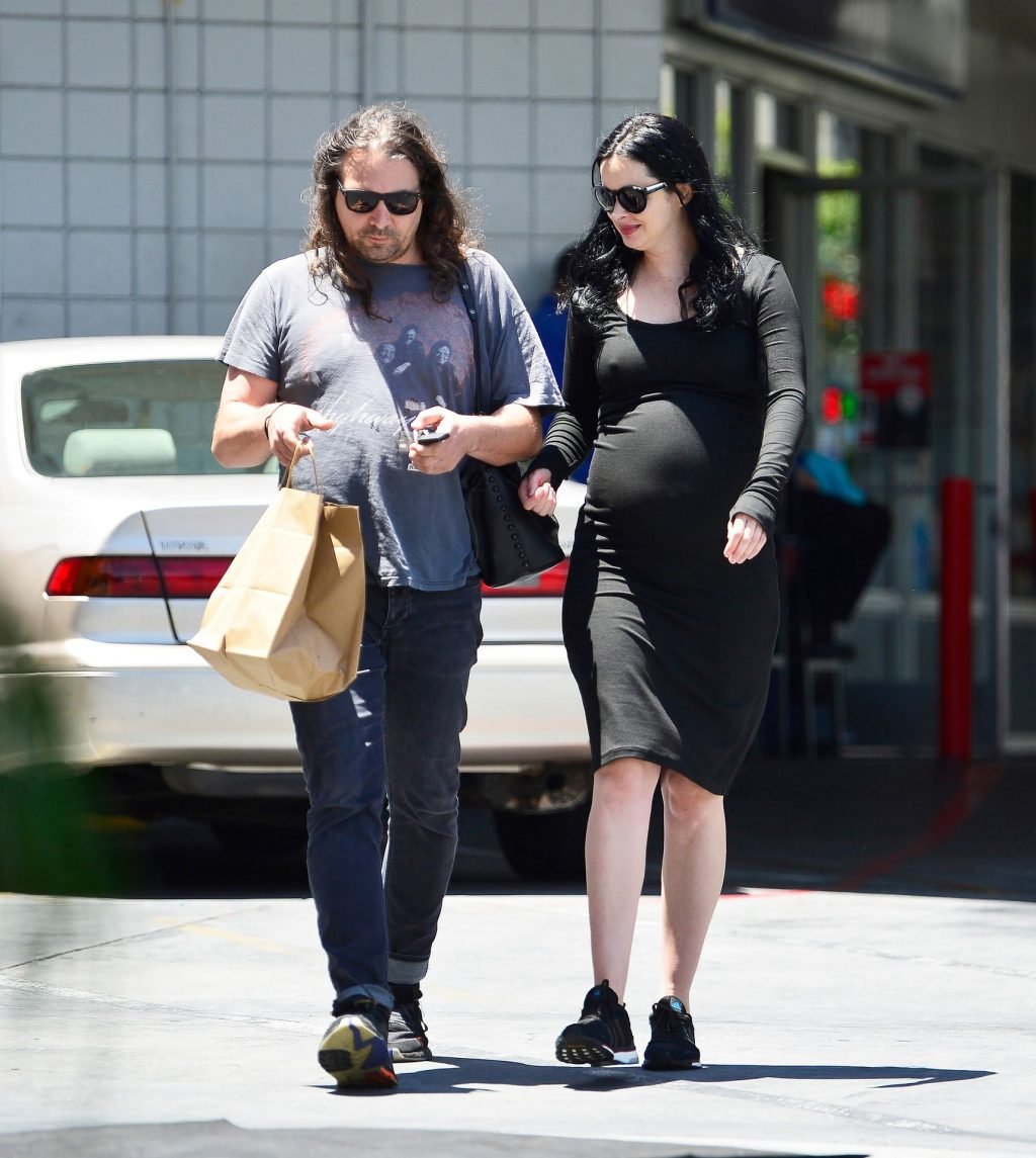 Krysten Ritter muestra su creciente barriga de embarazada con su novio Adam Granduciel mientras la pareja romántica toma algo para comer en Beverly Hills, 17/05/2019. La actriz de 37 años de “Jessica Jones” llevaba un vestido negro ajustado y zapatillas Adidas.