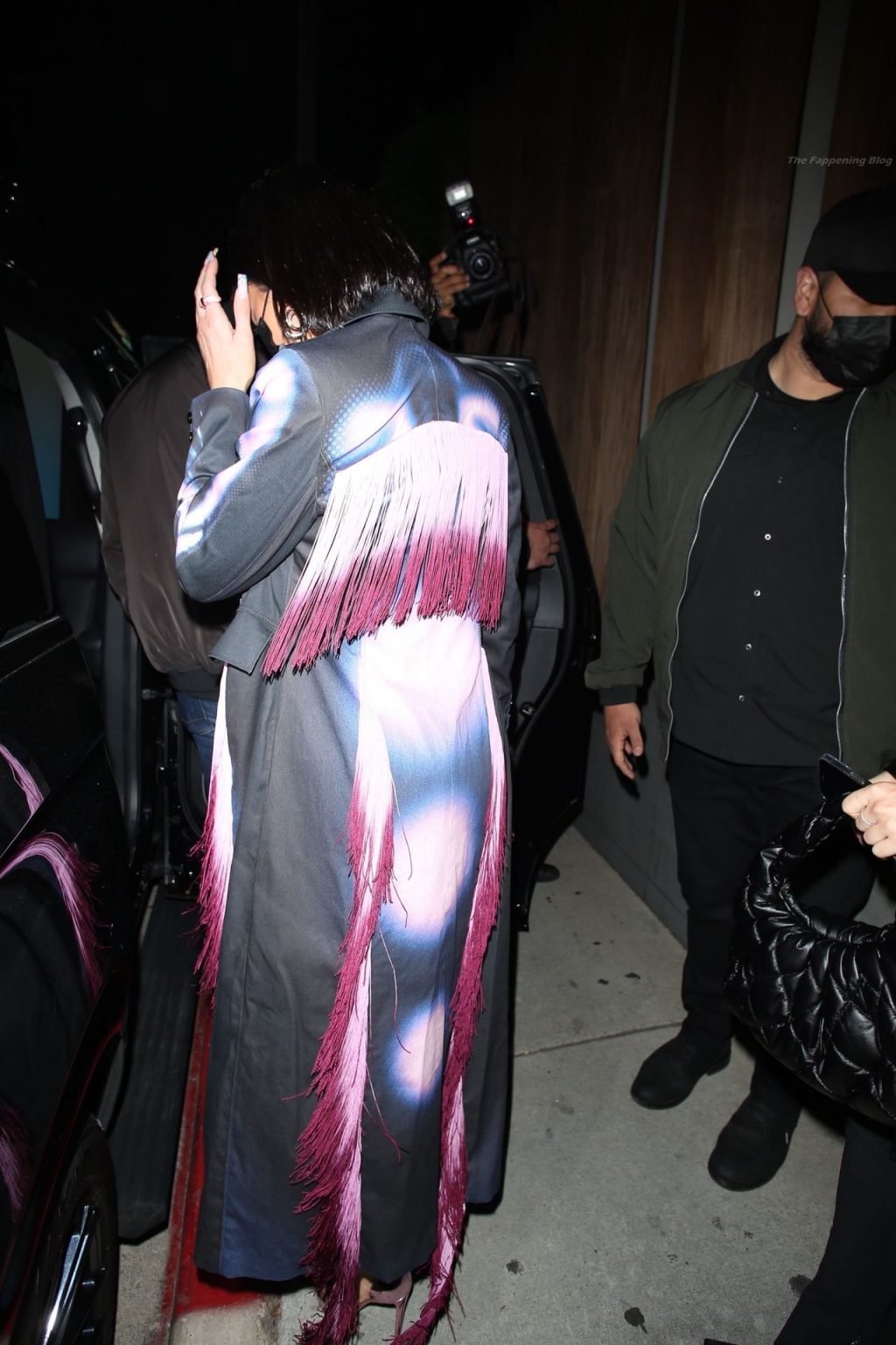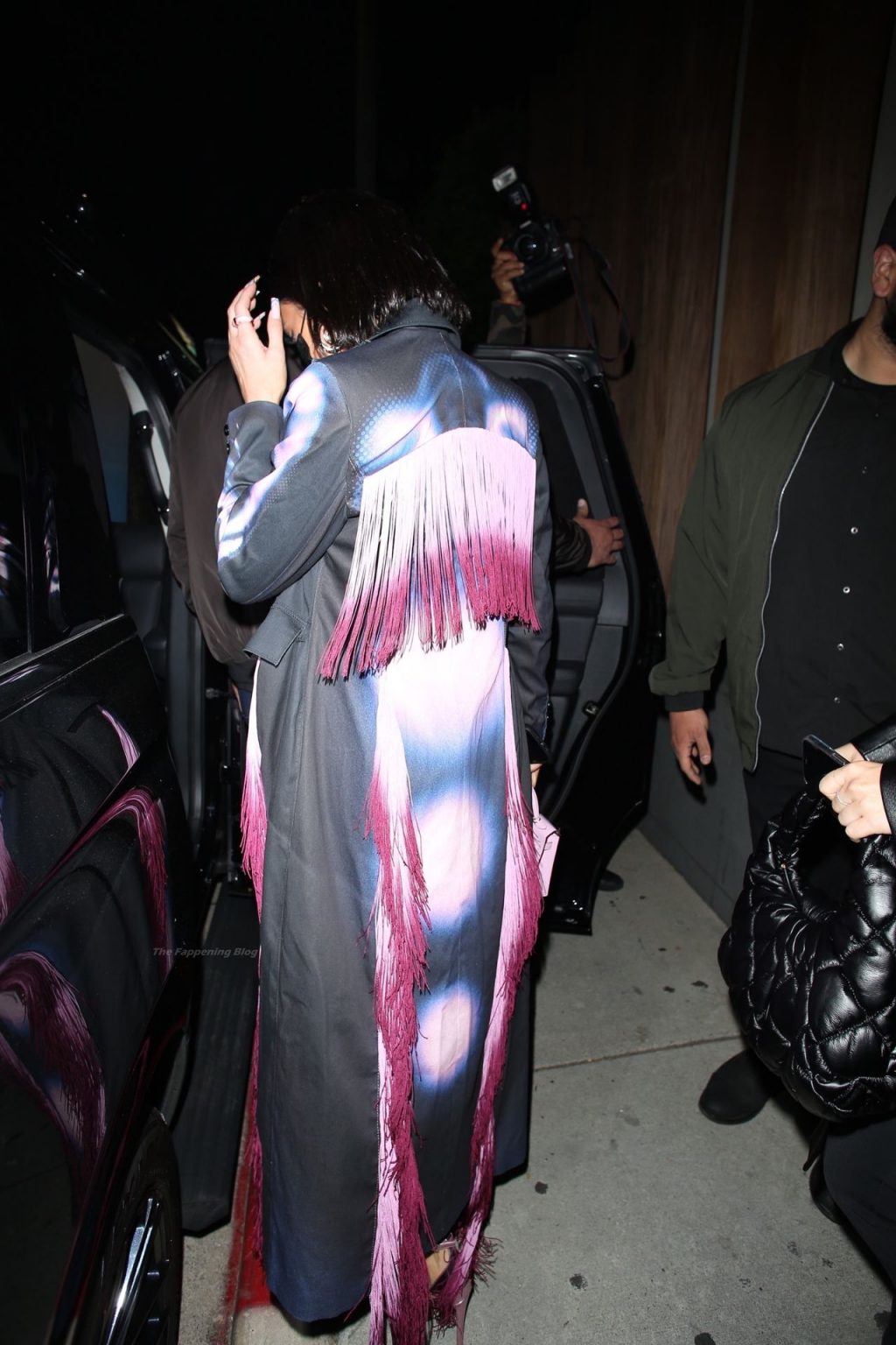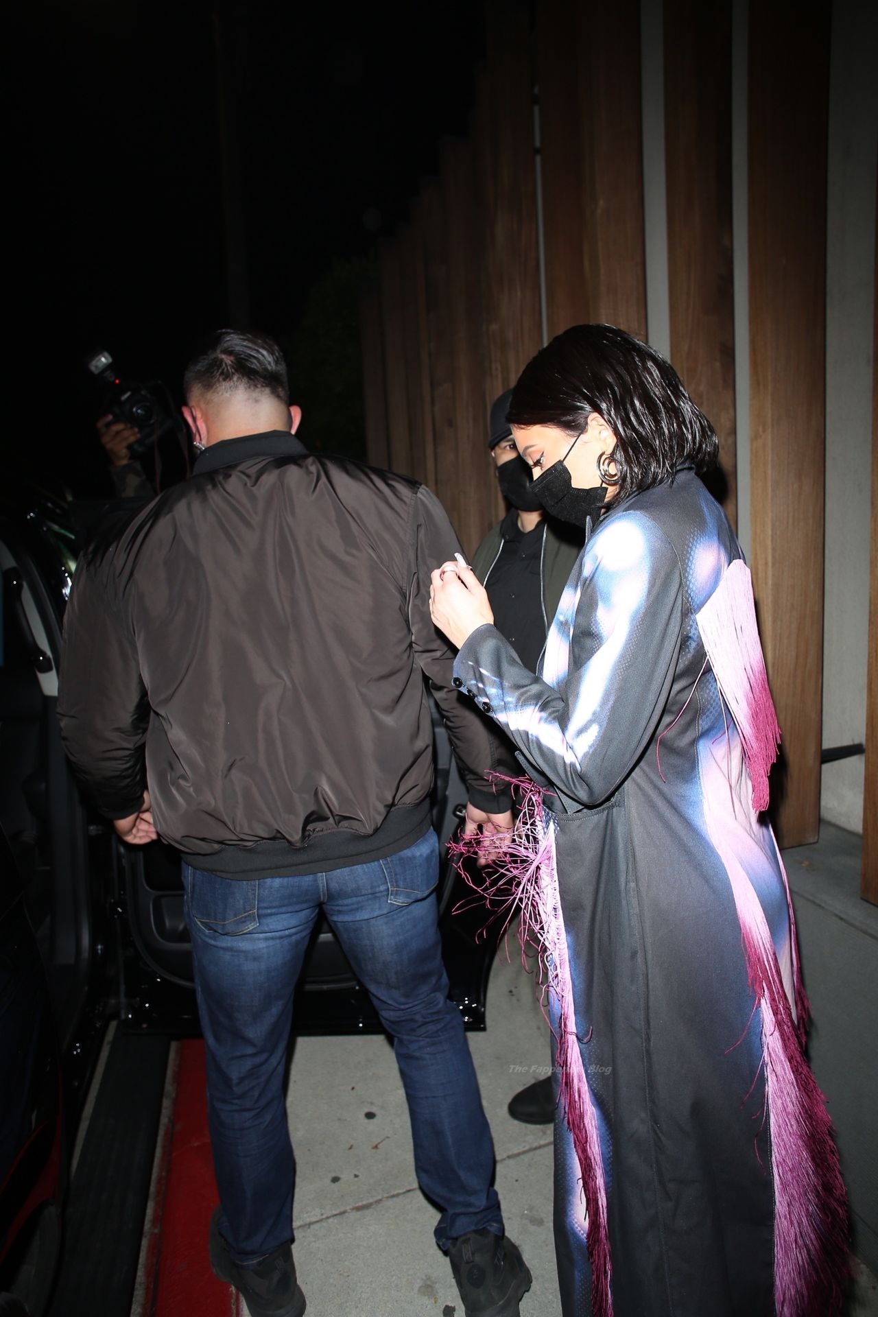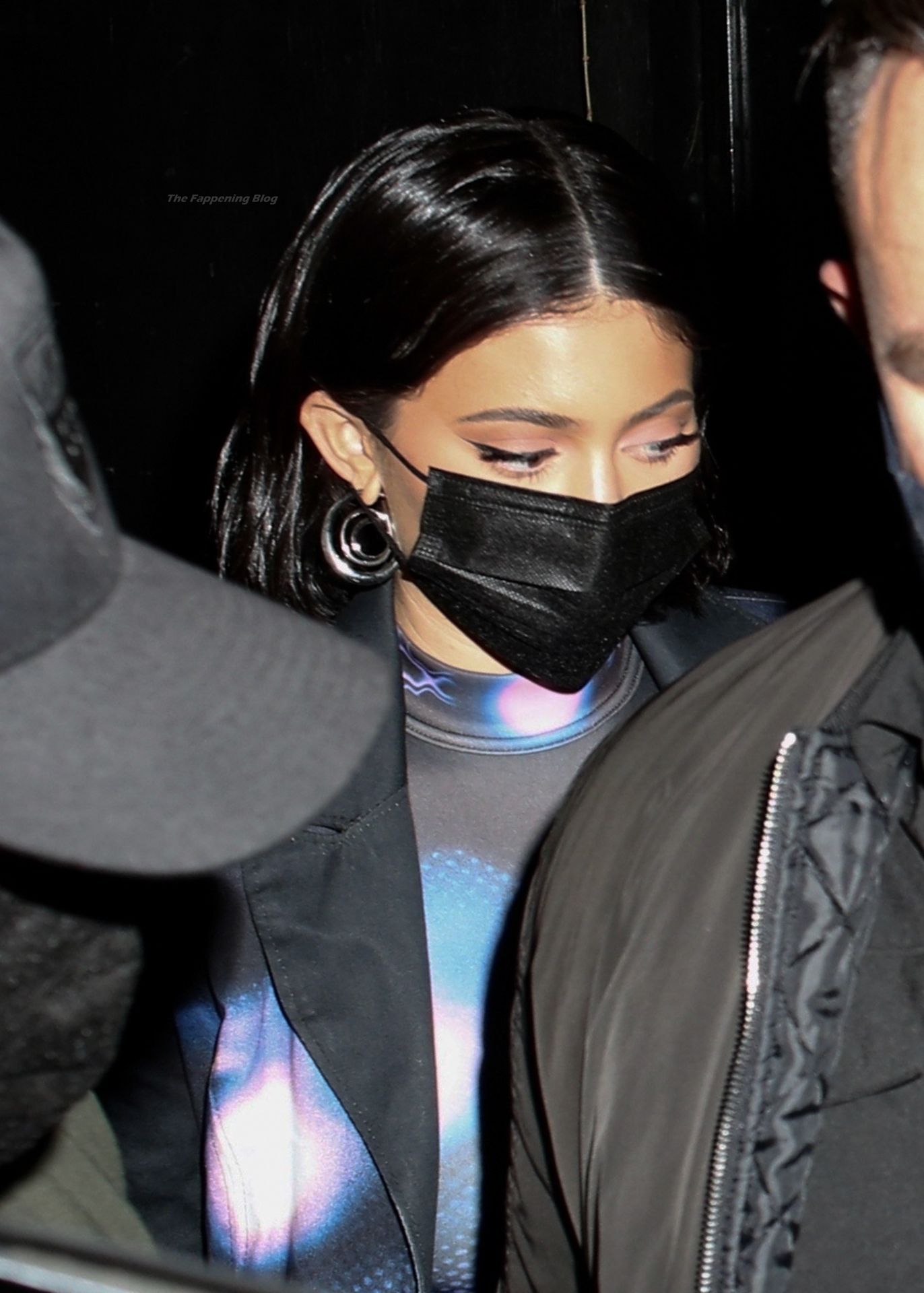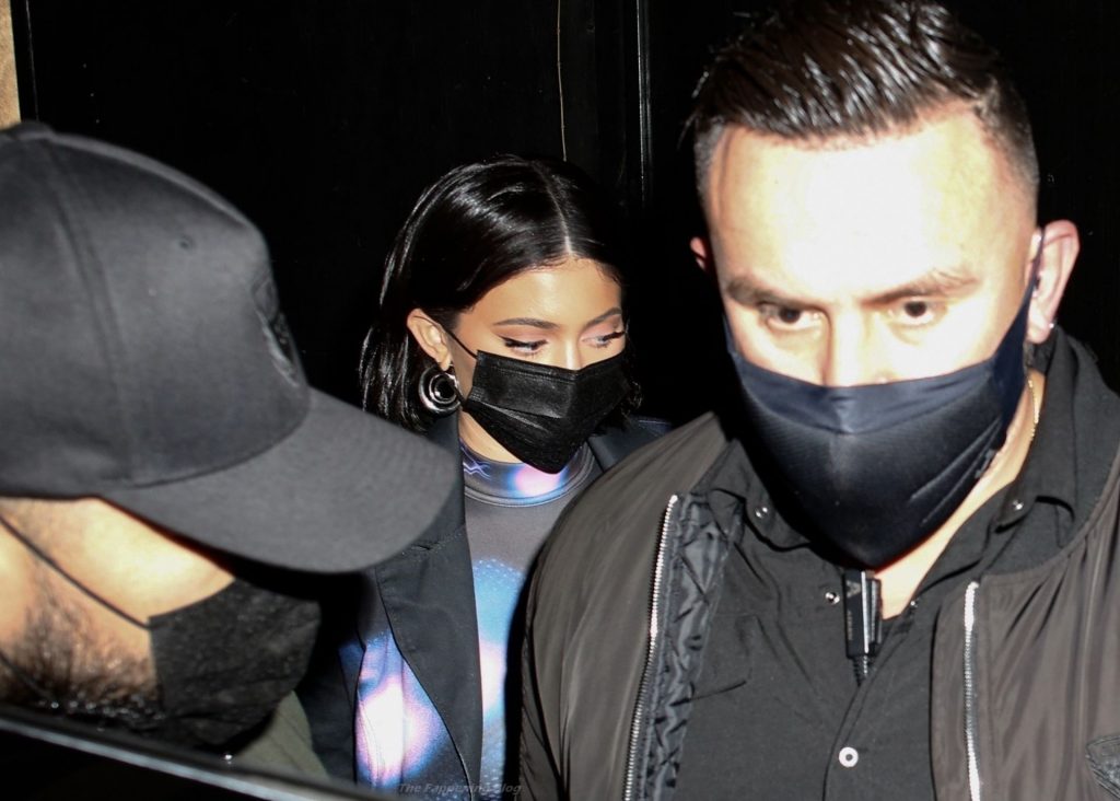 La modelo y estrella de reality TV Kylie Jenner muestra sus curvas con un mono hecho a medida para cenar en Los Ángeles.