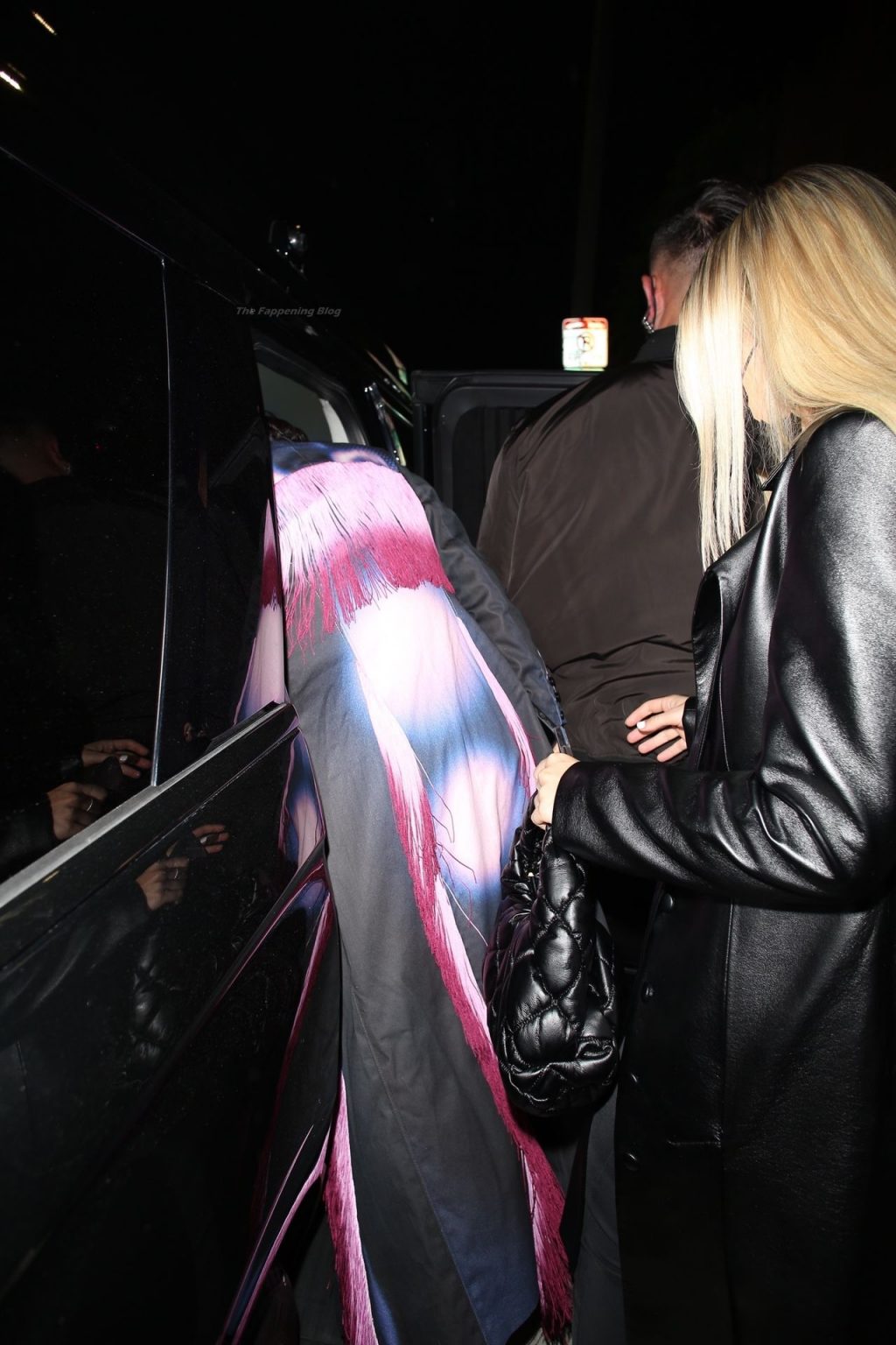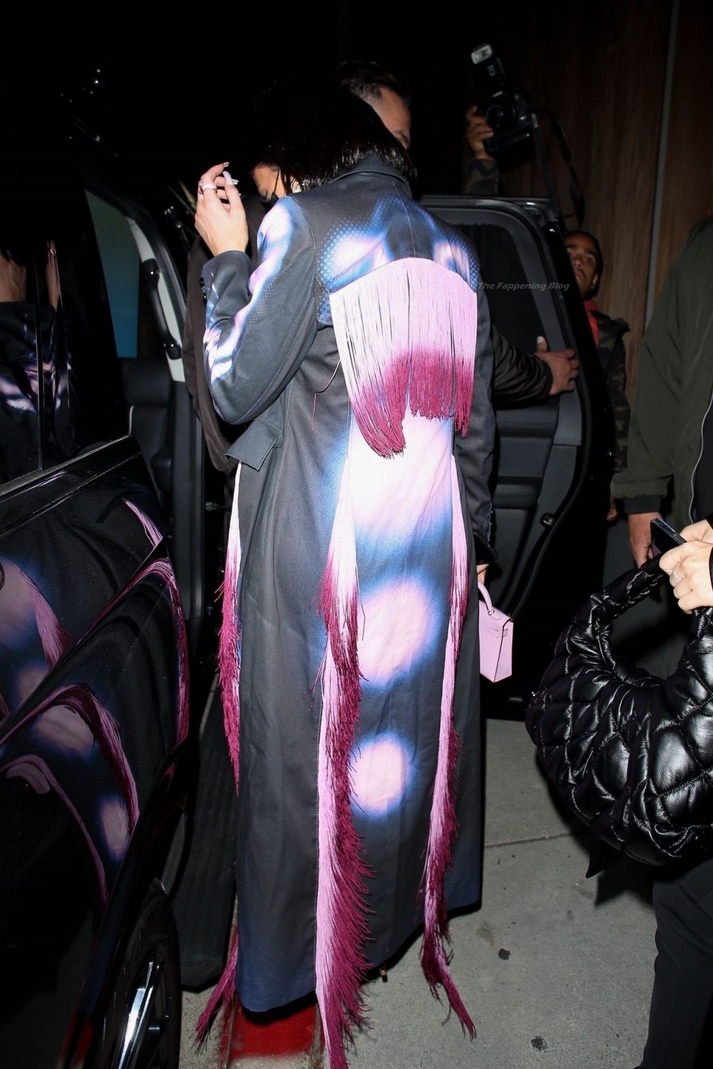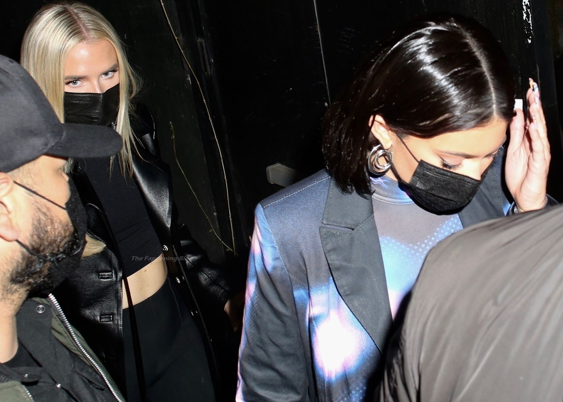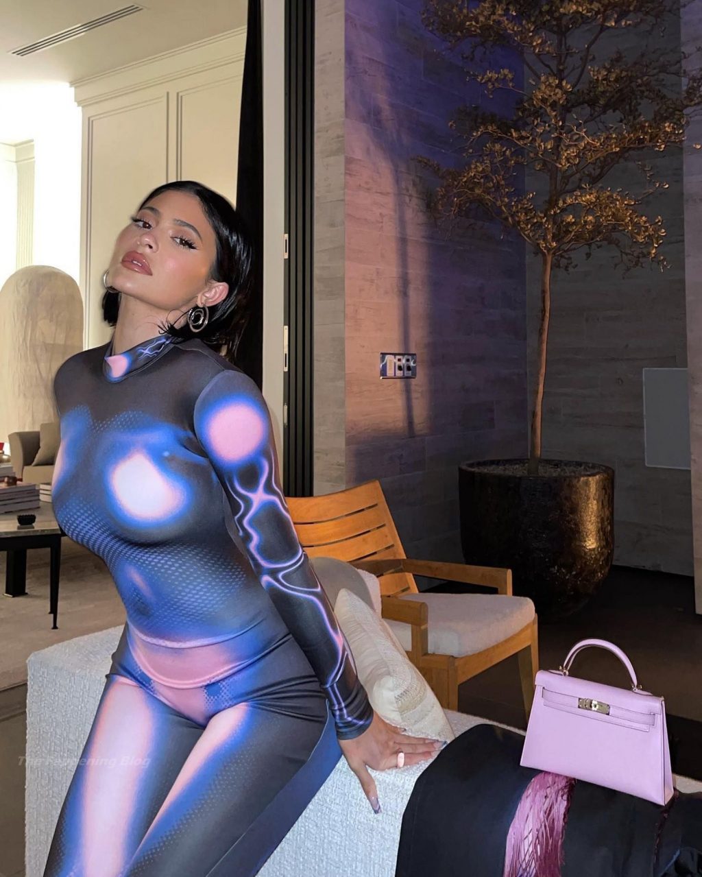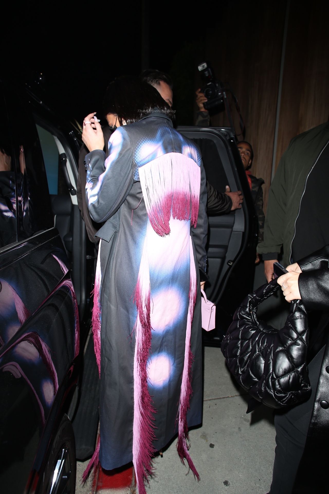 La modelo y estrella de reality TV Kylie Jenner muestra sus curvas con un mono hecho a medida para cenar en Los Ángeles.