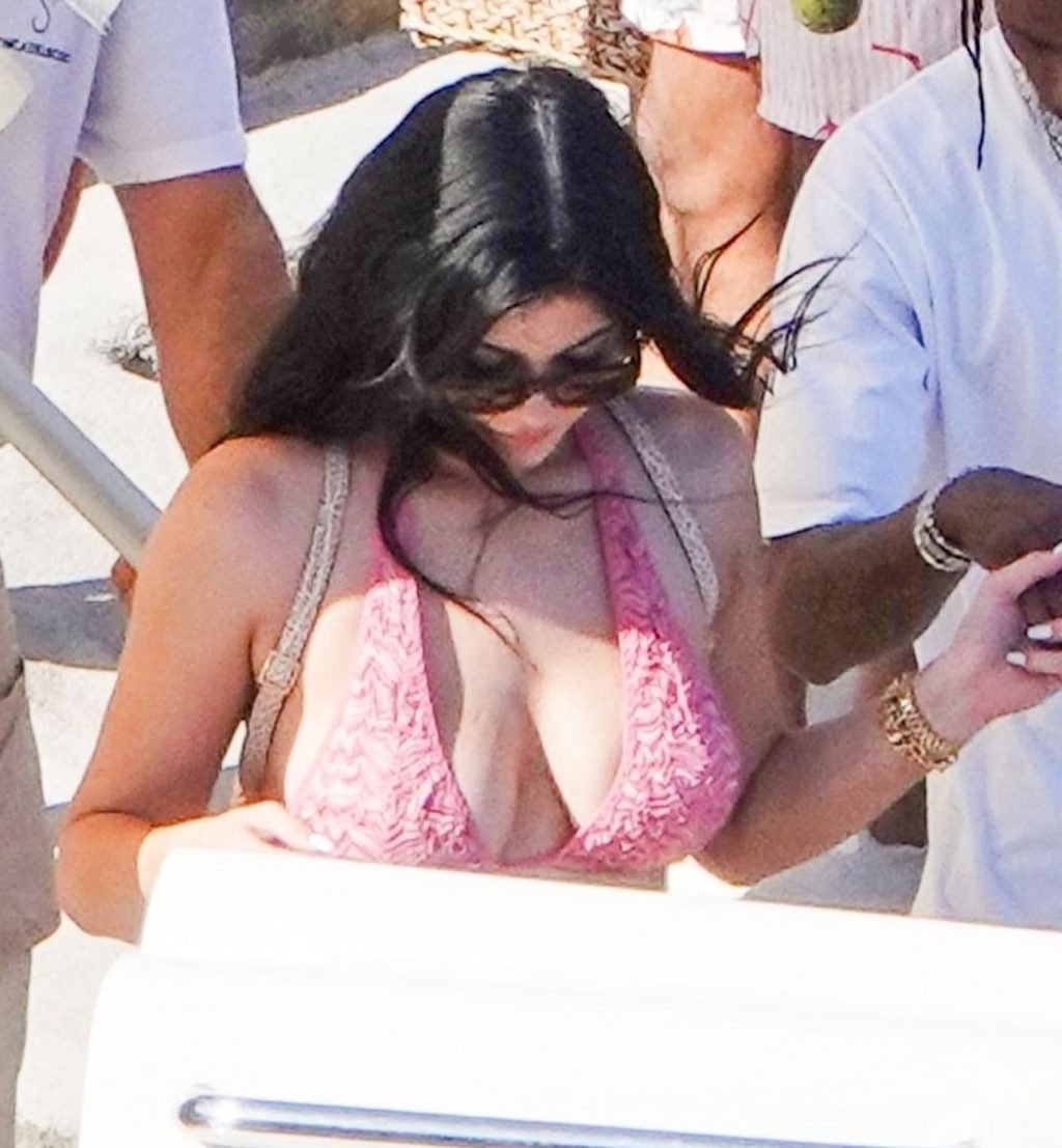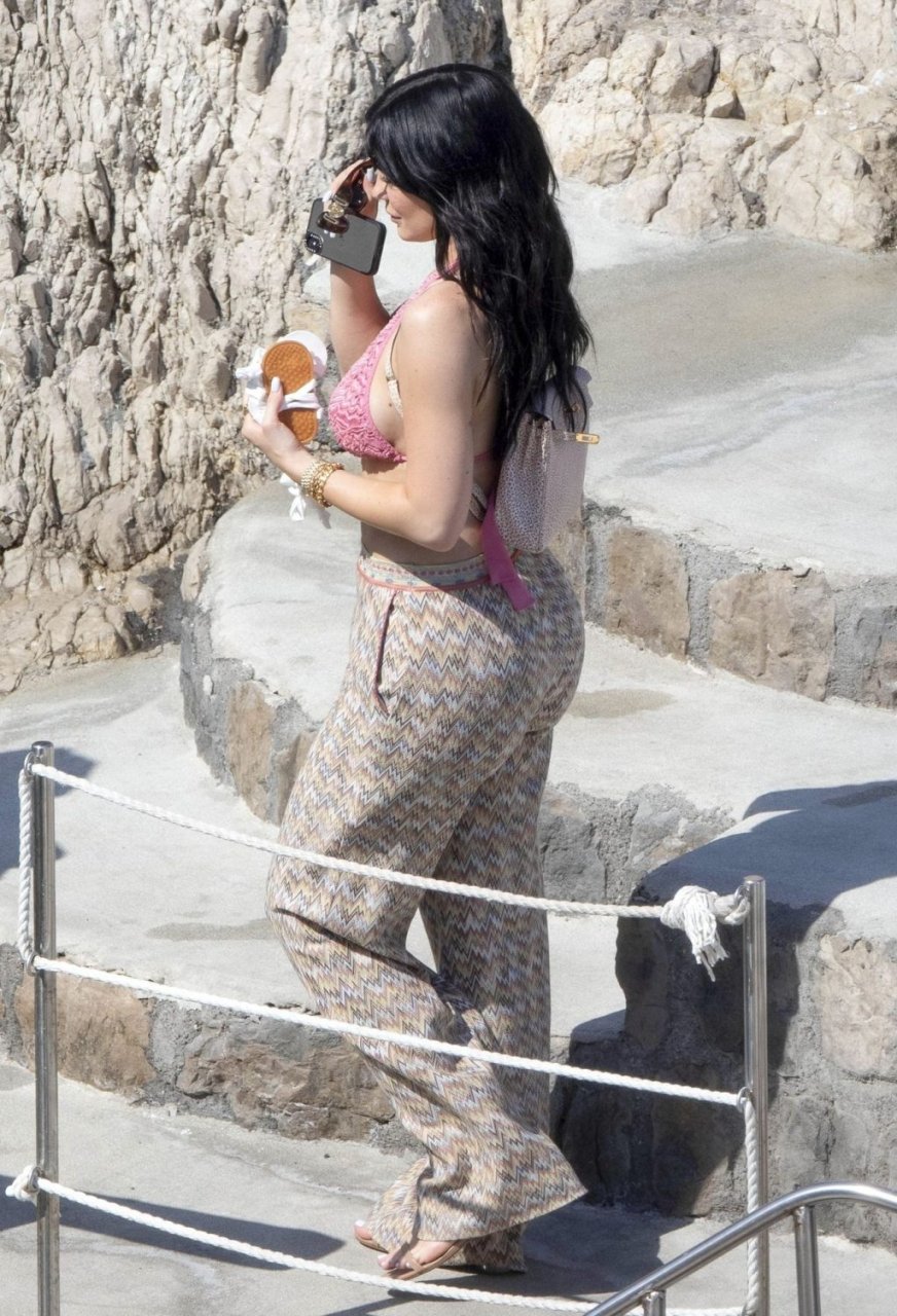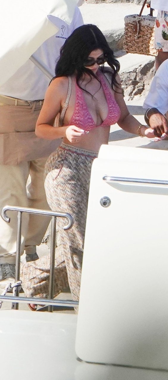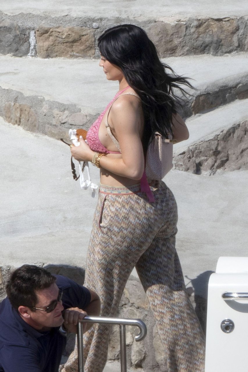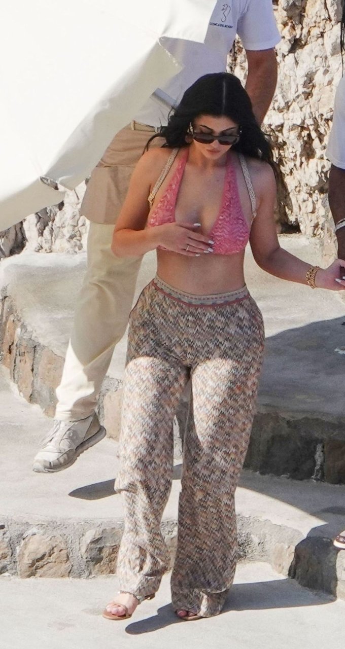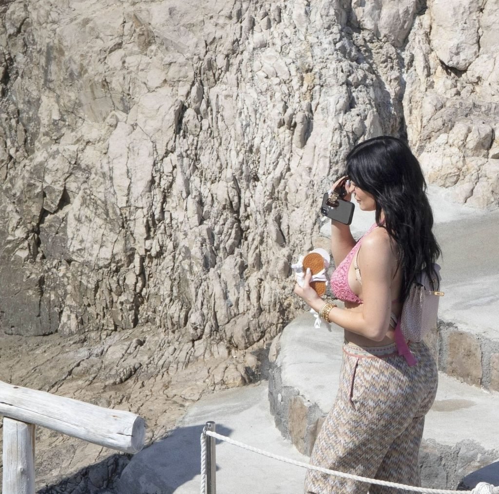 Kylie Jenner y su novio Travis Scott llevan a la bebé Stormi a Nerano, Italia, 08/09/2019. La pareja está acompañada por la amiga modelo de Kylie y novia de Scott Disick, Sofia Richie. ¡El trío navega por la región montañosa y se dirige a un restaurante local para almorzar.
