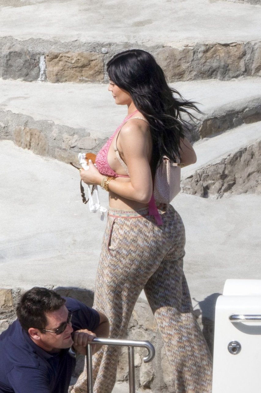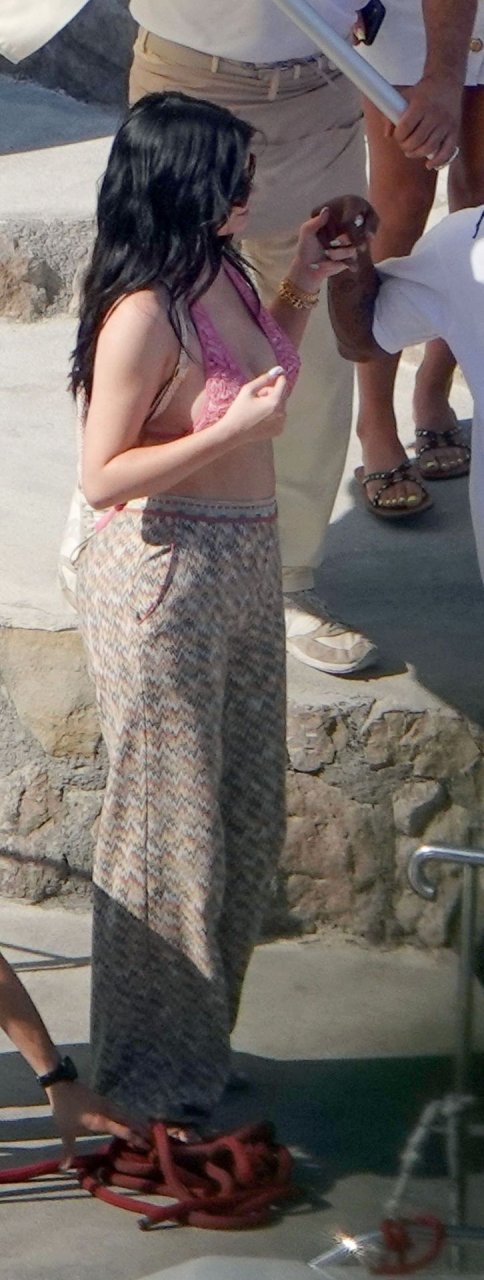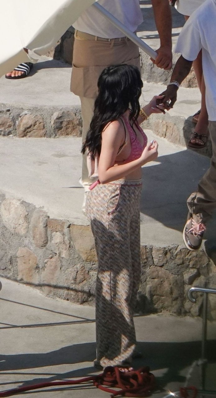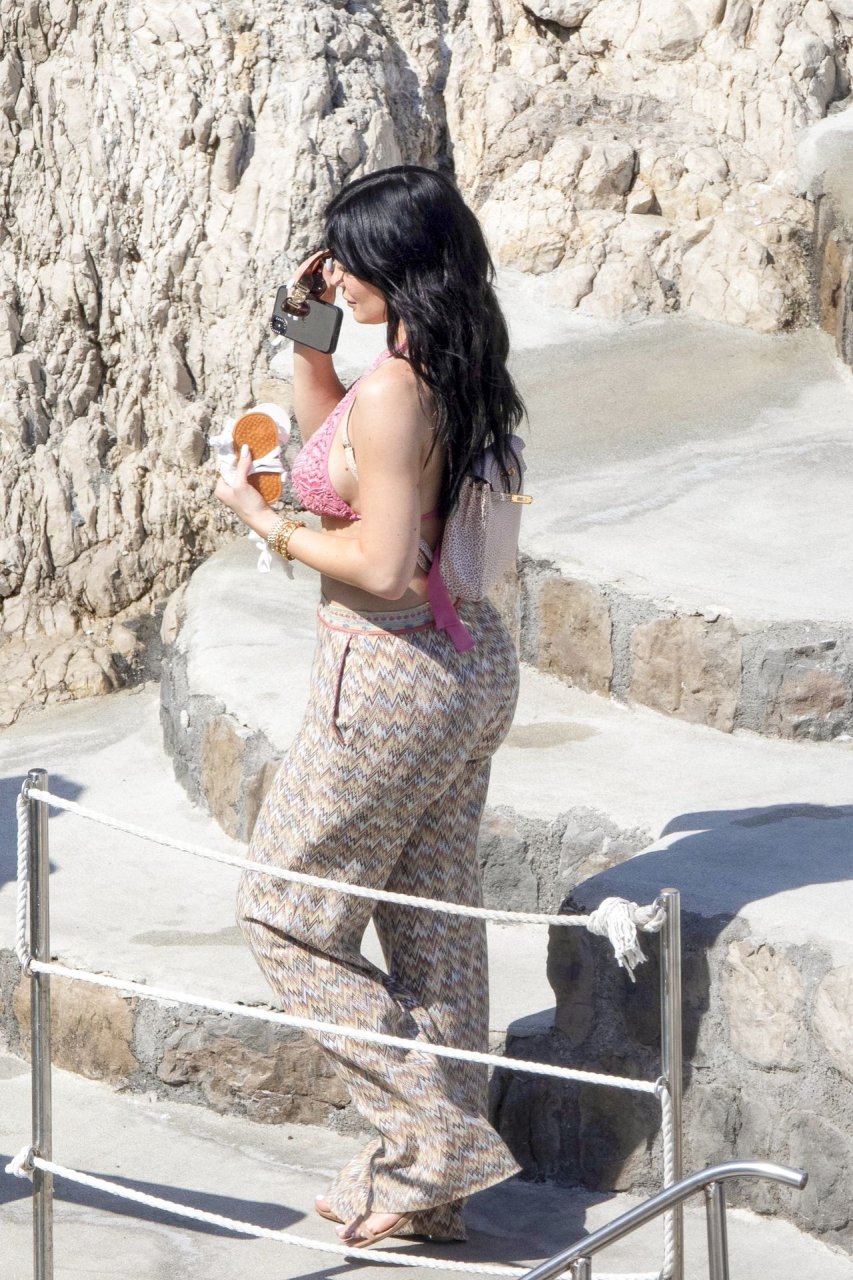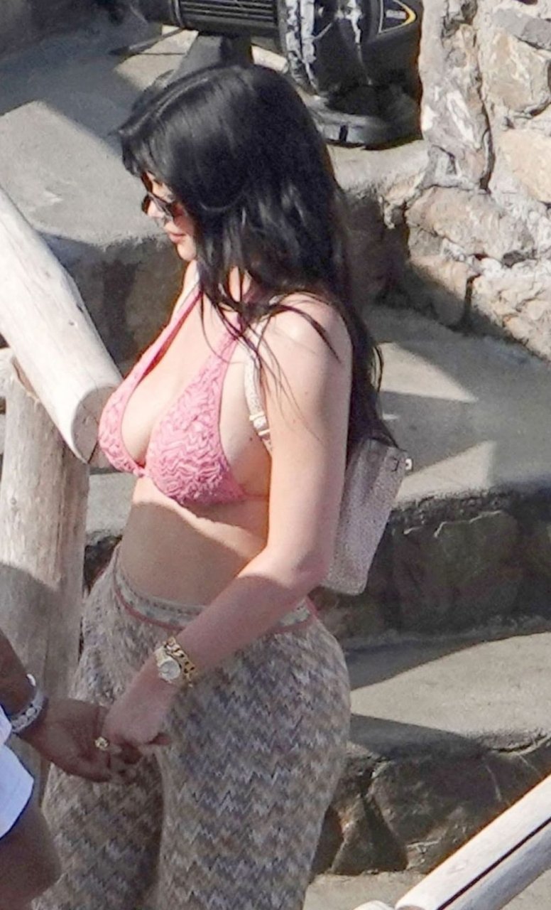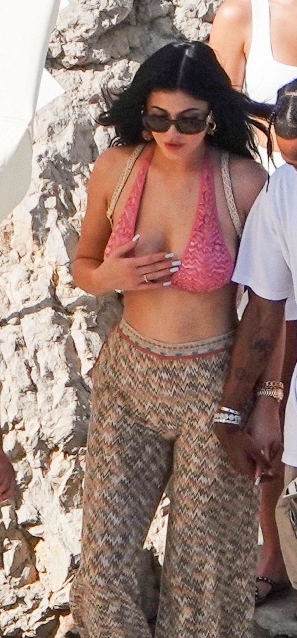 Kylie Jenner y su novio Travis Scott llevan a la bebé Stormi a Nerano, Italia, 08/09/2019. La pareja está acompañada por la amiga modelo de Kylie y novia de Scott Disick, Sofia Richie. ¡El trío navega por la región montañosa y se dirige a un restaurante local para almorzar.