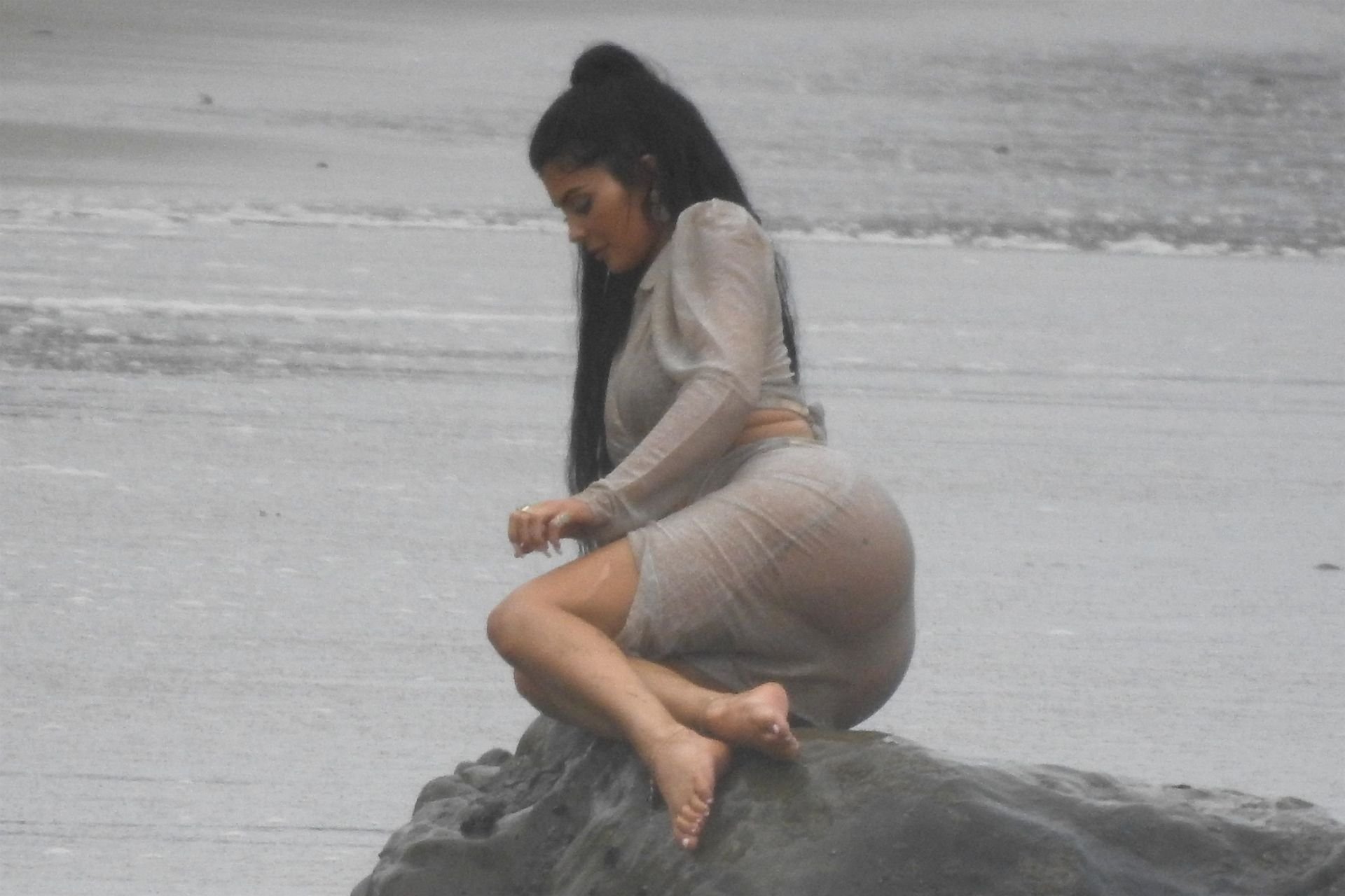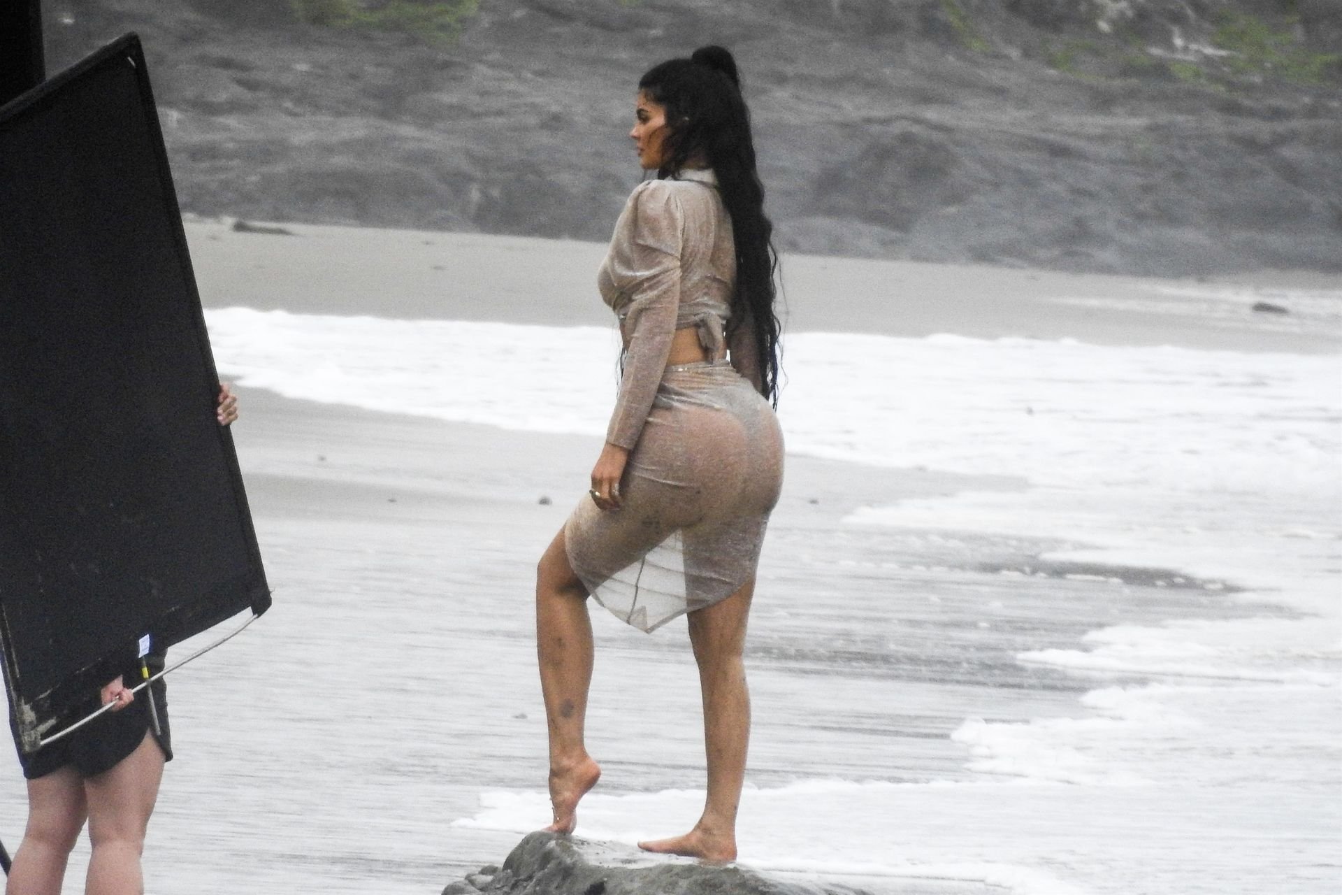 Kylie Jenner deslumbró con transparencias y lentejuelas durante una sesión de fotos muy sexy en Malibu, 04/06/2019. La estrella de reality mostró sus impresionantes curvas mientras posaba sobre las rocas con un tanga y una falda envolvente transparente junto con un top vaporoso que dejaba al descubierto sus abdominales tonificados.